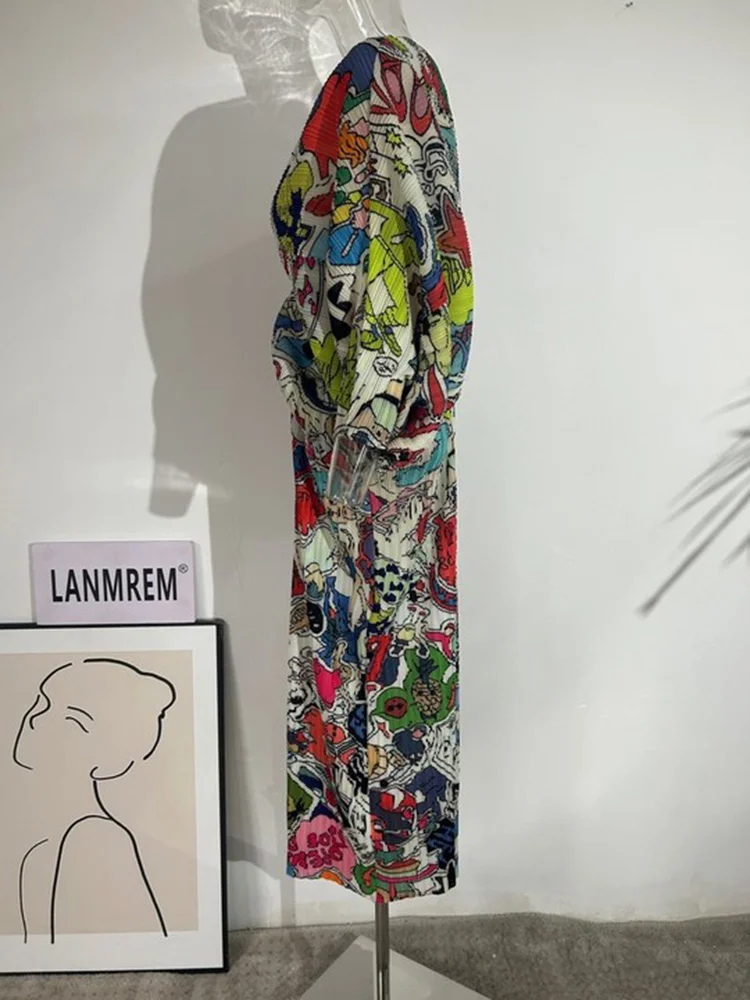 LANMREM Graffiti Batwing Dress - Women's Loose Festival Fashion (2R7891)