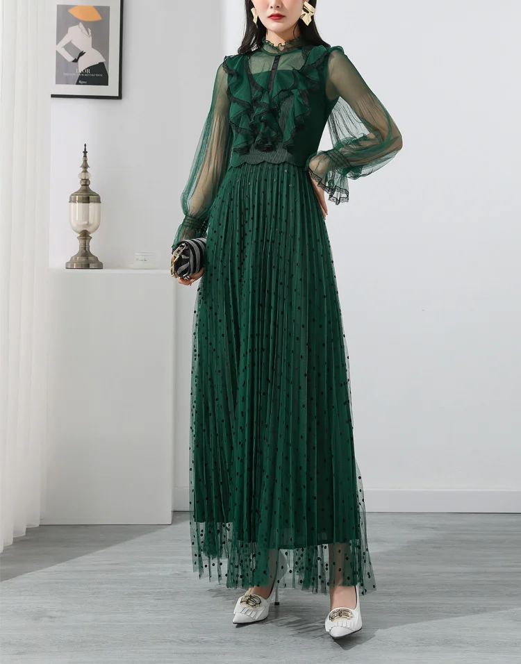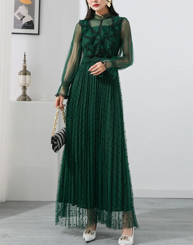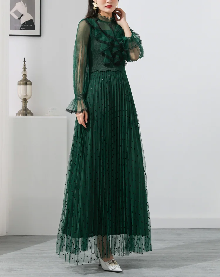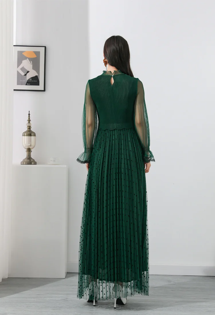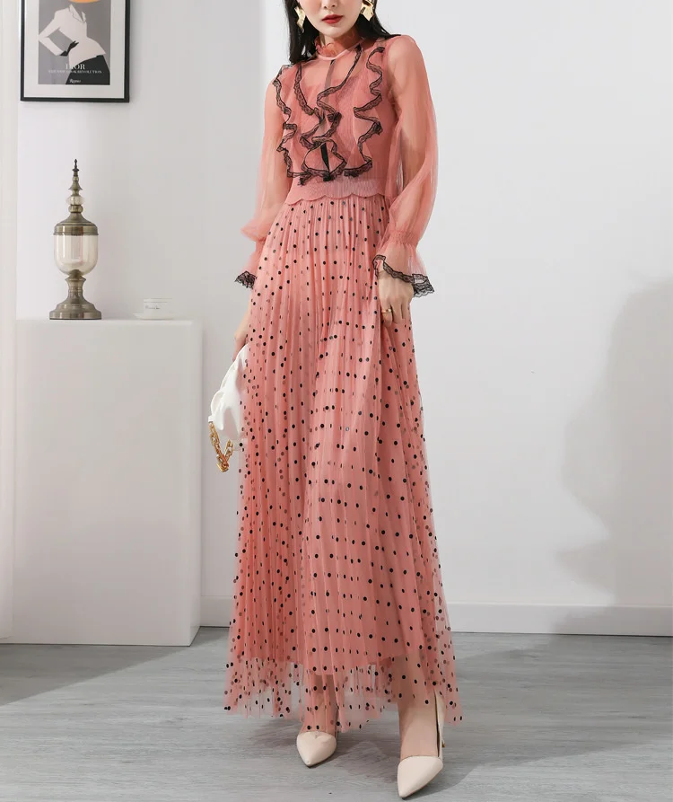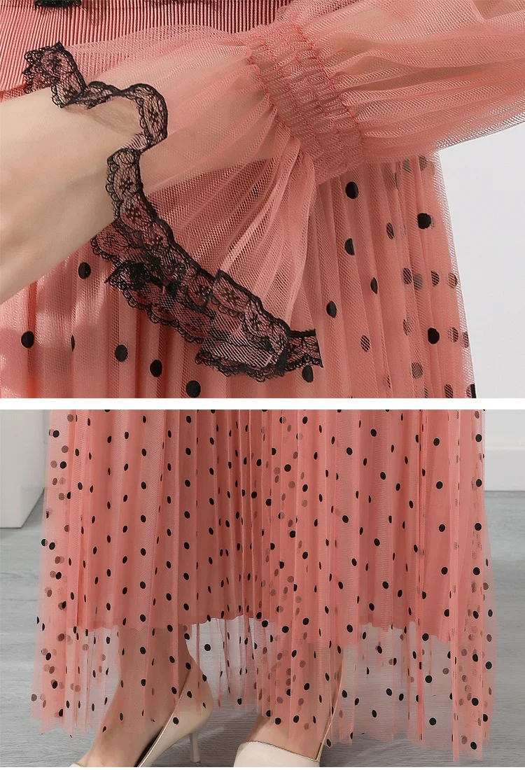 Introducing our LANMREM Long Lace Mesh Stitching Dress, the perfect addition to your wardrobe for any elegant party or festival. This dress features a beautiful lace and mesh stitching design, with a flattering fit that accentuates your curves. The flare sleeves add a touch of femininity, while the polka dot print adds a playful touch. With a length of 145 cm and a bust range of 66-130 cm, this one size dress is suitable for a variety of body types. Plus, with a shoulder range of 37-43 cm and a sleeve length of 62 cm, it offers a comfortable and perfect fit. Made with premium materials, this dress is sure to be a best seller. Don't miss out on this exclusive piece, as our stock is limited. Order now and solve your wardrobe woes with our LANMREM Long Lace Mesh Stitching Dress.