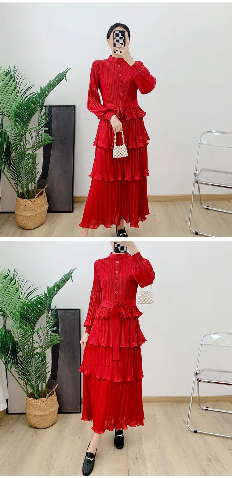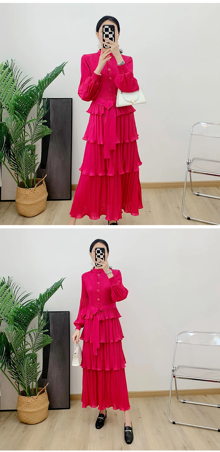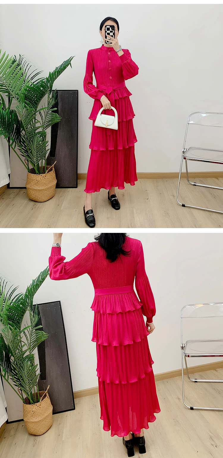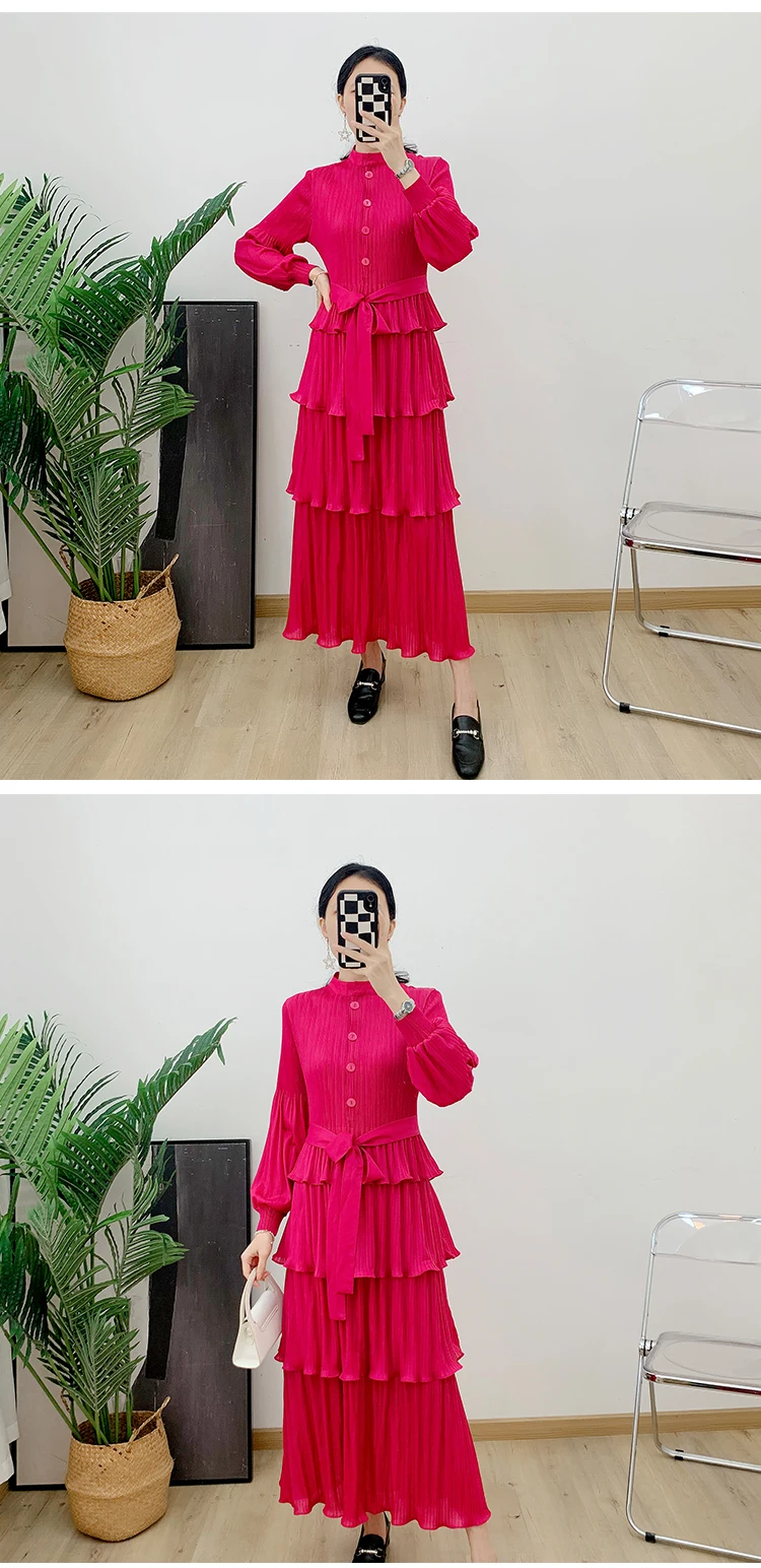 Introducing our LANMREM Ruffle Pleated Long Dress, the perfect addition to your wardrobe for the upcoming 2024 Spring season. This dress boasts lantern sleeves, button details, and a flattering ruffle pleated design that will turn heads at any festival or event. Made with high-quality materials and expert craftsmanship, this dress offers a comfortable and stylish fit for all body types. Our one-size option (unit:cm) has a length of 132, bust measurement of 90-115, sleeve length of 54, and shoulder width of 38. Plus, with a variety of colors to choose from, you can easily find the perfect match for your personal style. Don't miss out on this limited time offer and elevate your fashion game with our LANMREM Ruffle Pleated Long Dress.