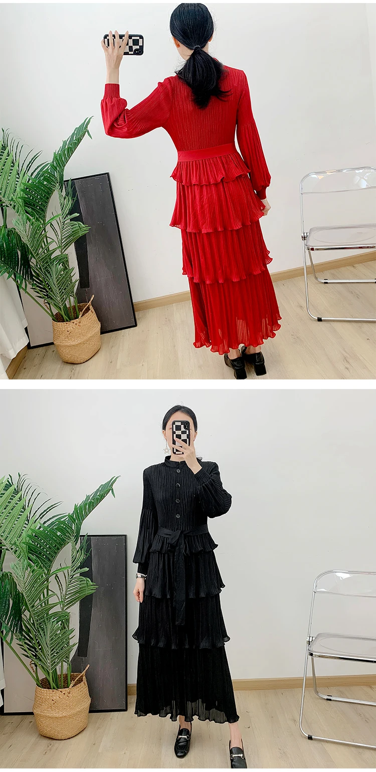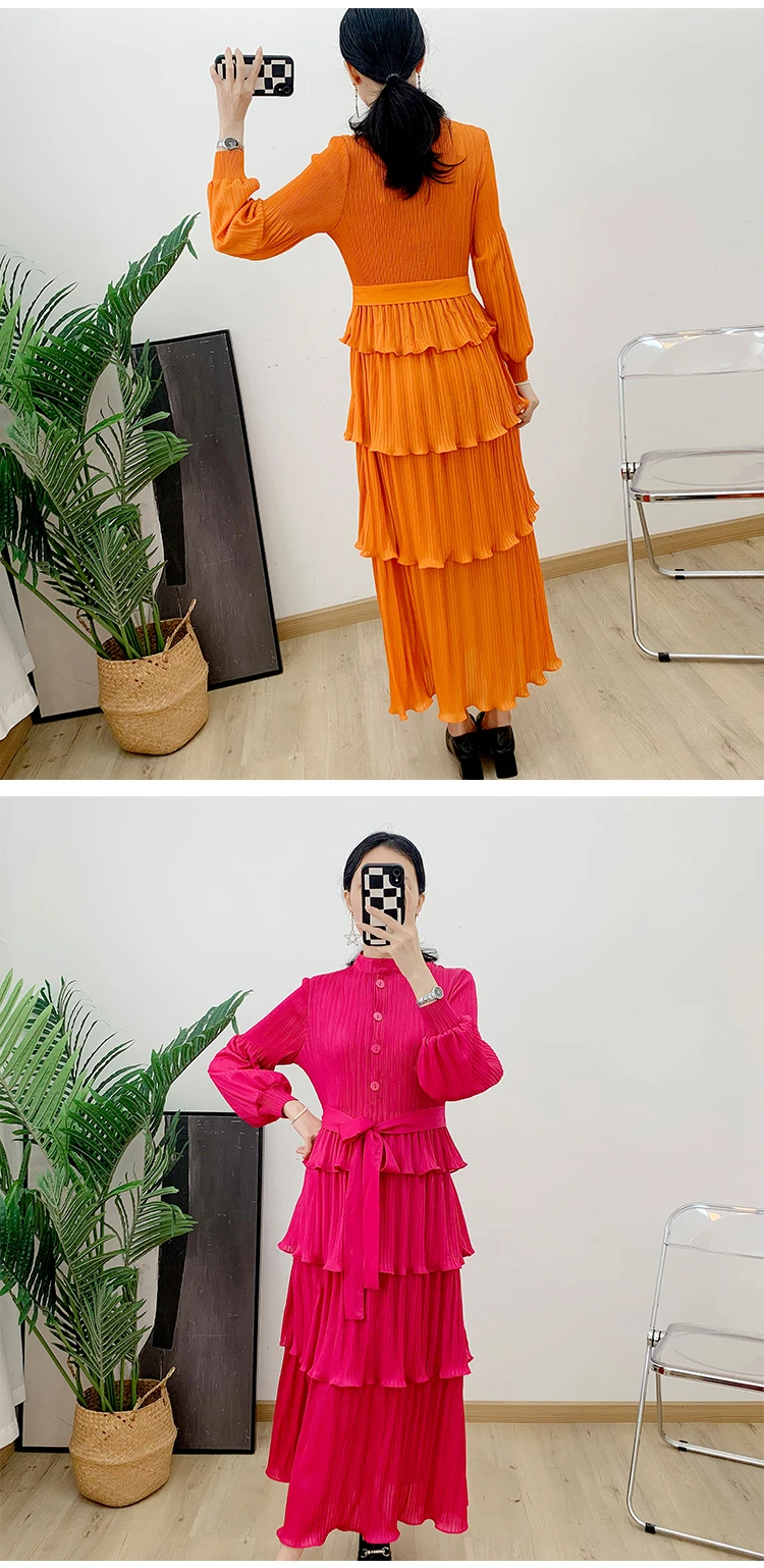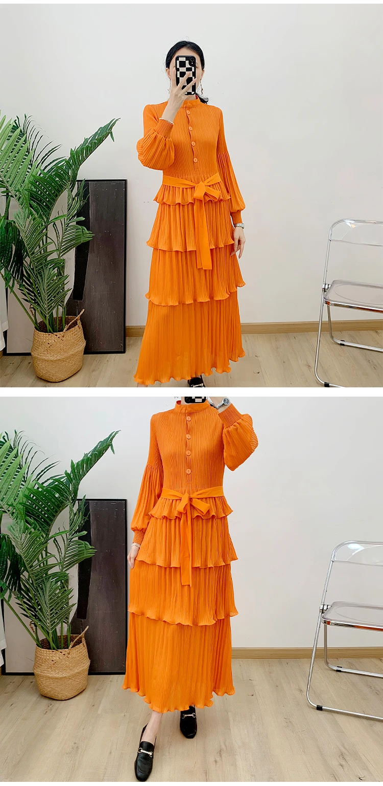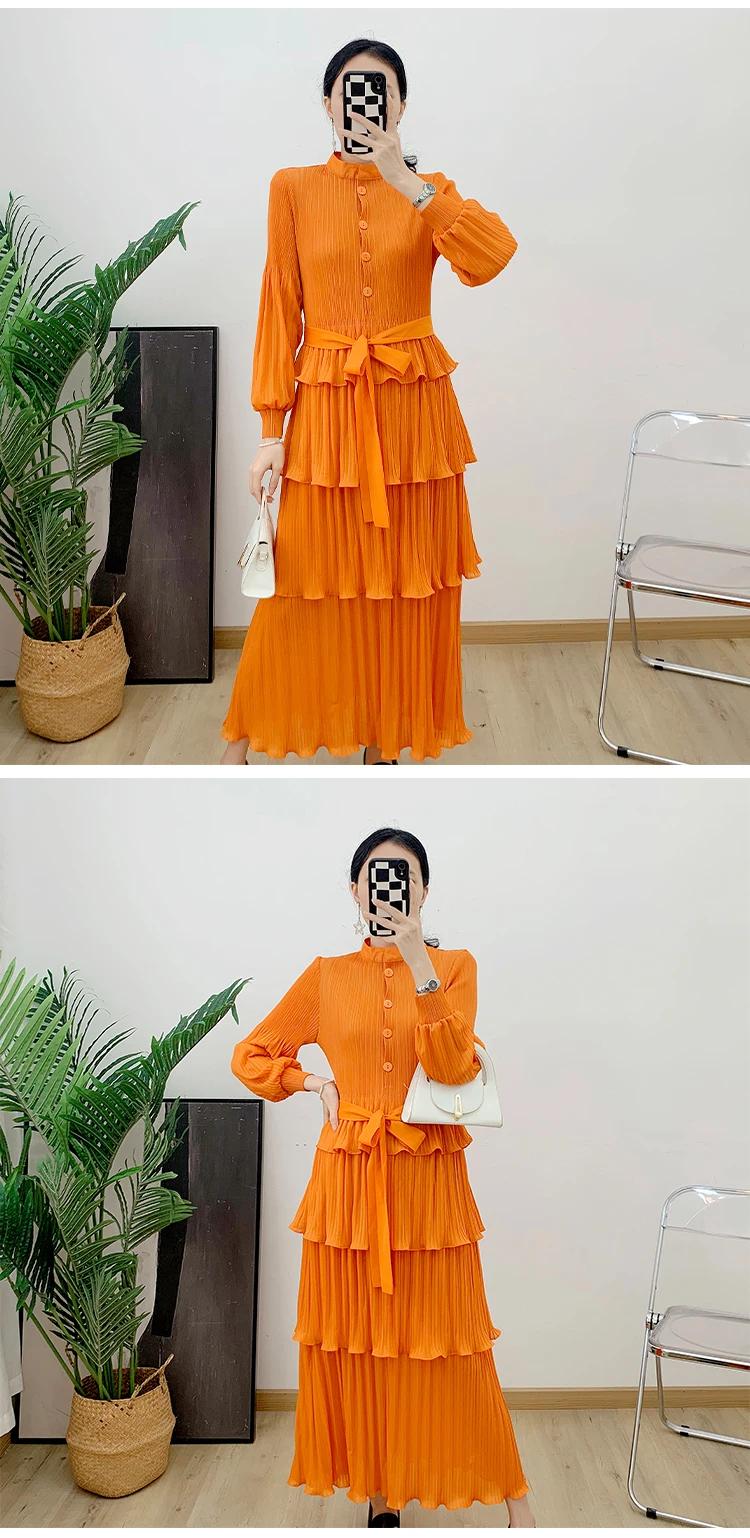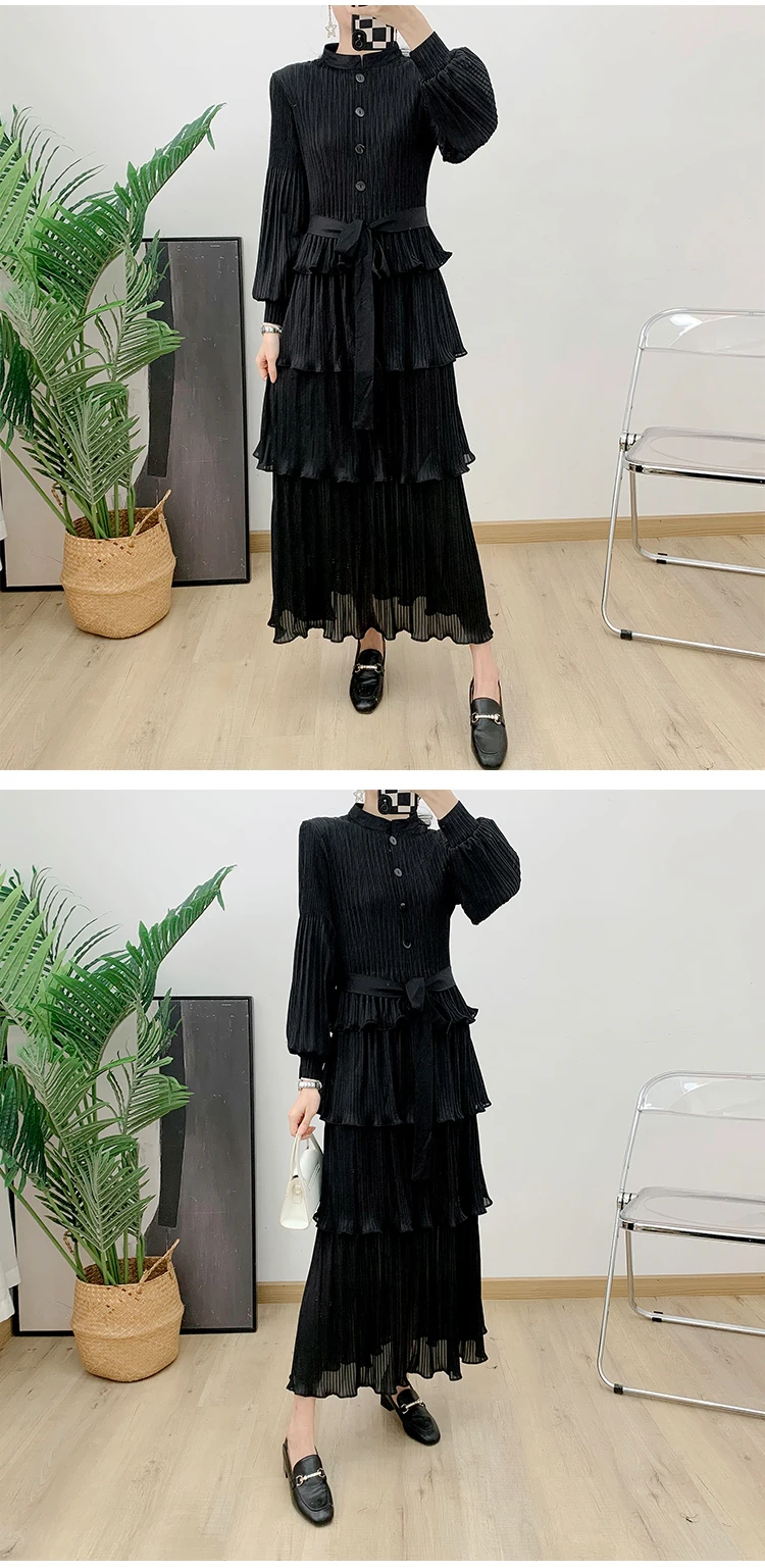 Introducing our LANMREM Ruffle Pleated Long Dress, the perfect addition to your wardrobe for the upcoming 2024 Spring season. This dress boasts lantern sleeves, button details, and a flattering ruffle pleated design that will turn heads at any festival or event. Made with high-quality materials and expert craftsmanship, this dress offers a comfortable and stylish fit for all body types. Our one-size option (unit:cm) has a length of 132, bust measurement of 90-115, sleeve length of 54, and shoulder width of 38. Plus, with a variety of colors to choose from, you can easily find the perfect match for your personal style. Don't miss out on this limited time offer and elevate your fashion game with our LANMREM Ruffle Pleated Long Dress.
