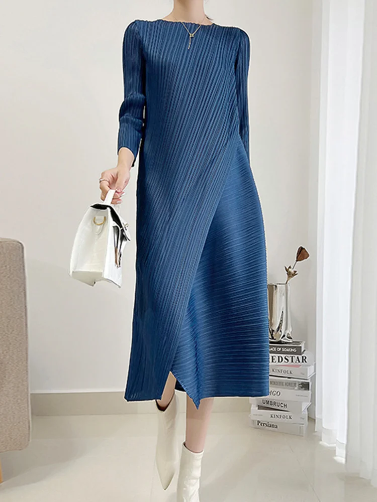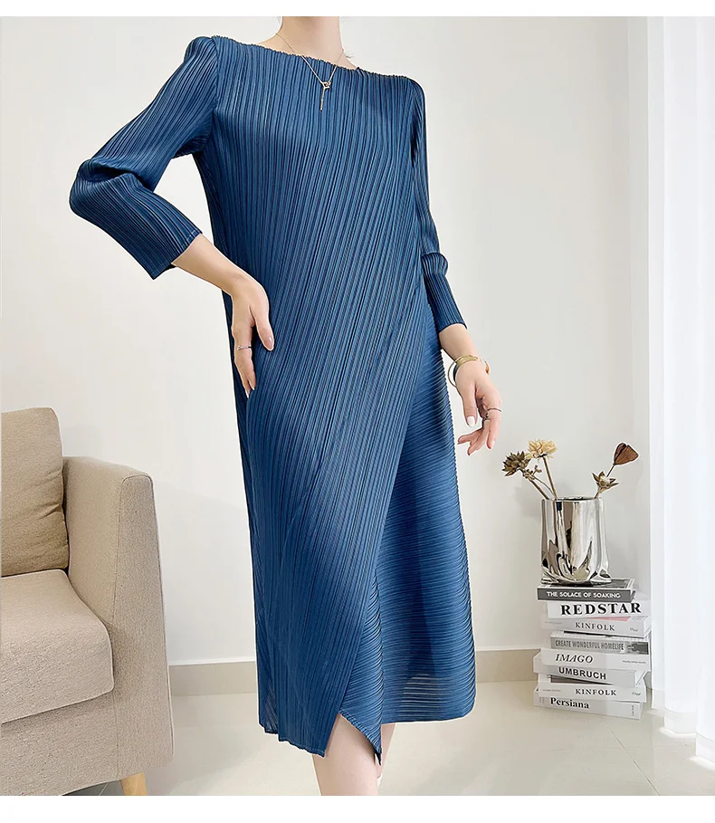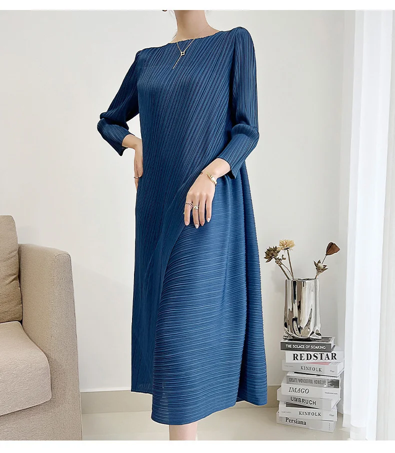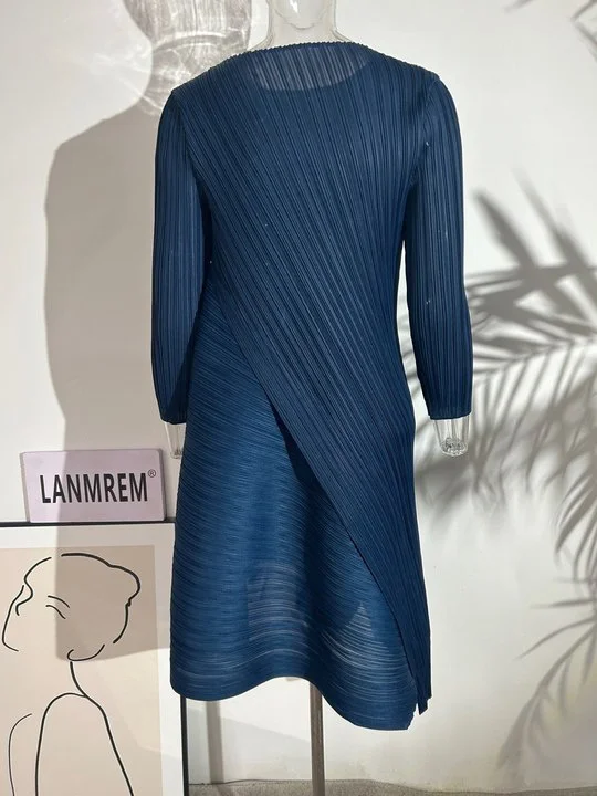 Introducing the LANMREM Pleated Solid Color Dress for Women, the perfect blend of style and comfort. Made with high-quality fabric, this dress offers a loose and flowy fit, making it perfect for any body type. The round neck and mid-calf length add a touch of elegance, making it suitable for both office and casual wear. Available in a variety of solid colors, this dress is a must-have for every fashion-forward woman. Don't miss out on this exclusive piece, get yours today and elevate your wardrobe to the next level!