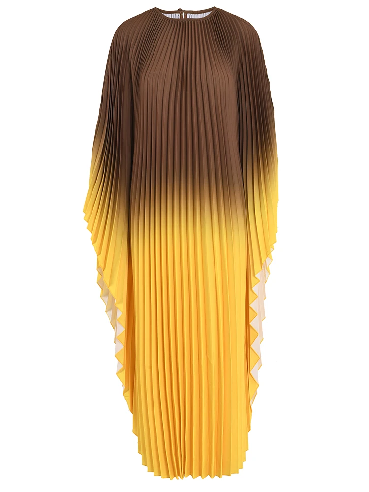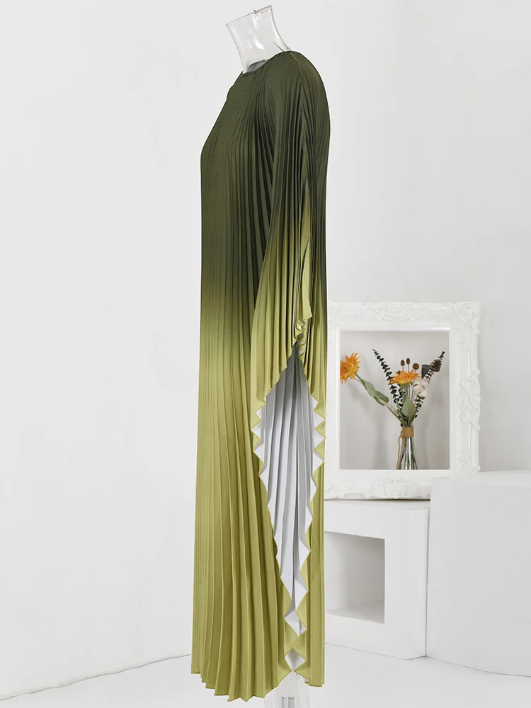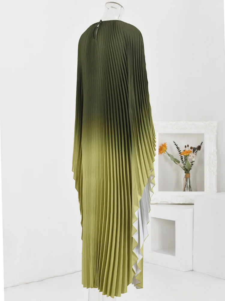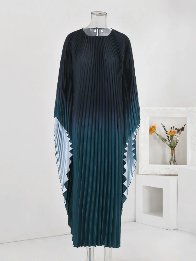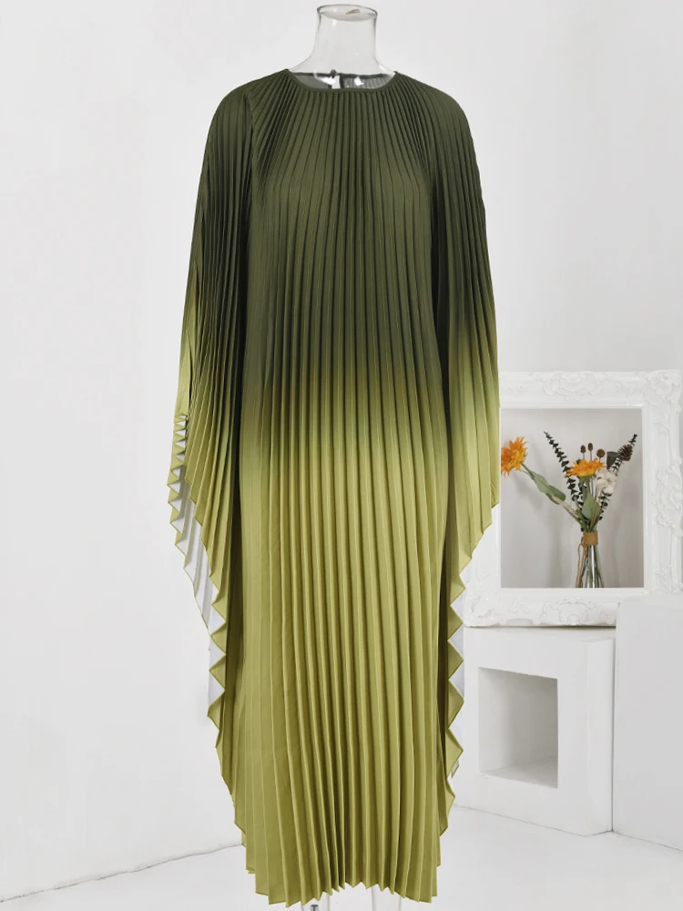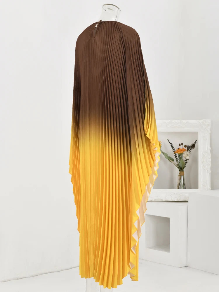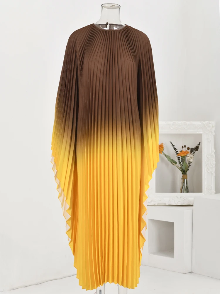 Introducing our LANMREM Spring Contrast Color Loose Pleated Dress, the perfect addition to your wardrobe for the upcoming season. Made with high-quality materials, this dress features a round neck, batwing sleeves, and a flowy silhouette for a comfortable and stylish look. The contrast color design adds a touch of uniqueness to the dress, making it stand out from the rest. With a length of 107-125cm and a bust size of 66-180cm, this dress is suitable for all body types. It also comes in one size, making it a perfect fit for everyone. Whether you're going for a casual outing or a special occasion, this dress is the perfect choice. Limited time offer, get yours now!