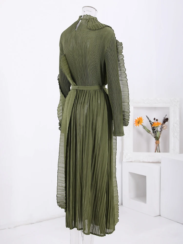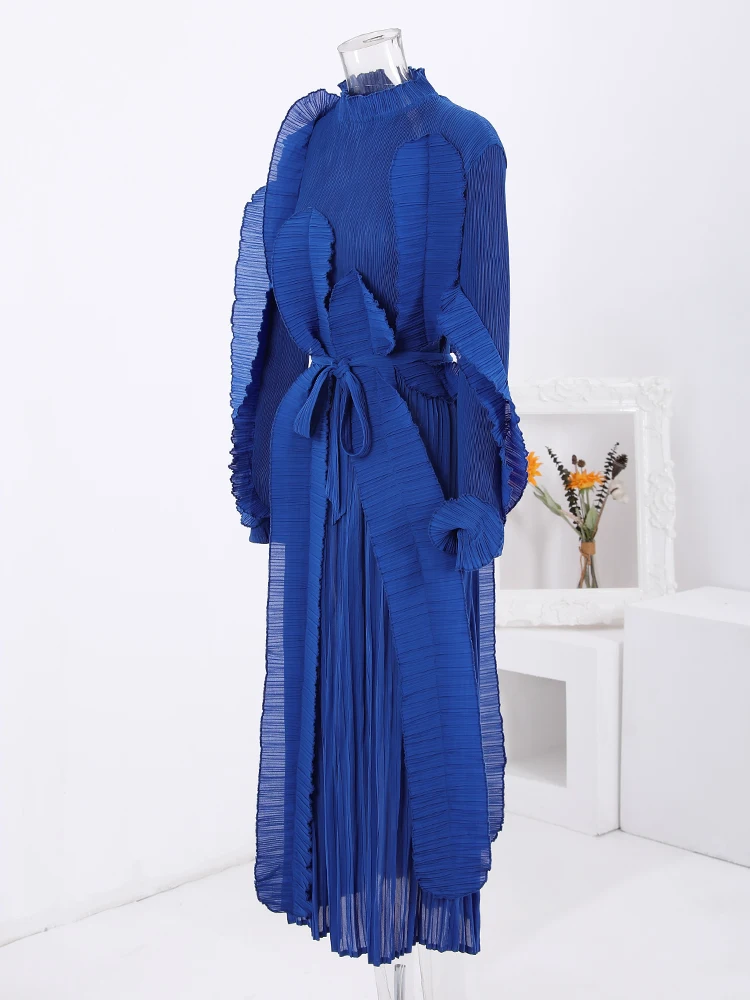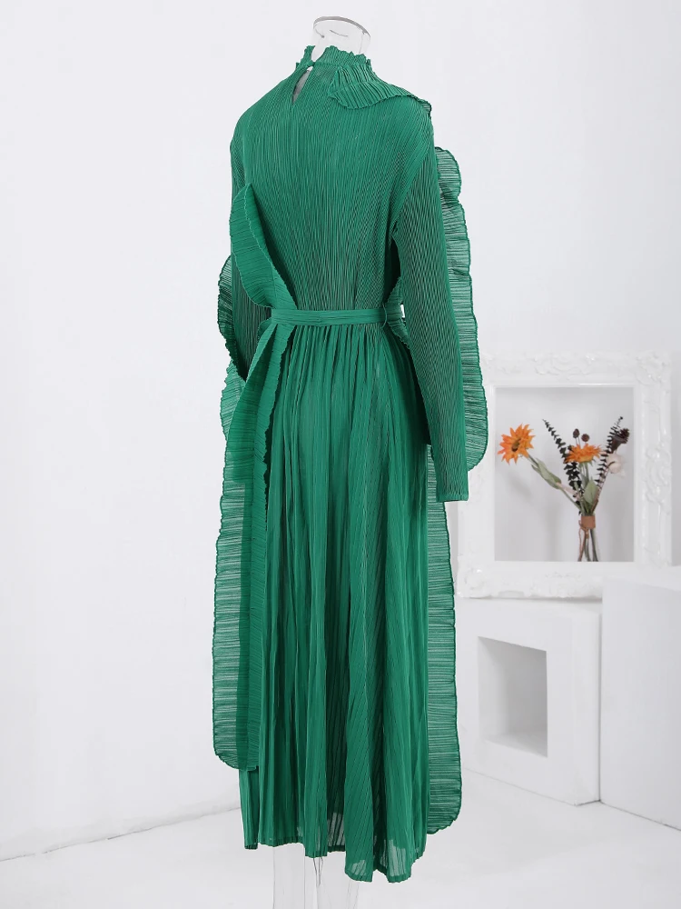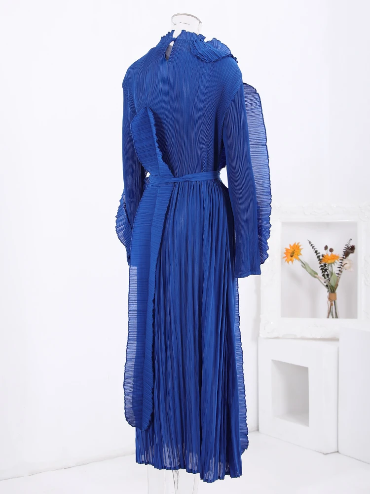 Introducing the LANMREM Fashion Pleated Ruffles Dress, the ultimate statement piece for any elegant party. This dress features a stunning stand collar, gathered waist, and pleated ruffles for a feminine touch. The included belt cinches at the waist for a flattering silhouette. Made with high-quality materials, this dress is designed to make you stand out in the crowd. With its versatile design, it can be dressed up or down for any occasion. Don't miss out on this exclusive dress, perfect for the upcoming 2024 Spring season. Limited time only, get yours now!