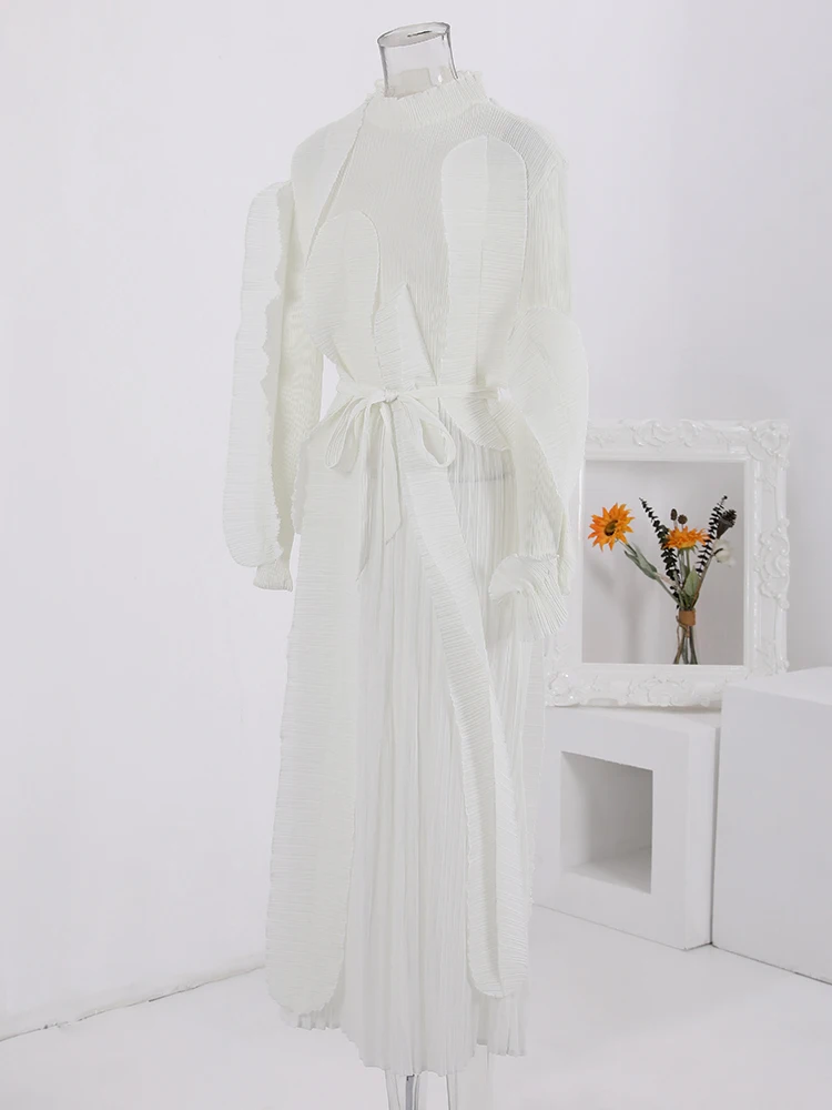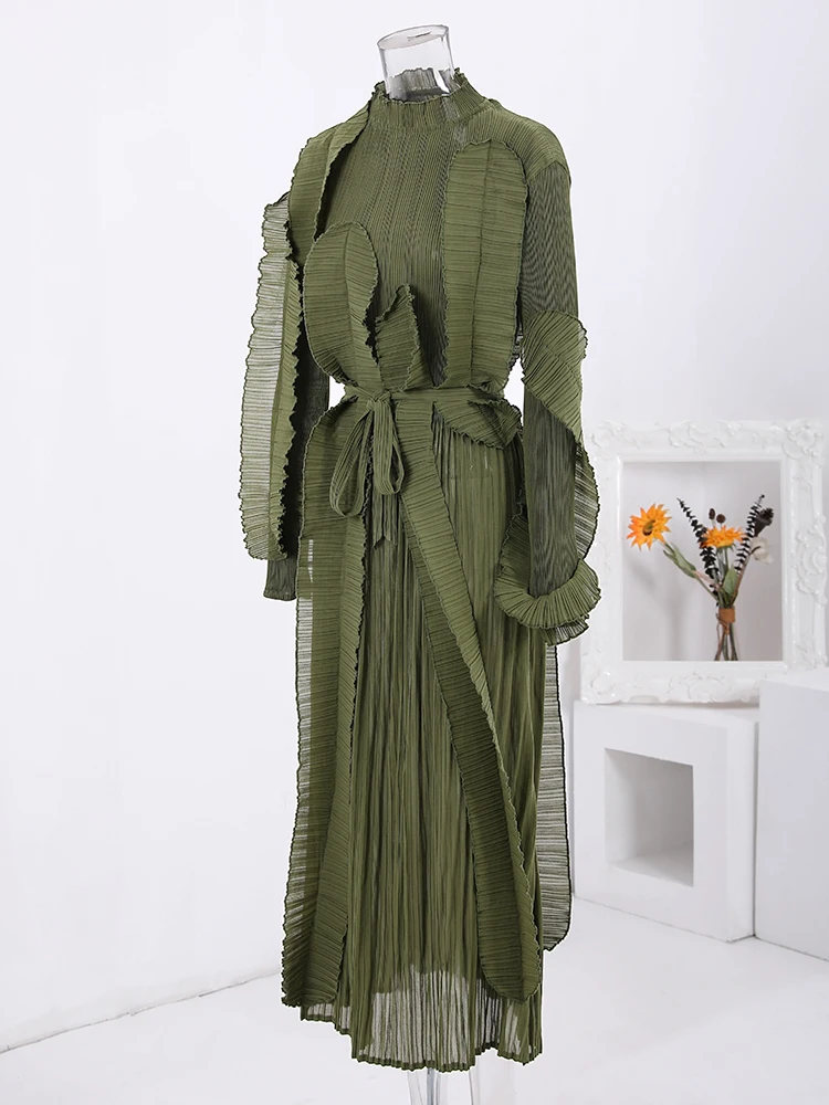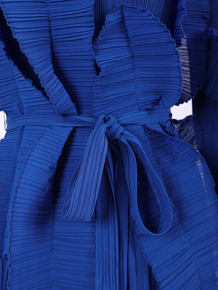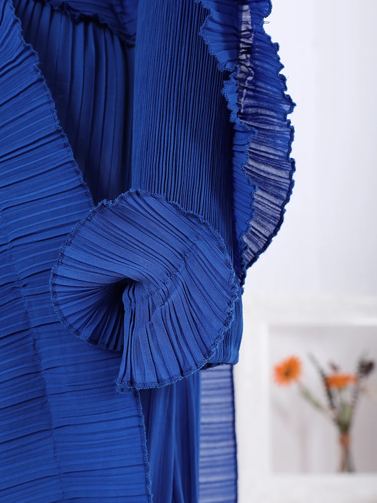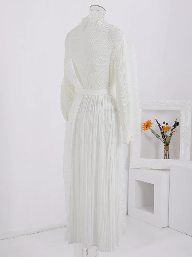 Introducing the LANMREM Fashion Pleated Ruffles Dress, the ultimate statement piece for any elegant party. This dress features a stunning stand collar, gathered waist, and pleated ruffles for a feminine touch. The included belt cinches at the waist for a flattering silhouette. Made with high-quality materials, this dress is designed to make you stand out in the crowd. With its versatile design, it can be dressed up or down for any occasion. Don't miss out on this exclusive dress, perfect for the upcoming 2024 Spring season. Limited time only, get yours now!