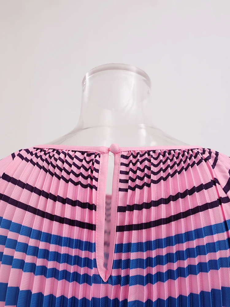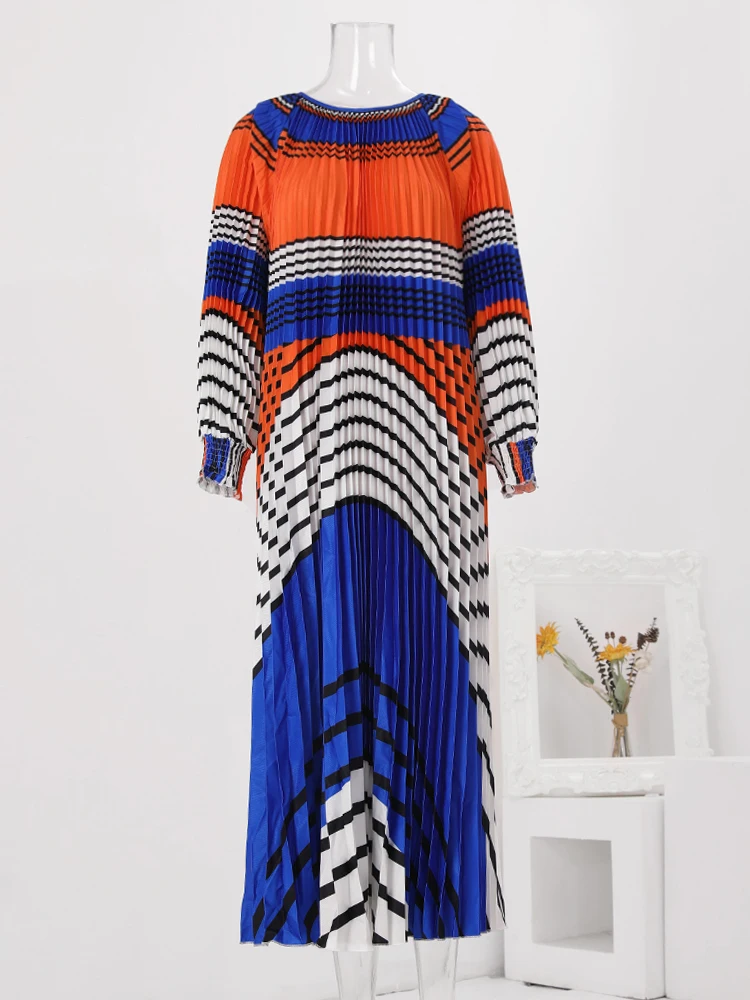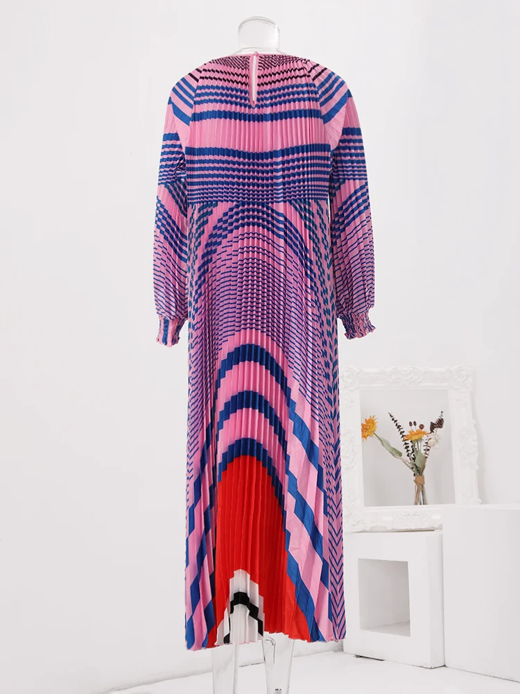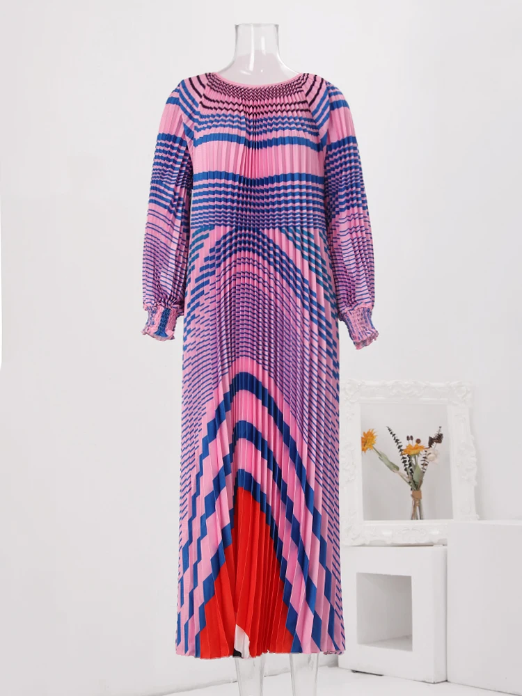 Elevate your style effortlessly with the LANMREM Irregular Striped Print Pleated Dress. 🌟