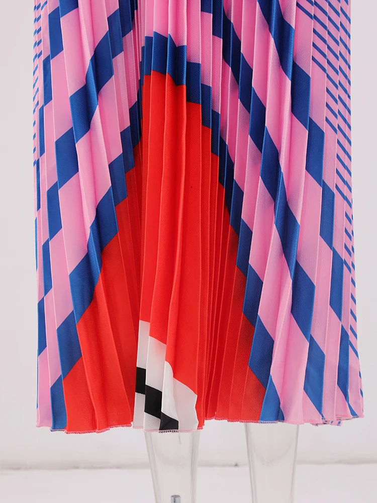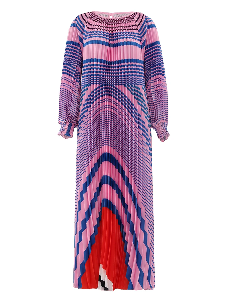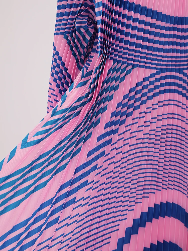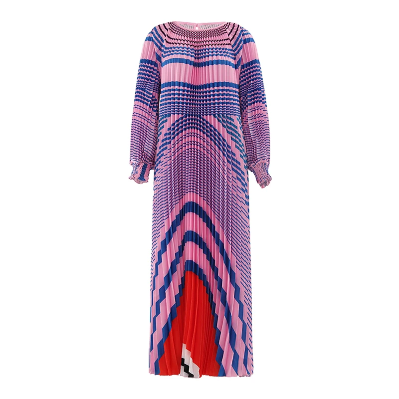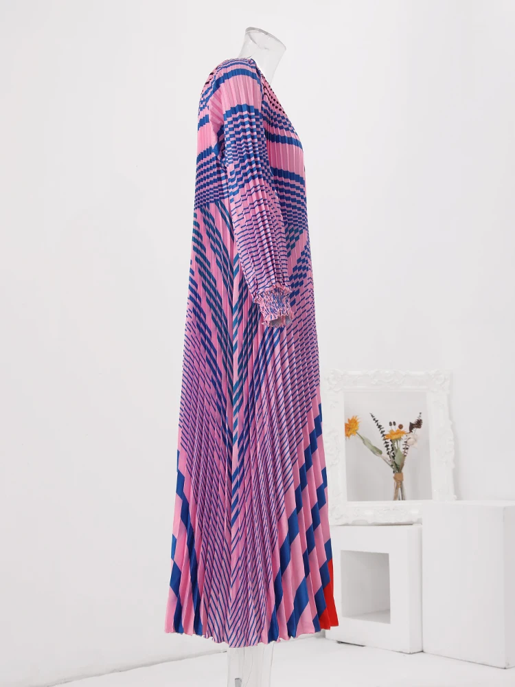 Elevate your style effortlessly with the LANMREM Irregular Striped Print Pleated Dress. 🌟