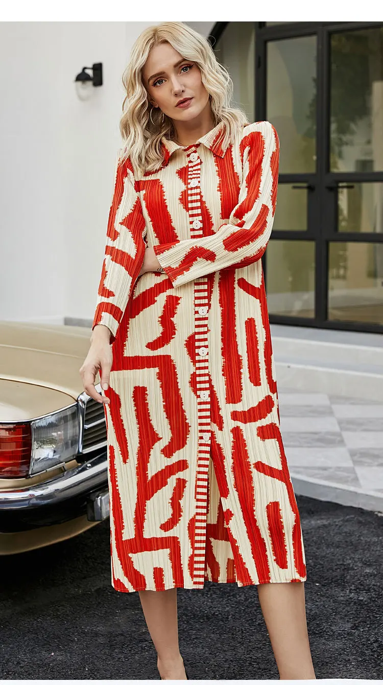 Elevate your fashion game with this unique and stylish dress that combines trendy stripes and pleats with a pop of contrast color. Perfect for the modern fashionista looking to make a statement, this mid-length dress is a versatile addition to your streetwear collection. The dress features a single-breasted design with a flattering silhouette that suits various body shapes. Made with high-quality materials, this dress offers both style and comfort, making it ideal for everyday wear or special occasions. Embrace the chic and edgy vibe of street style with the LANMREM dress and turn heads wherever you go.