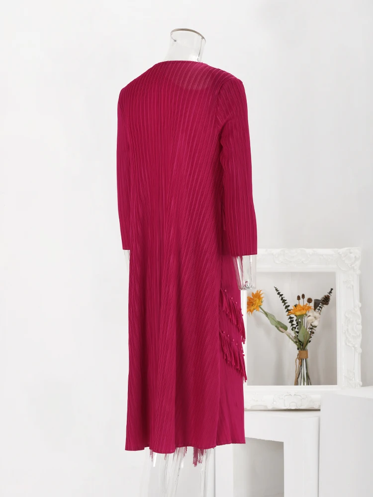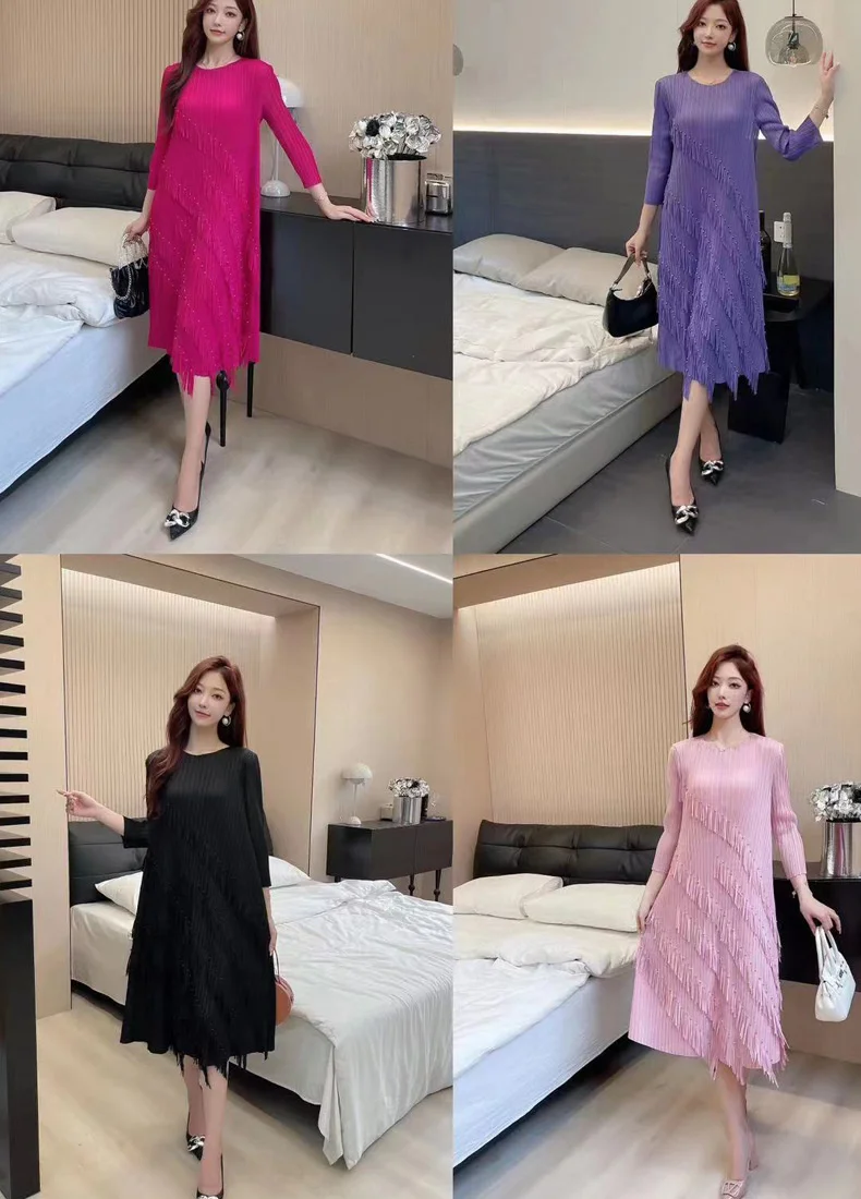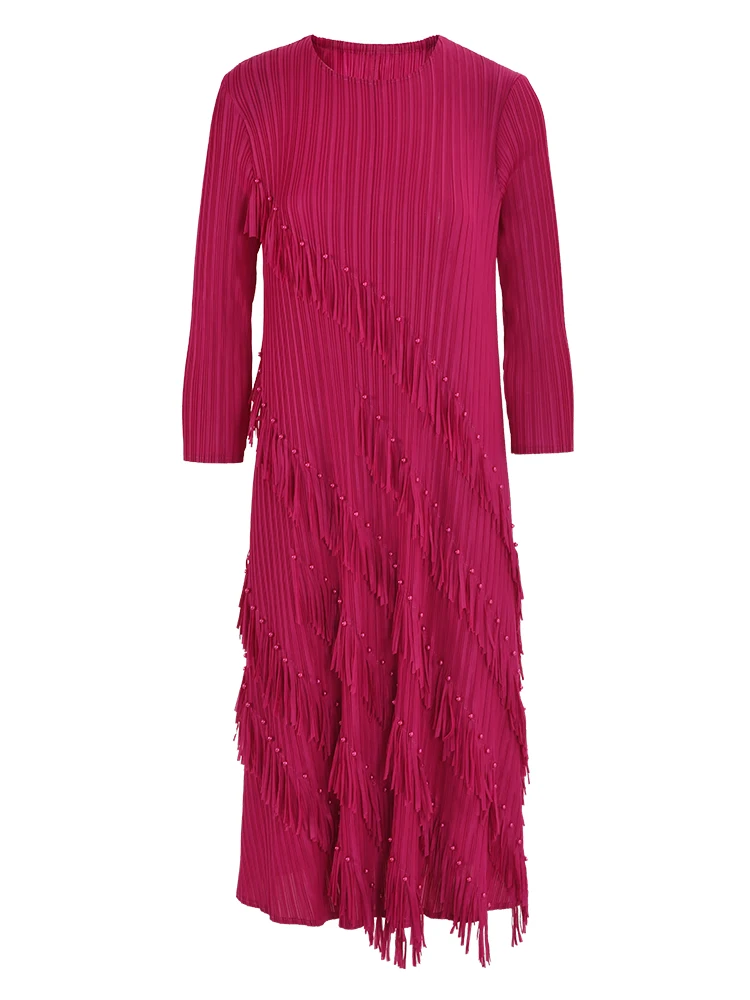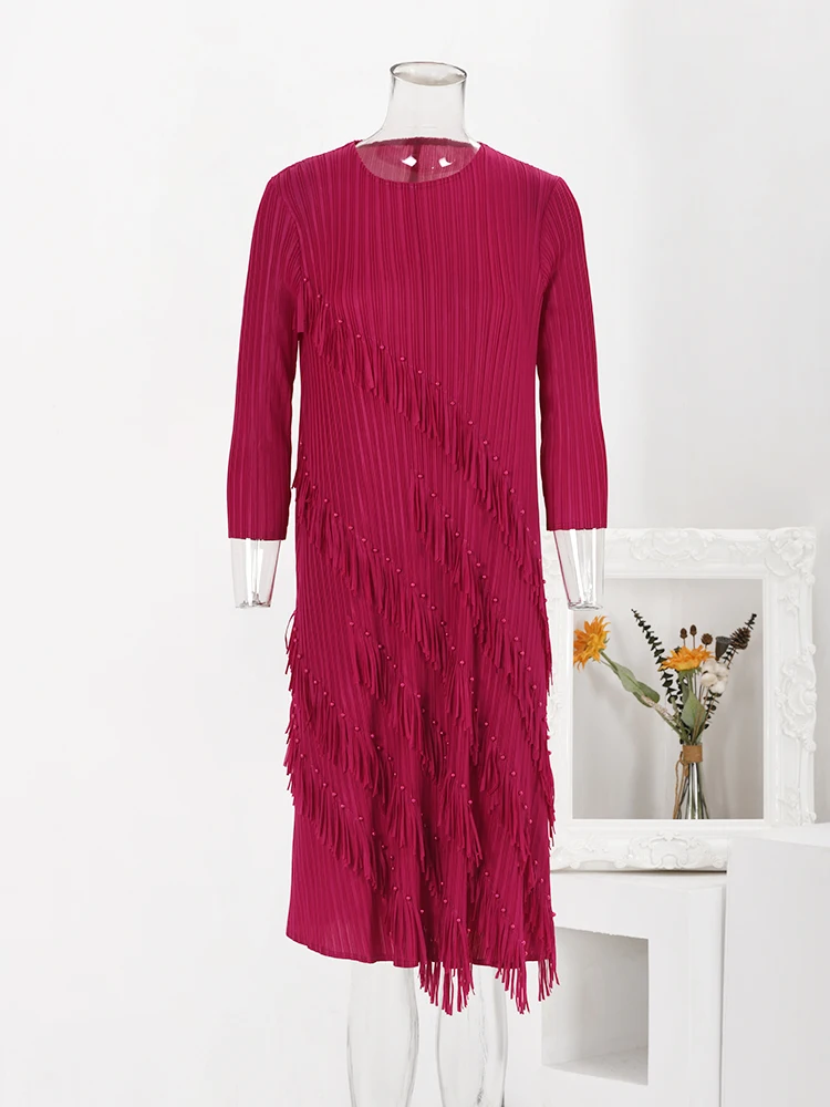 1. Versatile and Trendy: Perfect for any occasion, this dress features tassel beading and a pleated design that adds a touch of fashion to your wardrobe.