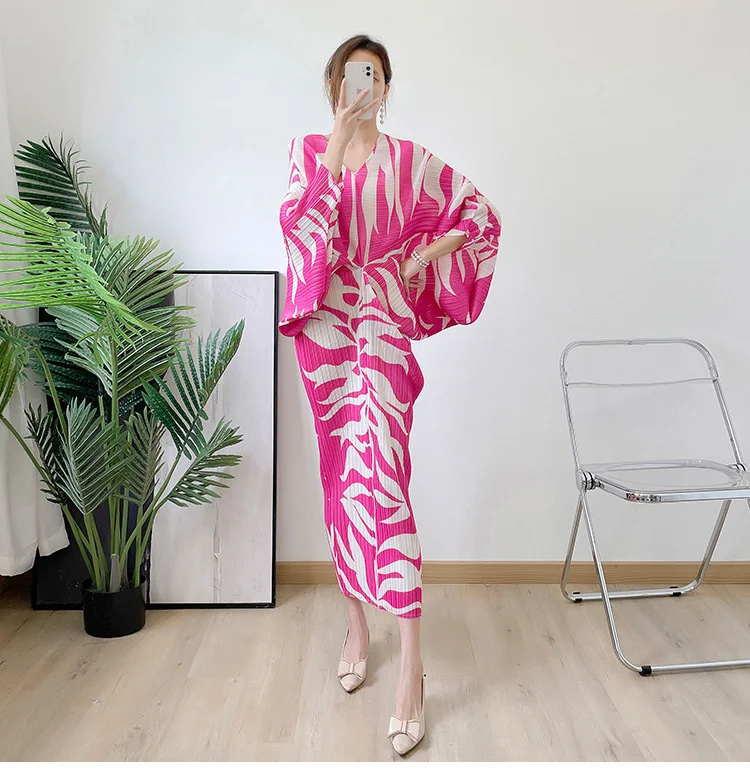 Introducing our LANMREM Print Design Pleated Dress, the ultimate fashion statement for women. This dress features a V-neckline and batwing sleeves, creating a stylish and elegant look. Made with high-quality materials, it offers a perfect fit for sizes 90-125cm. Our dress is perfect for any occasion, whether it's a party or a casual outing. Its unique print design and pleated details make it stand out from the rest. Plus, it's available in one size, making it a versatile option for all body types. Don't miss out on this limited time offer, get yours now and elevate your wardrobe to the next level.