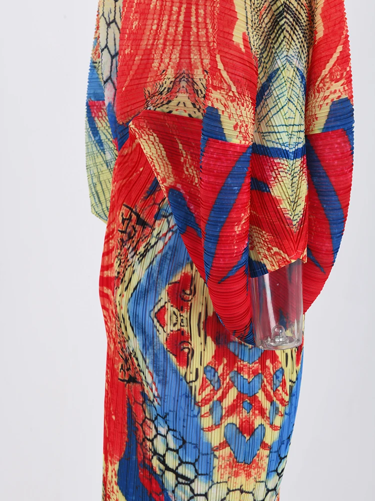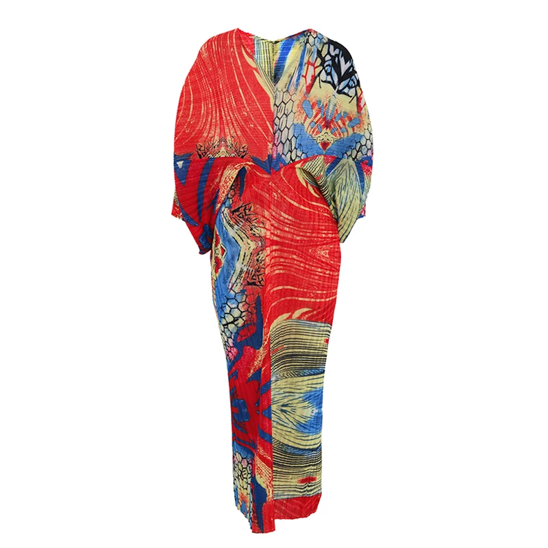 🌸 What it is - A gorgeous high-end dress with a V neck design, long batwing sleeves, and exquisite pleats. Elevate your style effortlessly with this stunning piece.