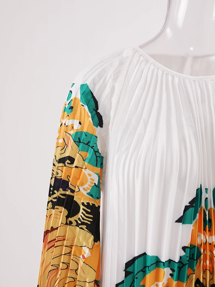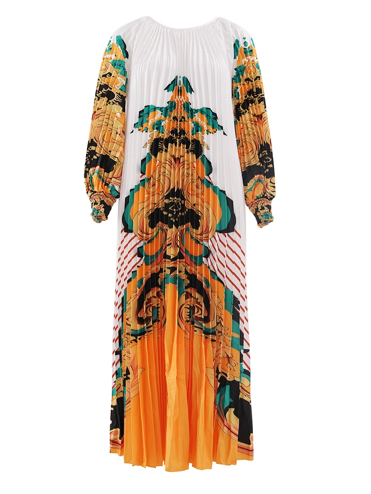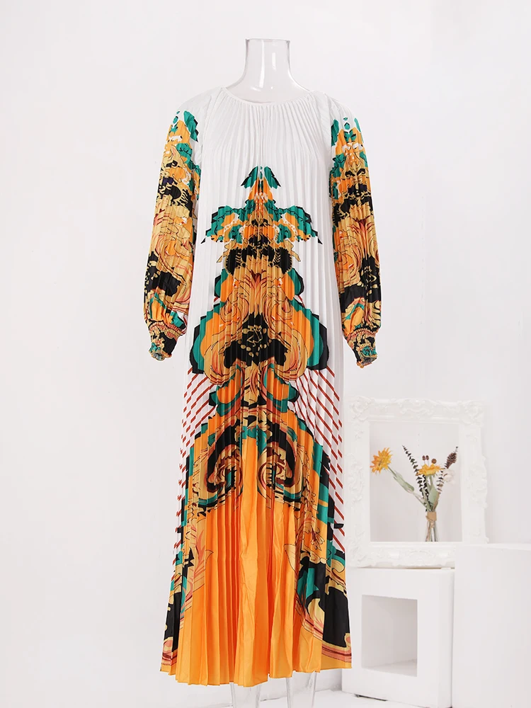 🌸 What it is - This unique dress features a stylish vintage print, A-line silhouette, and a comfortable round neck design. The long sleeves add a touch of elegance, making it a must-have in your wardrobe.