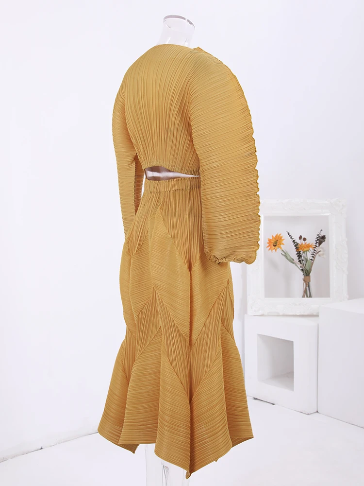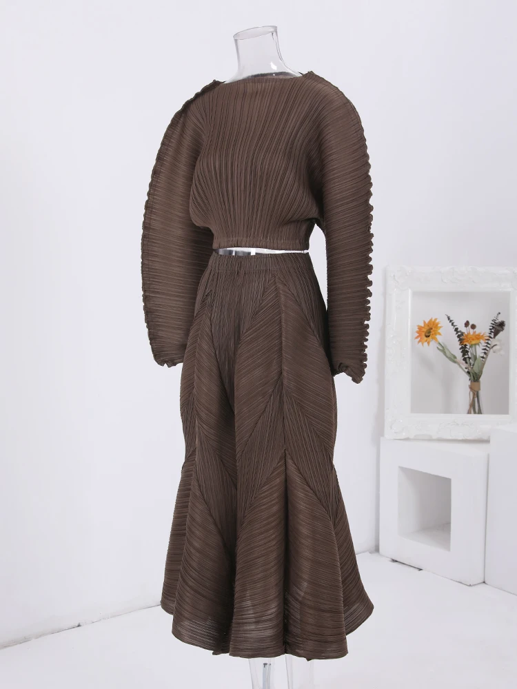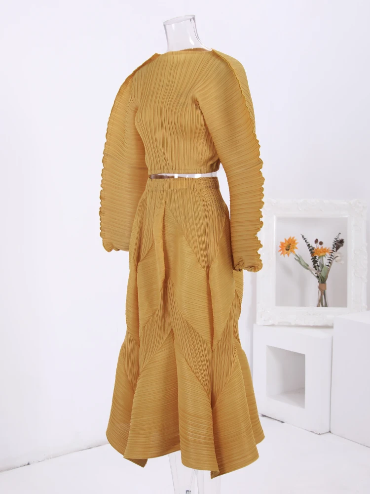 Introducing our LANMREM Women's Pleated 2 Piece Set, the perfect combination of style and comfort. Made with high-quality materials, this set features a casual solid color long sleeve t-shirt and a high waist skirt, perfect for the upcoming 2024 Spring season. The top is one size and measures 60cm in length, 110cm in bust, 39cm in sleeve, and 60cm in shoulder. The skirt measures 85cm in length, 80cm in waist, and 110cm in hips. With a 1 inch = 2.54 cm conversion, you can easily find your perfect fit. Say goodbye to the hassle of finding a matching outfit, as this set is designed to solve that problem. Our customers gain a versatile and fashionable addition to their wardrobe, perfect for any occasion. Don't miss out on this limited time offer and be one of the first to own this exclusive set. Upgrade your style game with LANMREM Women's Pleated 2 Piece Set - the ultimate on-the-go fashion choice.