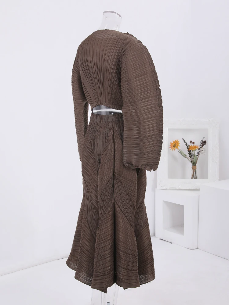 LANMREM Women's 2-Piece Set | Casual Solid Color Long Sleeve Top & High Waist Skirt | 2024 Spring Fashion