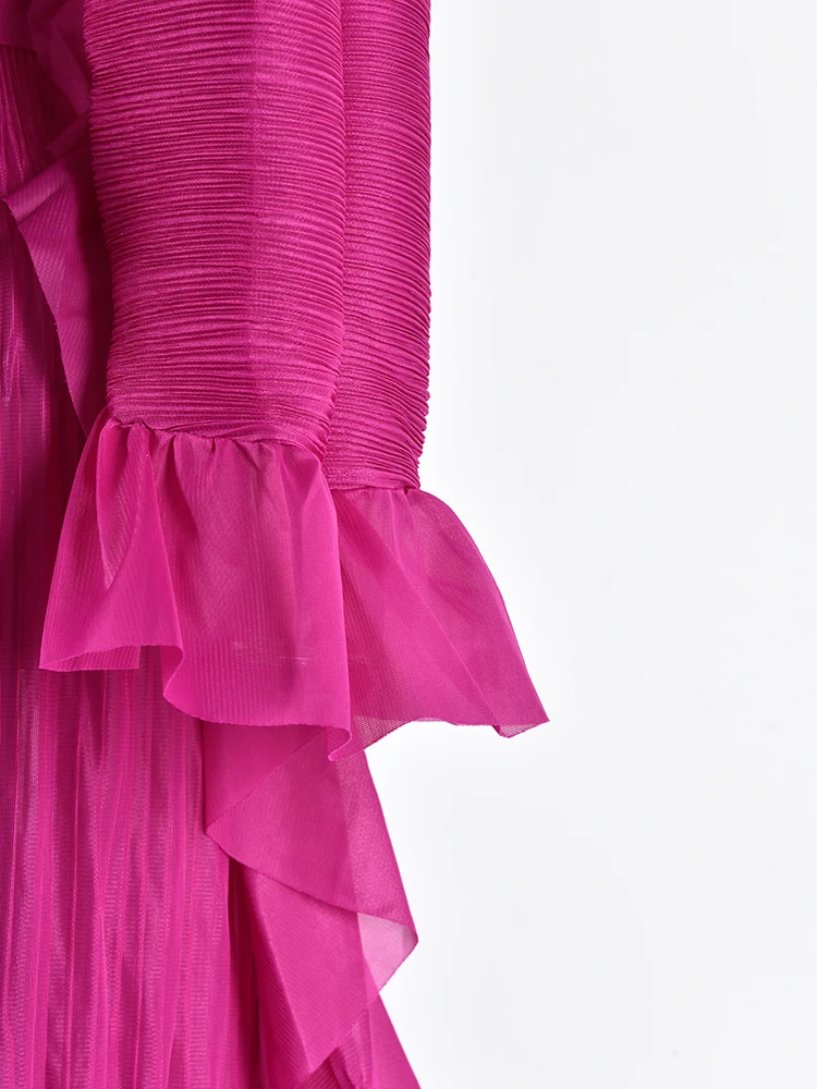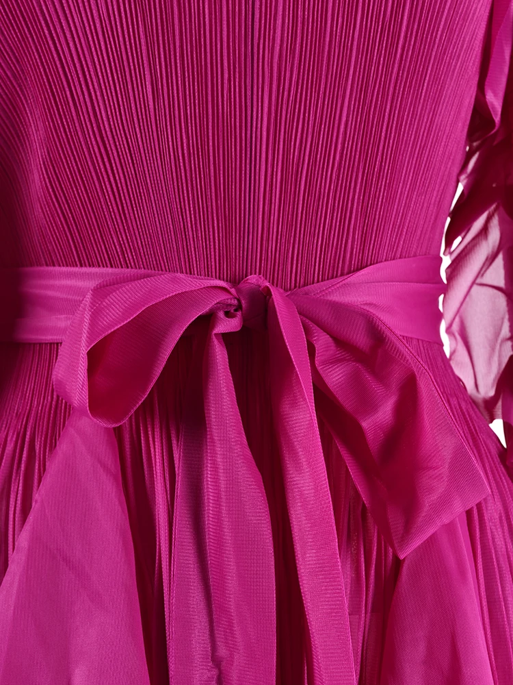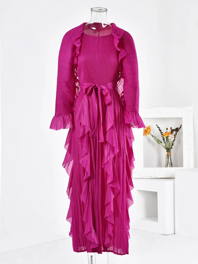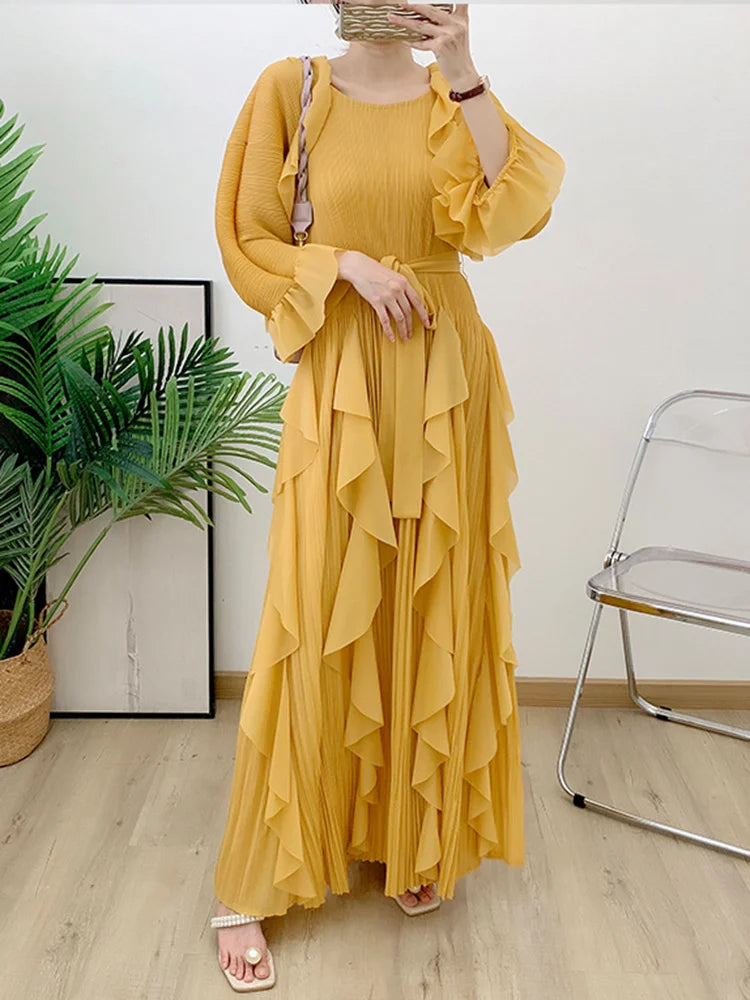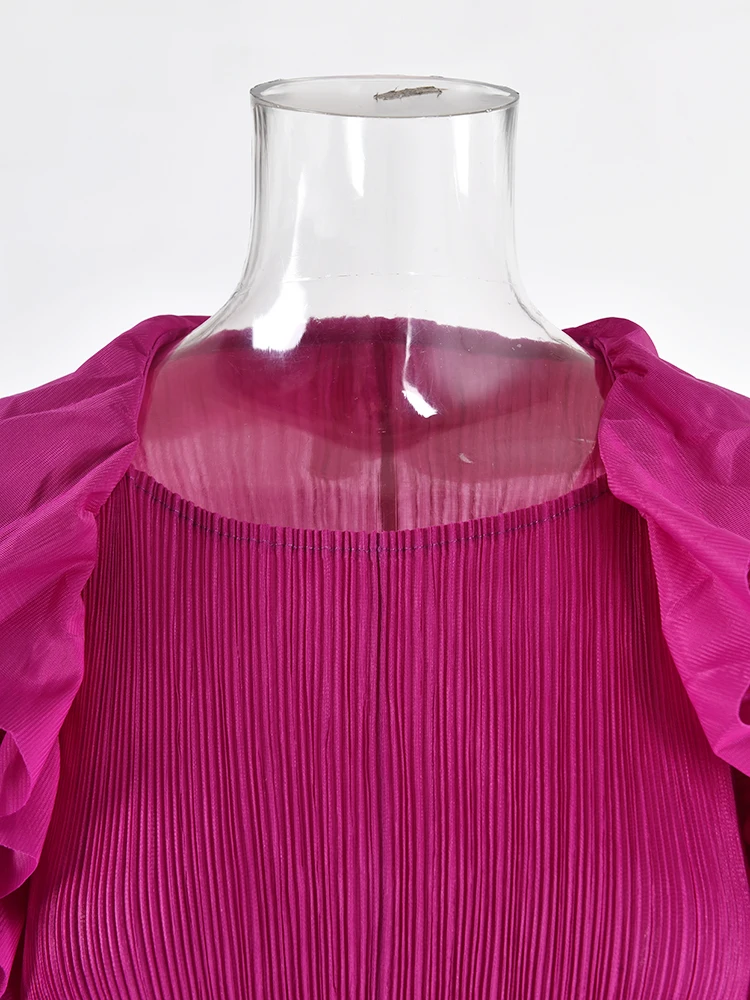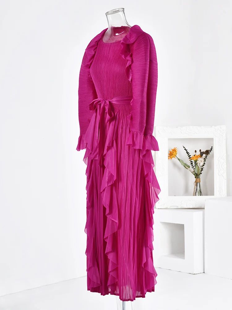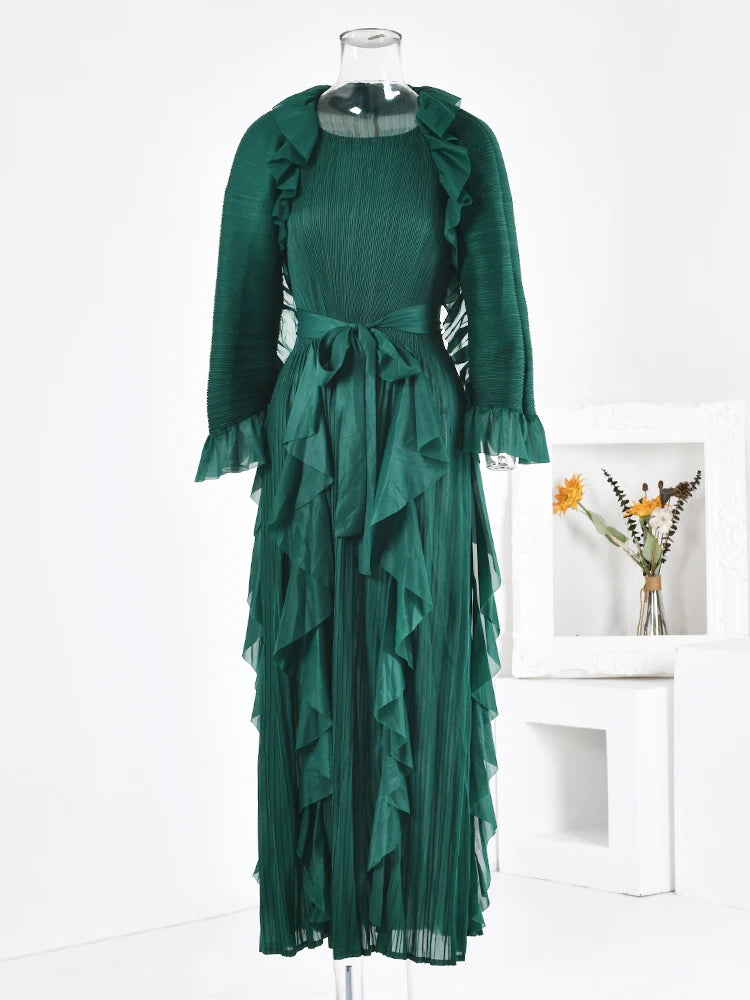 Introducing our newest addition to the LANMREM Fashion collection - the Ruffles Pleated Dress! This dress is designed for the modern woman, featuring a round neck, flare sleeves, and a solid maxi length for a flattering silhouette. The dress also comes with a belt to accentuate your waistline. Made with high-quality materials, this dress is perfect for any party or autumn occasion. Available in one size, with measurements of 135cm in length, 90-118cm in bust, 50cm in sleeve, and 40cm in shoulder. Please note that there may be a slight color variation due to different computer displays. Our products are advertised in ASIAN sizes, which are 1-2 sizes smaller than European and American sizes. Please allow for a 1-3cm error due to manual measurement. Upgrade your wardrobe with our LANMREM Fashion Ruffles Pleated Dress and stand out from the crowd! Limited time only, get yours today!