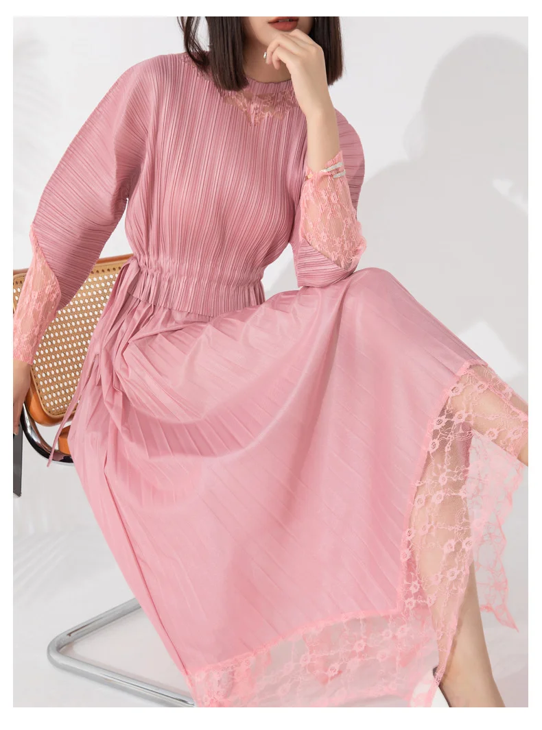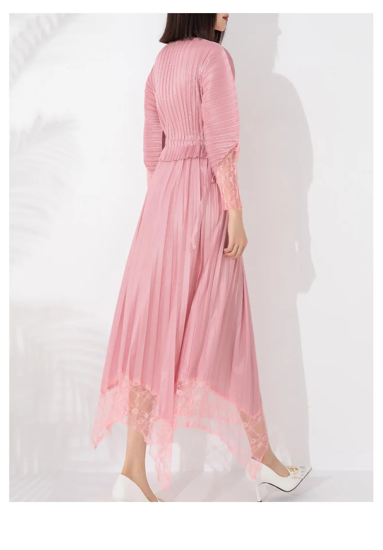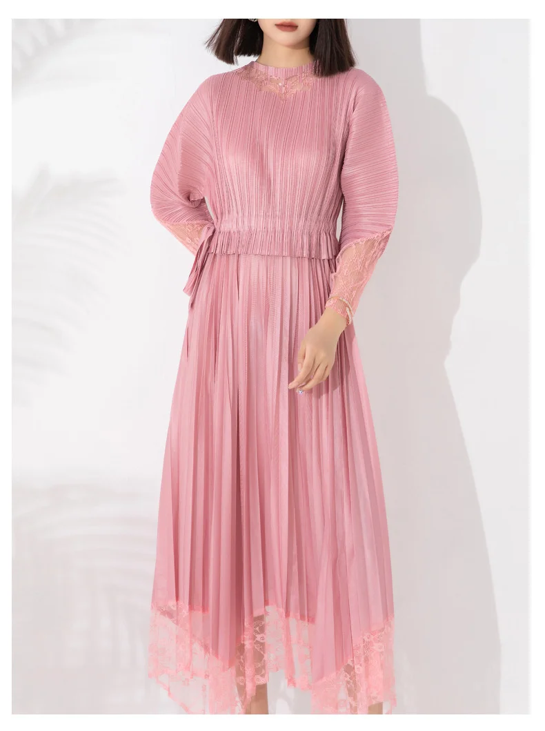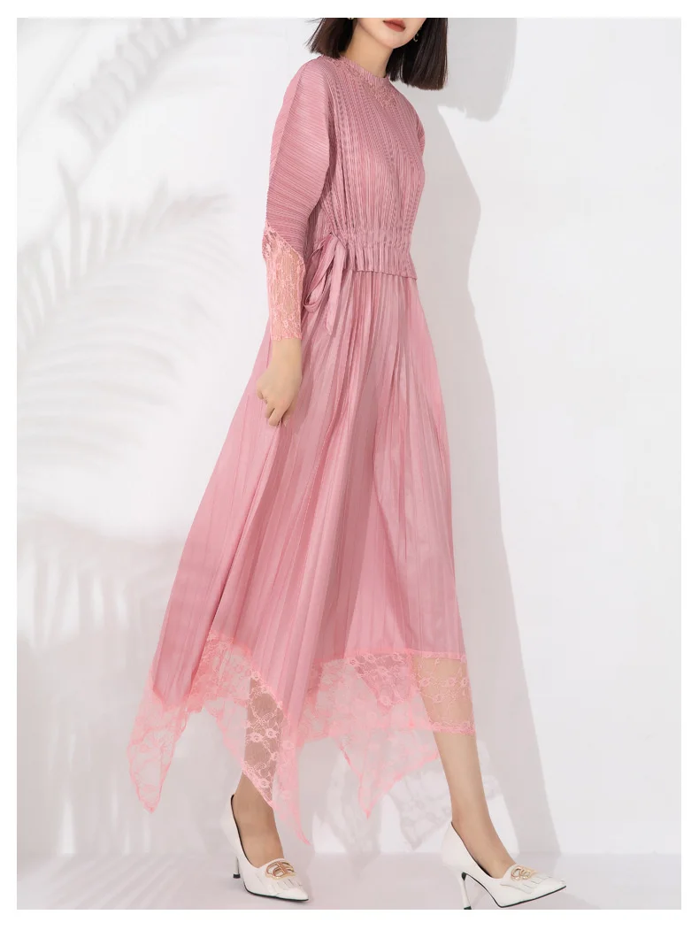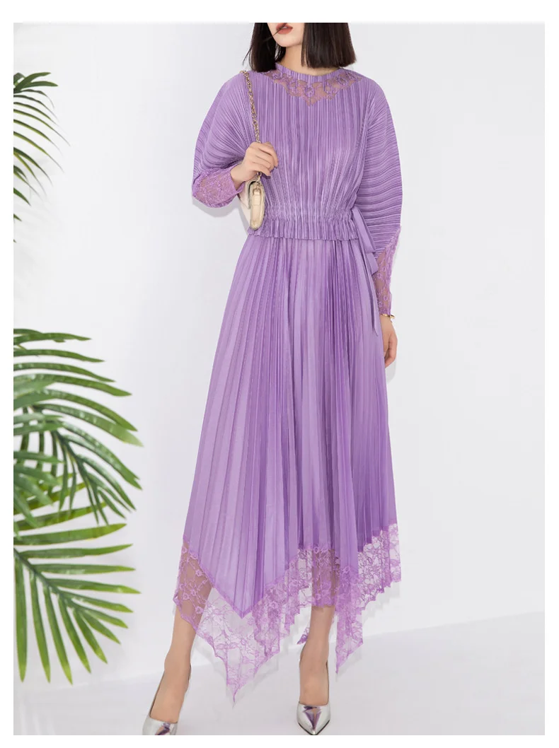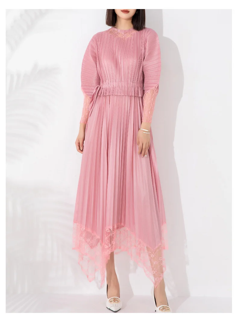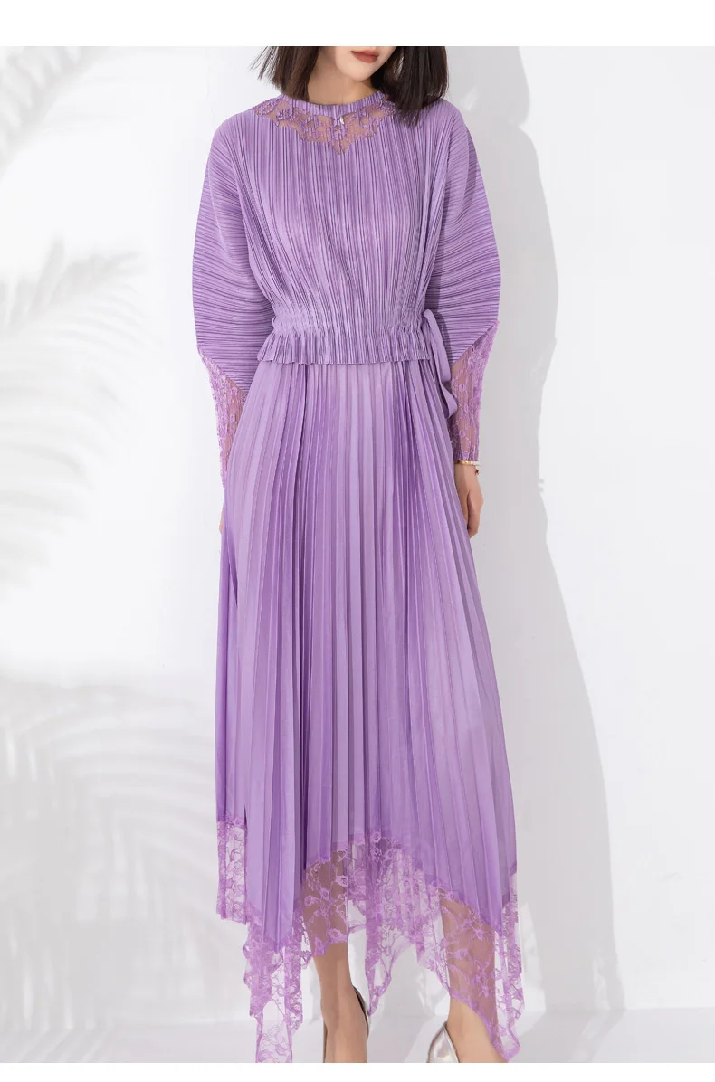 LANMREM Women's Pleated Lace Dress | Autumn 2023 Collection | Bat Sleeves | Irregular Hem | 2DA1876