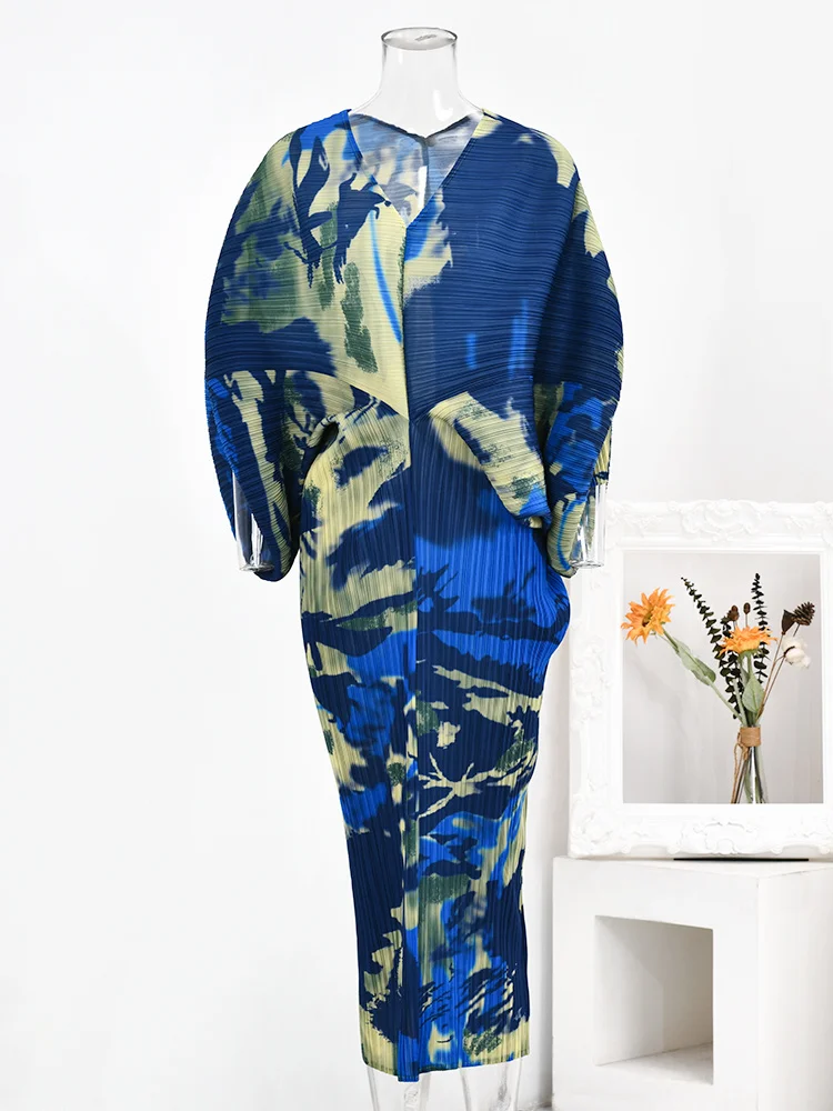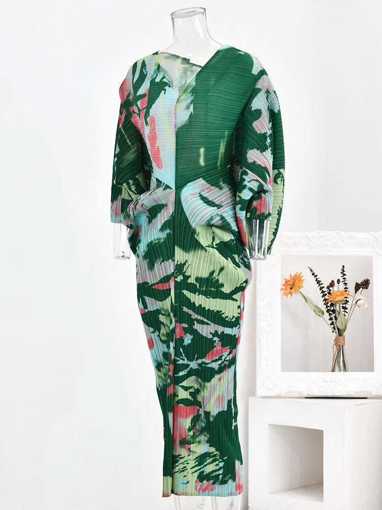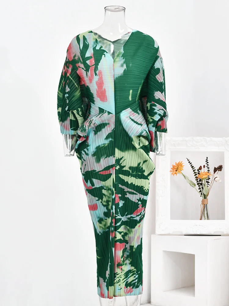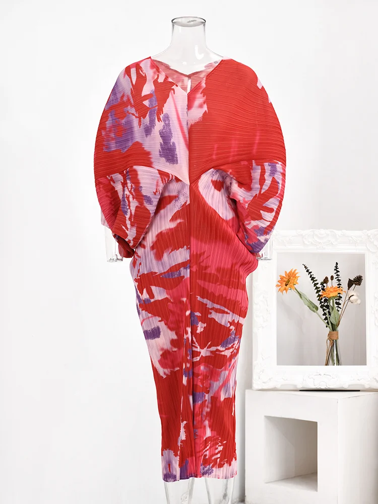 Introducing our latest addition to our 2024 Spring collection, the LANMREM Print Pleated Long Dress. This fashion-forward dress features a V-neckline and batwing sleeves, making it the perfect party outfit. Available in a contrast color design, it will surely turn heads. Made with high-quality materials, this dress offers a perfect fit for sizes 90-125cm. Its one size measurement (in cm) ensures comfort and versatility for all body types. Upgrade your wardrobe with this limited time, exclusive dress that solves the dilemma of finding the perfect party outfit. Don't miss out on this best-selling dress that will elevate your style game.