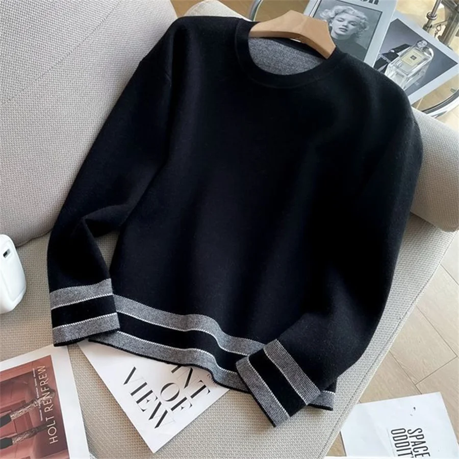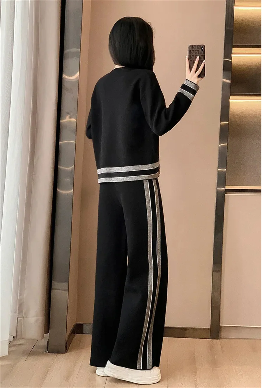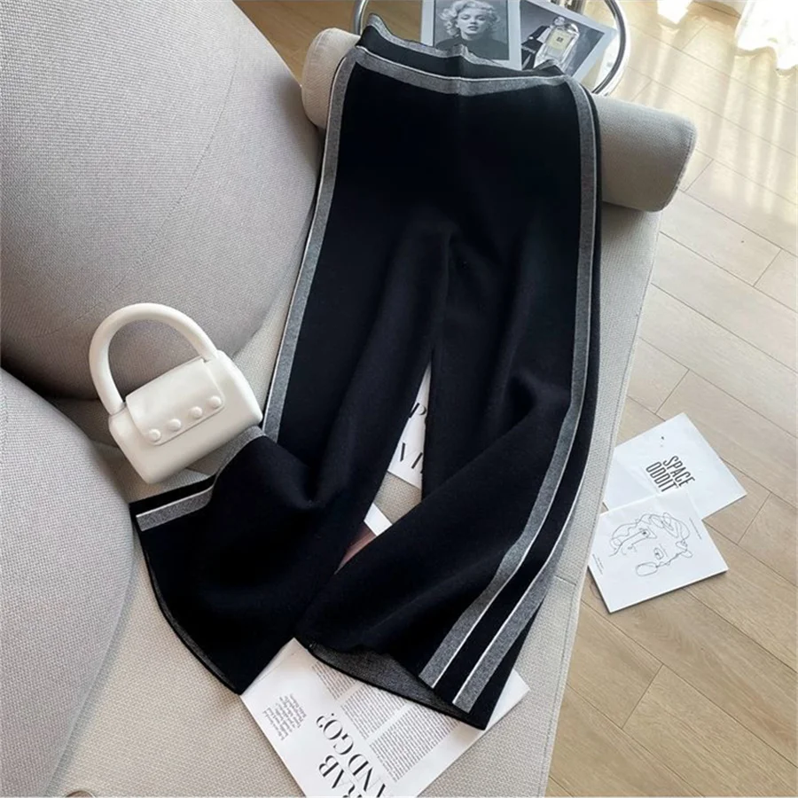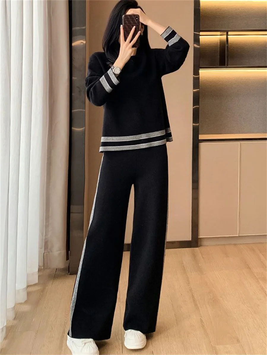 Loose Casual Striped Tracksuit Long Sleeved Sweatshirts Tops Conjunto High Elastic Waist Wide Leg Pants Suit Women Korean Sets