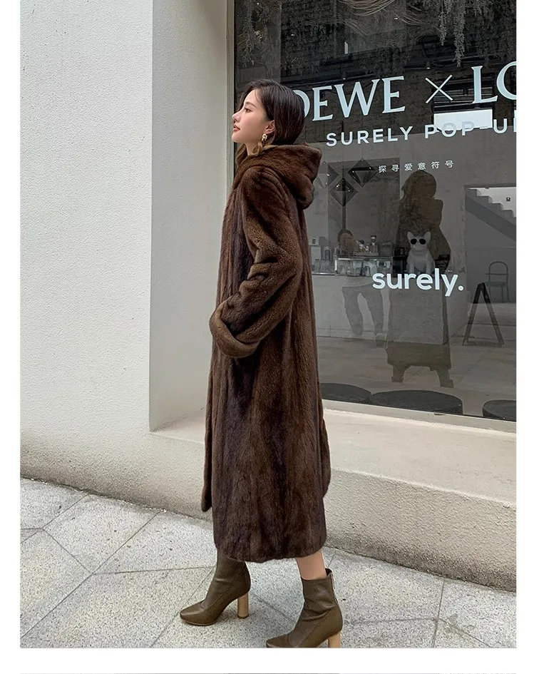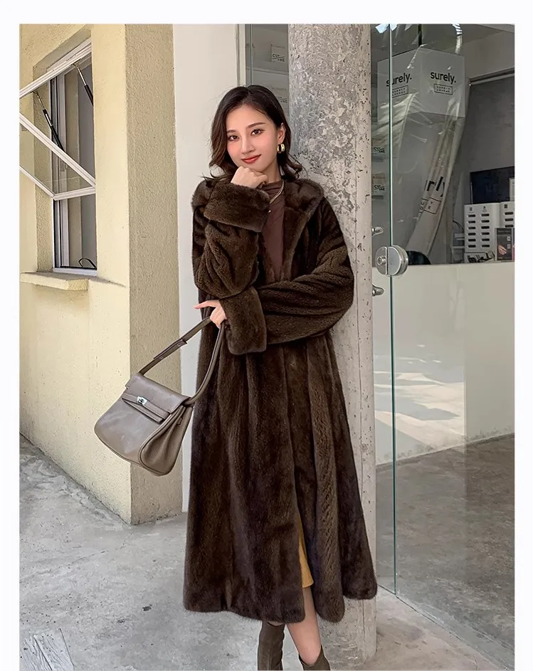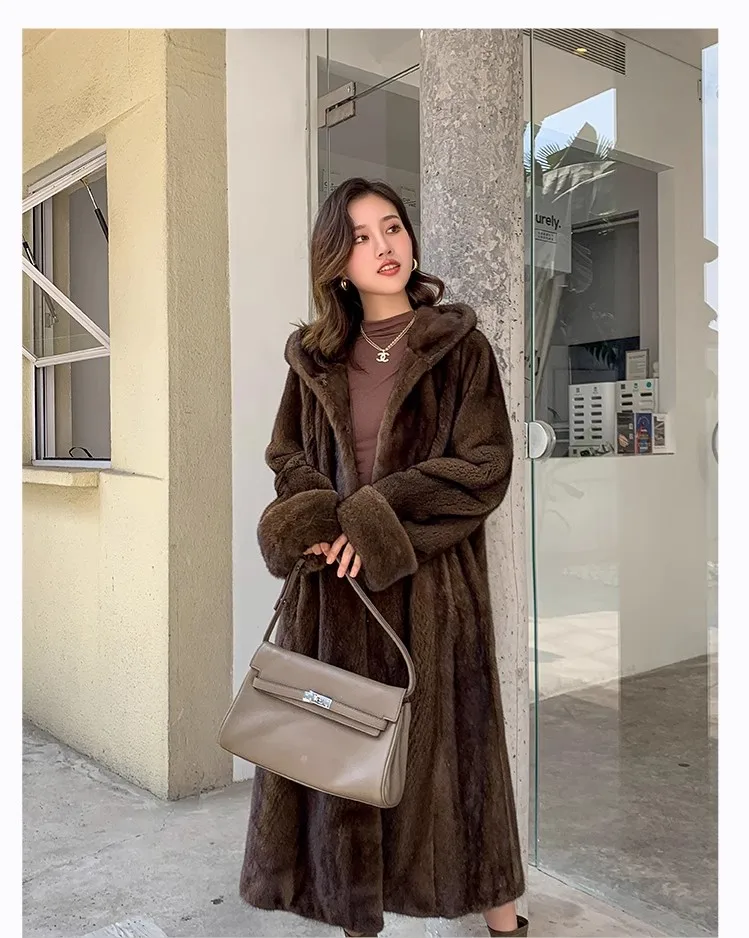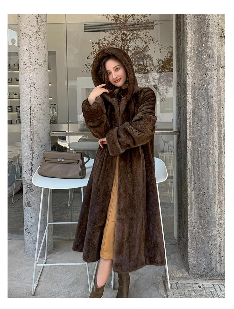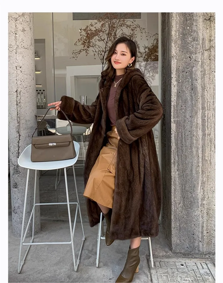 Indulge in luxury with our 100% mink hair velvet coat, featuring a whole mink fur design for women. Stay cozy and stylish with the plus long length and hat included in the 2023 new winter collection.