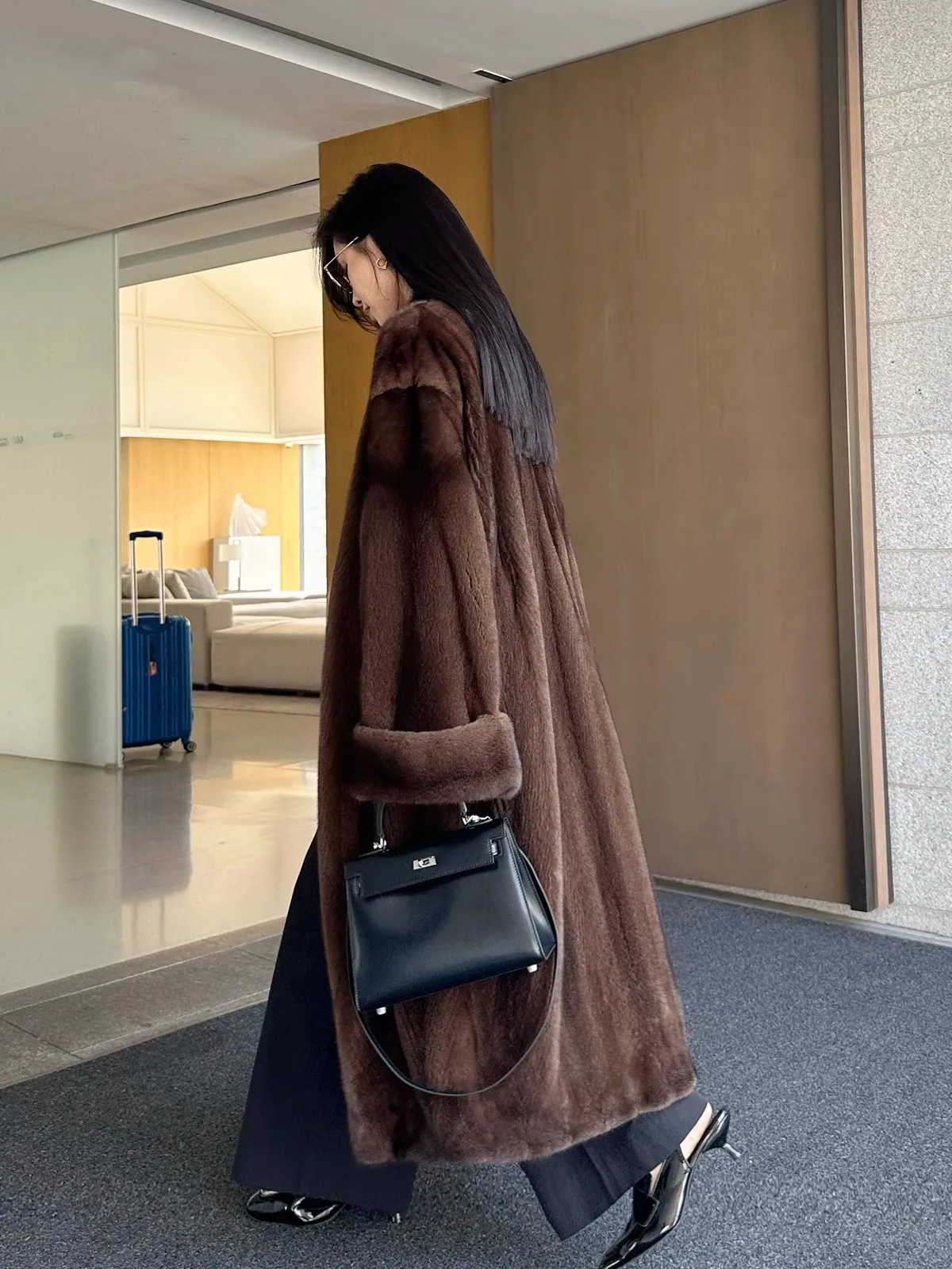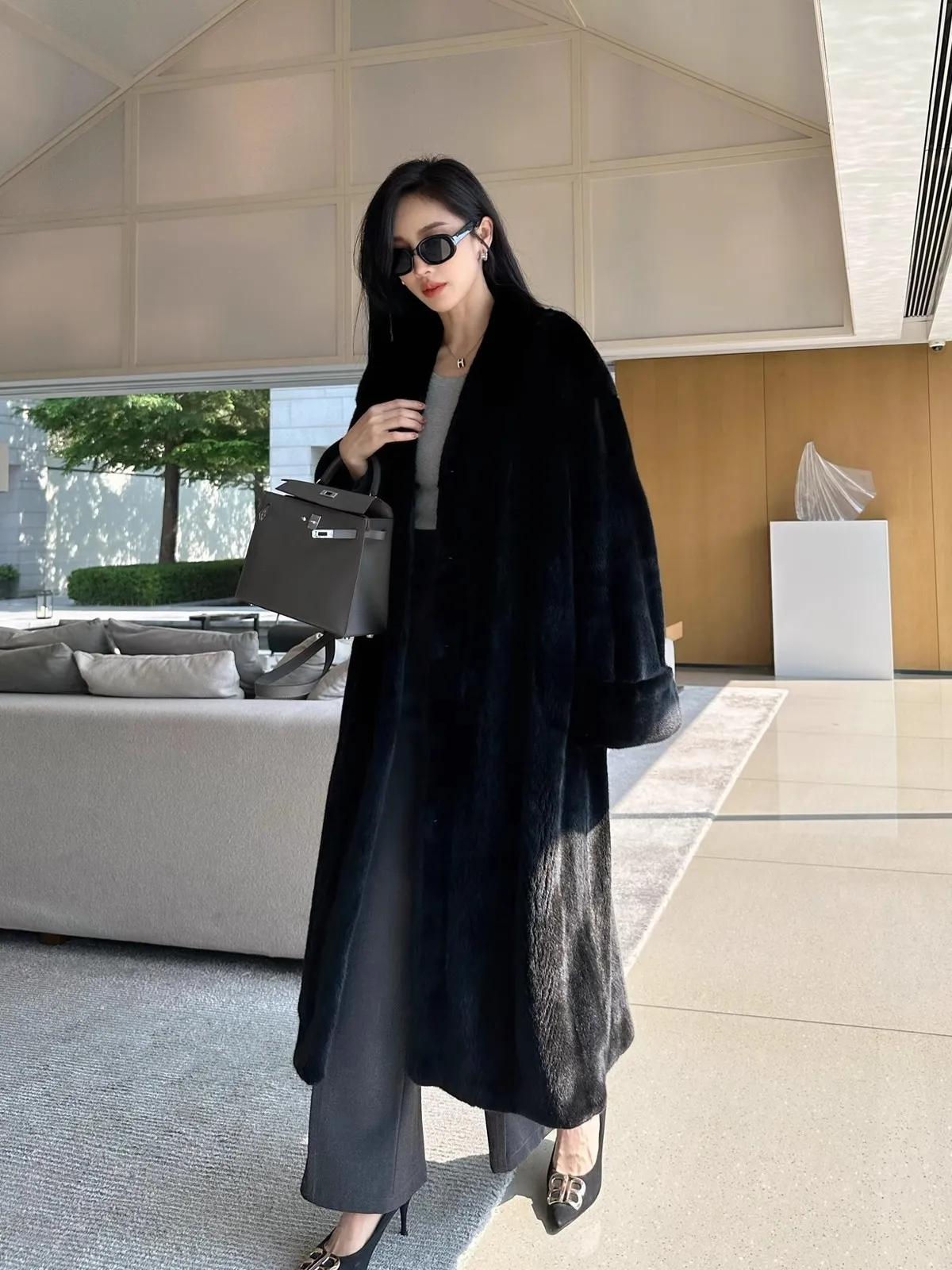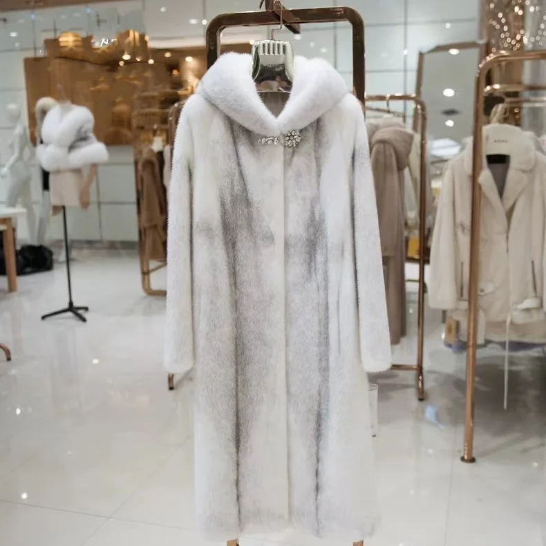 Indulge in luxury with our 100% mink hair velvet coat, featuring a whole mink fur design for women. Stay cozy and stylish with the plus long length and hat included in the 2023 new winter collection.