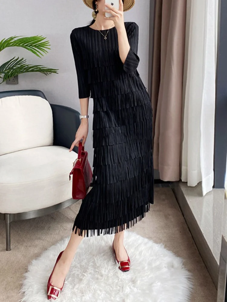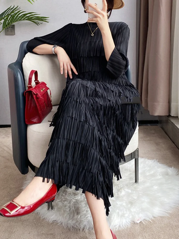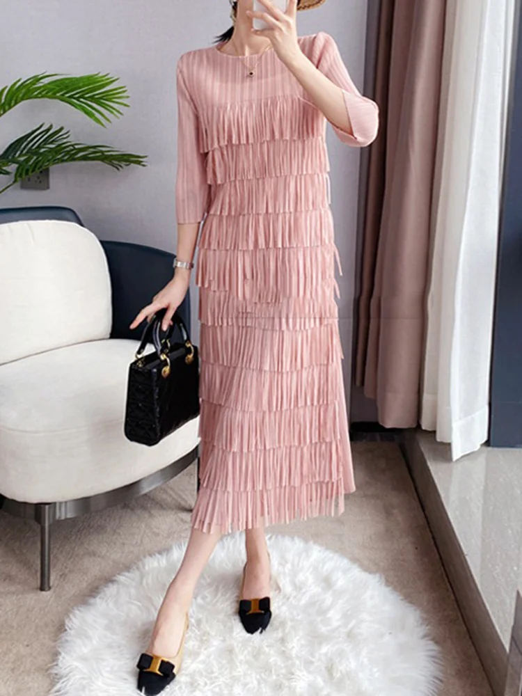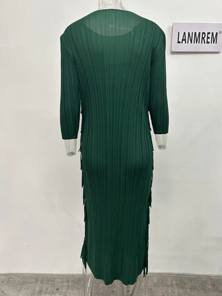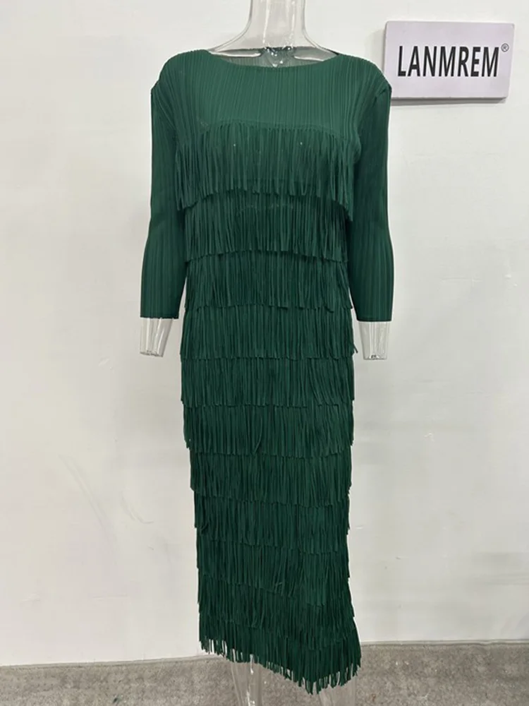 The LANMREM Pleated Tassel Dress is the perfect addition to your spring wardrobe. This luxury dress features a slim fit design with elegant pleats and tassel details. Made with high-quality materials, it is comfortable to wear and perfect for any occasion. The dress is available in one size, with measurements of 118cm in length, 78-130cm in bust, 42cm in sleeve, and 30-45cm in shoulder. It is available in a variety of solid colors to suit your style. With its unique design and superior quality, this dress is a must-have for any fashion-forward woman. Elevate your look and make a statement with the LANMREM Pleated Tassel Dress. Order now and experience the luxury and style it has to offer.