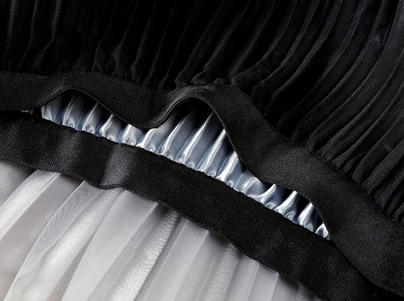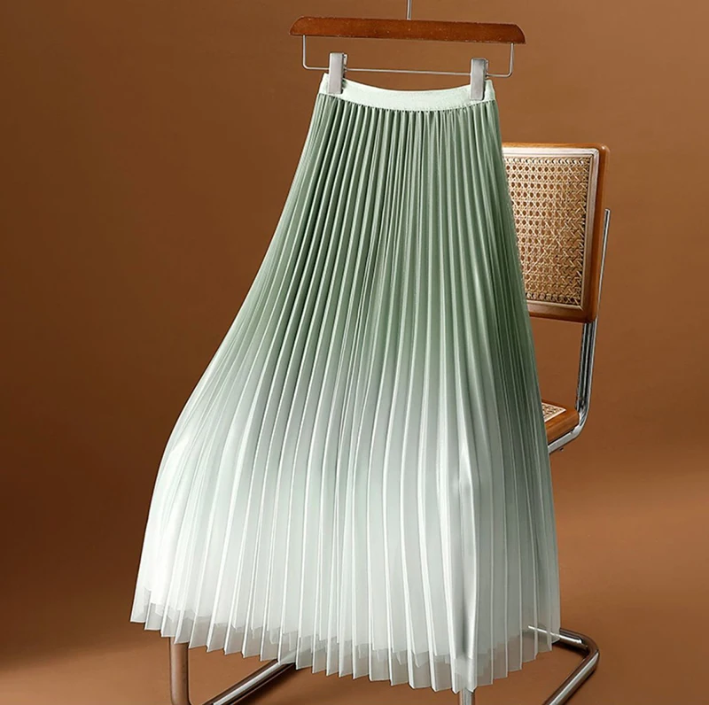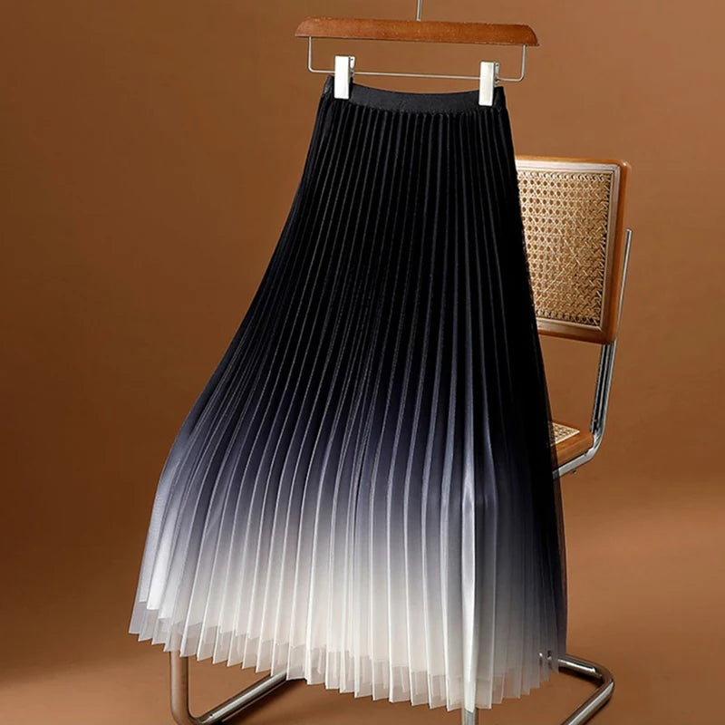 ✨ Why you'll love it - - Flattering high waist design for a sleek silhouette - Elastic waistband for a comfortable fit - Versatile A-line cut that complements all body shapes - Stunning gradient mesh overlay for a modern twist