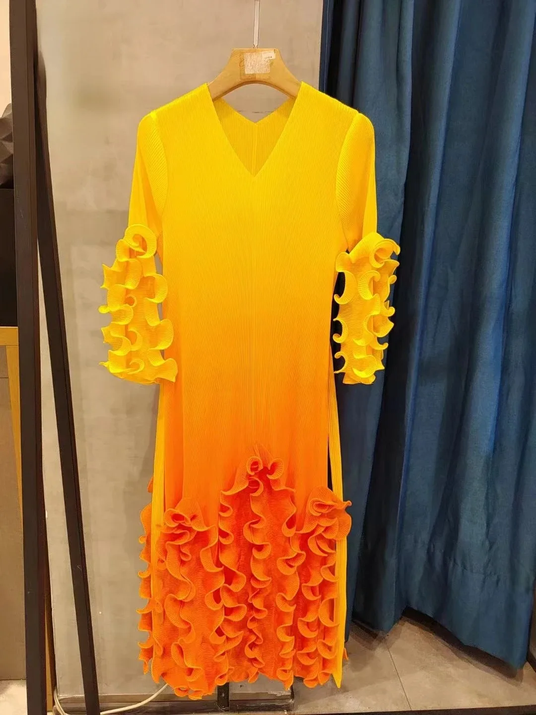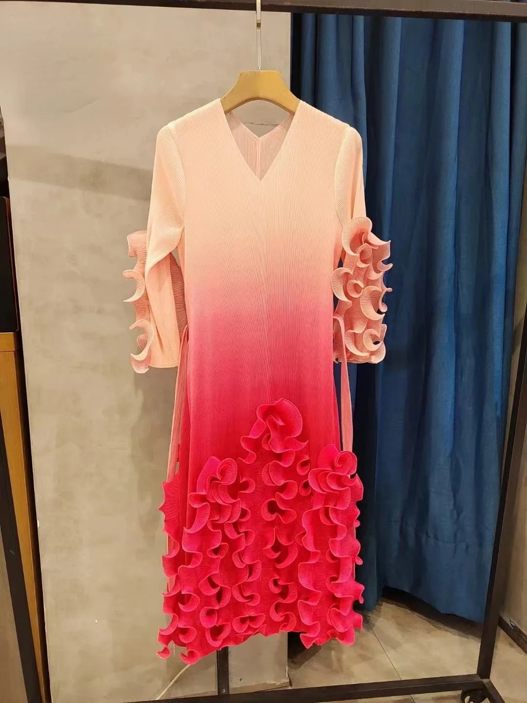 Elevate your look with the Miyake Gradient V-Neck Dress - Party Style, the ultimate summer 2024 fashion statement.
