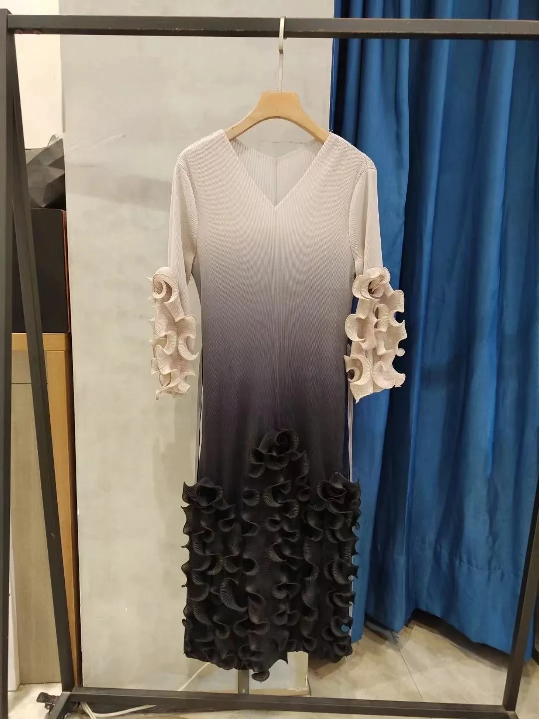🔒 Guarantee: Shop now and experience the premium quality and exclusive design of the Miyake Gradient V-Neck Dress. Limited time offer - get yours today!