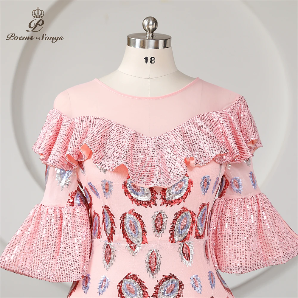🌟 Why you need it - Crafted with top-notch quality, this stunning dress features pink sequins, ruffles, and a sheer neckline for a show-stopping look that will make you stand out at any event.