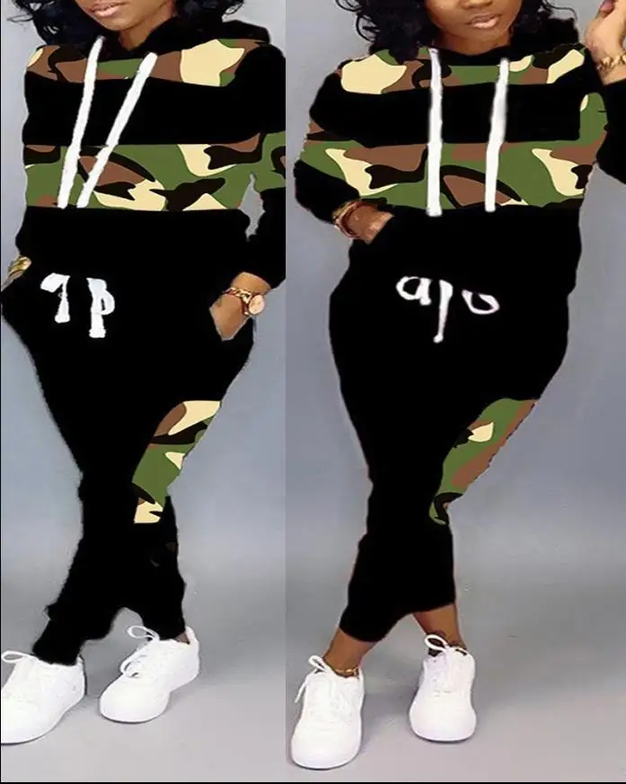 Introducing our new 2 Piece Sets Womens Outfits in plus size, perfect for casual and sporty occasions. Made from high-quality polyester, this set features a trendy camouflage print and a comfortable hooded sweatshirt with long sleeves. The drawstring and pocket details add a touch of style and functionality. This regular fit set is suitable for daily wear and comes in a variety of sizes. It's also great for dropshipping and wholesaler services, with unique styles and the ability to make out-of-stock items available. Don't miss out on this limited time offer and elevate your wardrobe with our premium sweatpants and sweatshirt set.