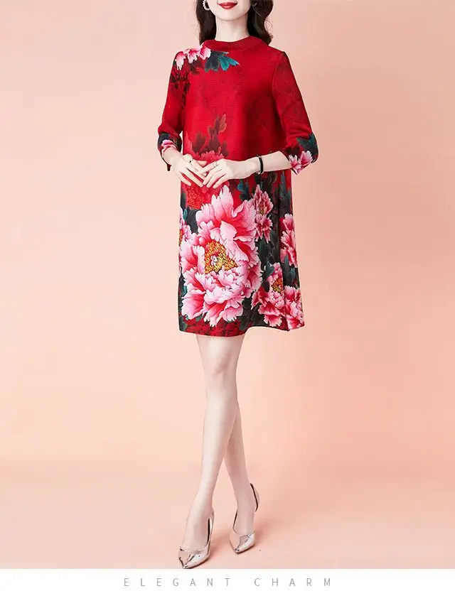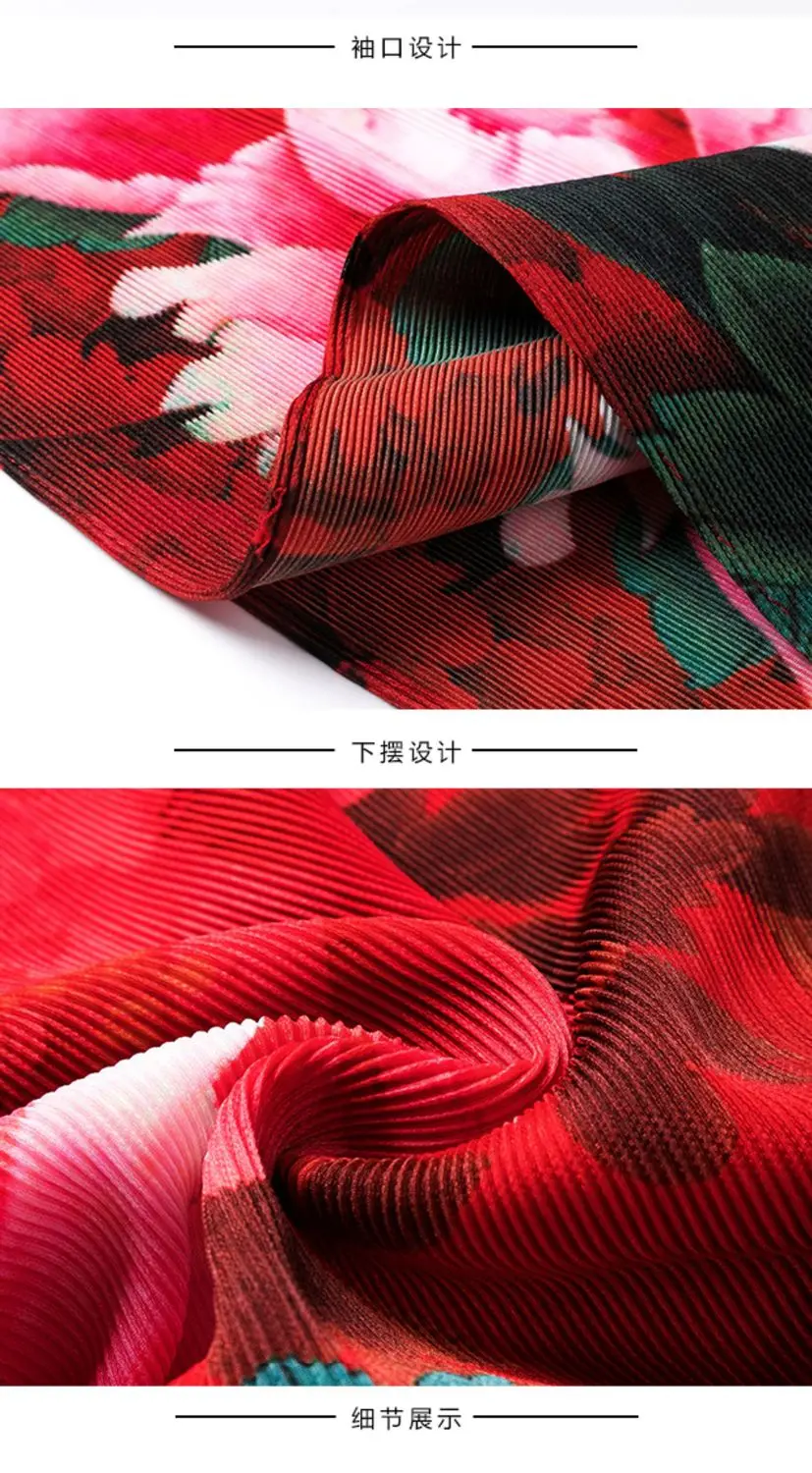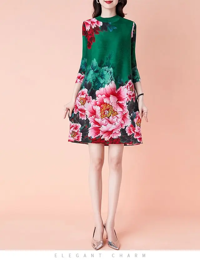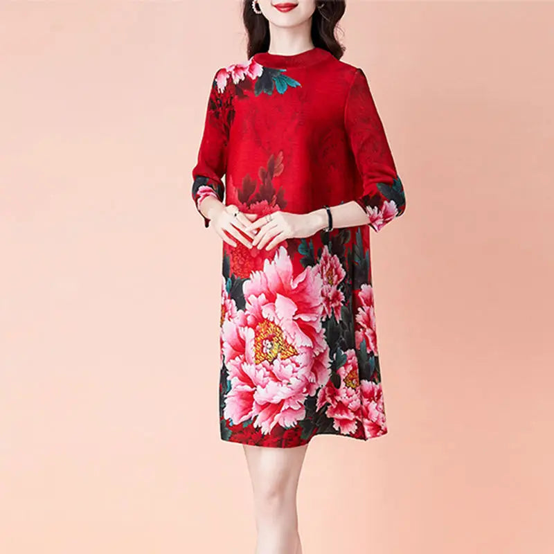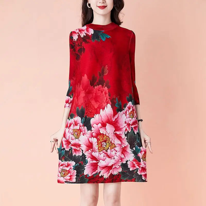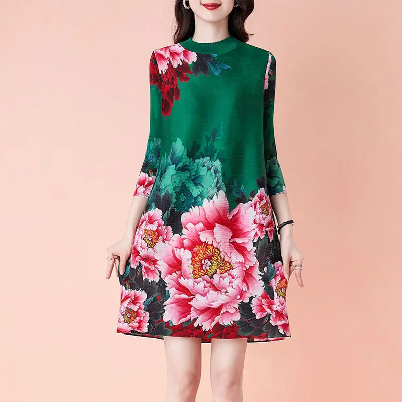 Why you'll love it: - Chic Half High Collar Design for a sophisticated look. - Beautiful Retro Large Flower Print that stands out. - Comfortable 3/4 Sleeves for versatile styling. - Pleated and Loose Fitting for a flattering silhouette. - Ideal for both casual and semi-formal occasions.