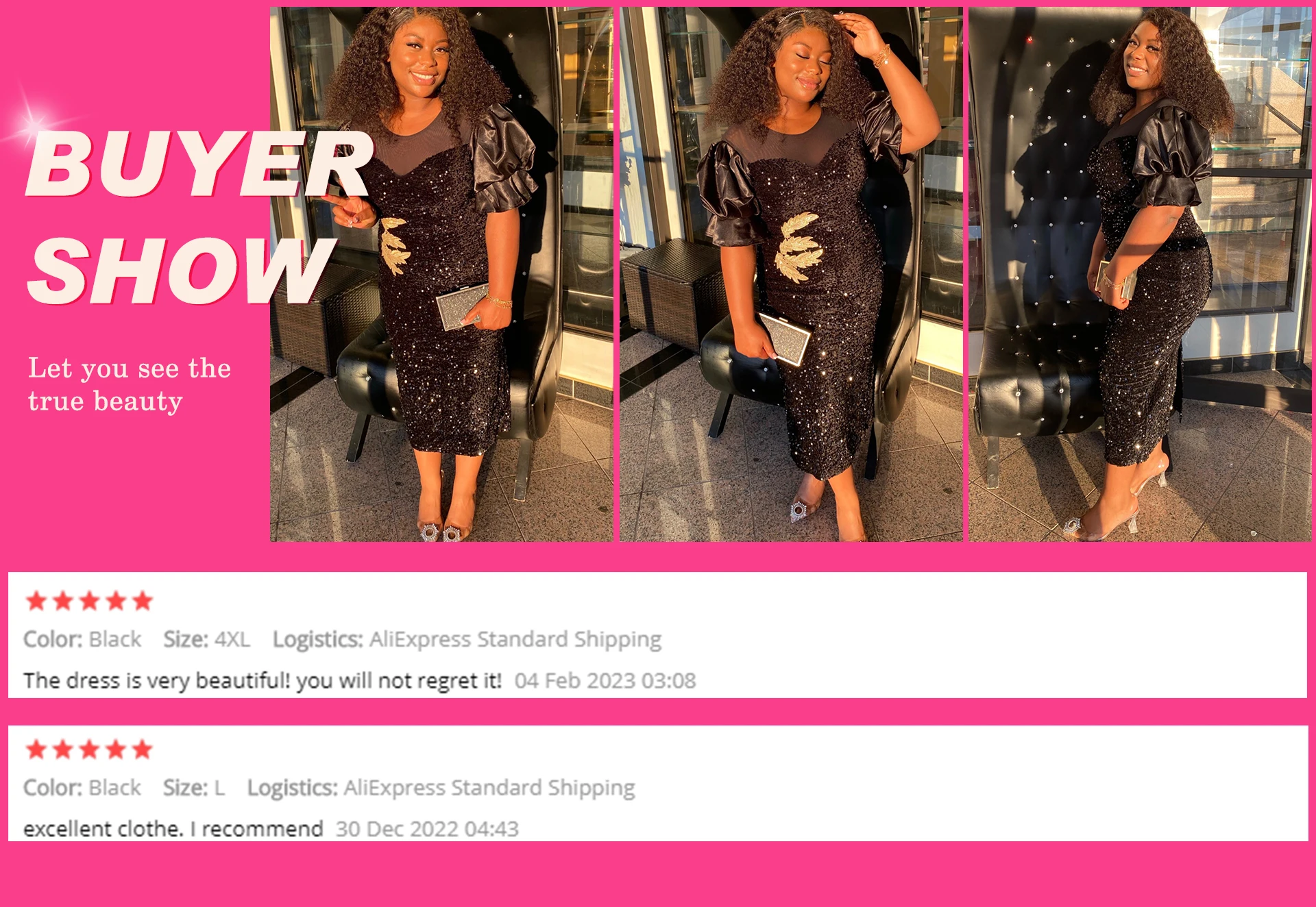 Sequin Black Dresses Velvet Embroidery Chest Wrapped Puff Sleeve Sparkly Dress Classy Ladies Spring Party Celebrity Birthday 4XL