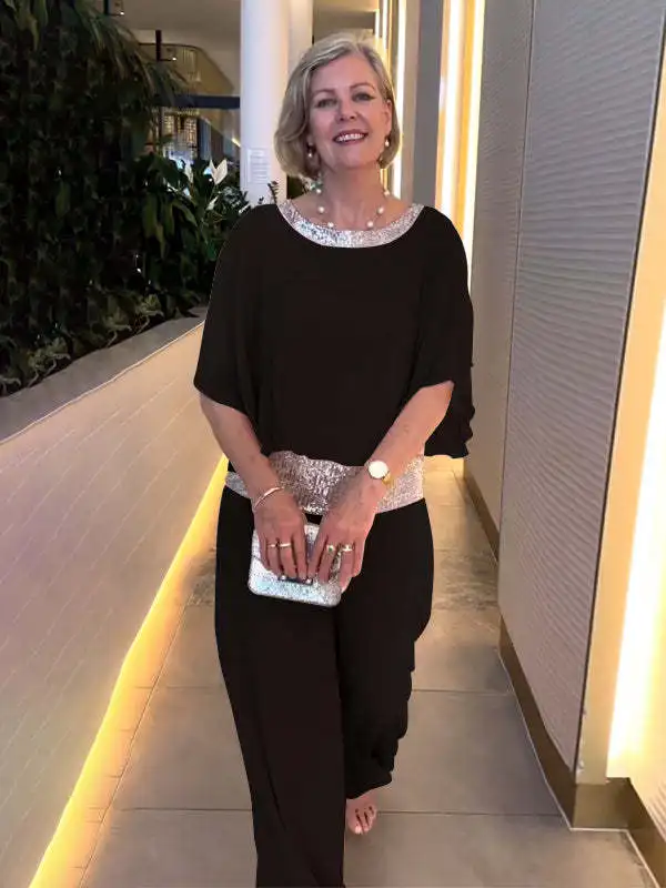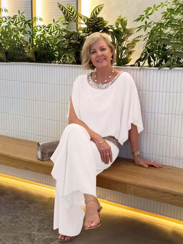 Introducing our latest fashion must-have, the 'Sequin Splicing Chiffon Shirt and Wide Leg Pants Set' for women. This elegant 2-piece suit is perfect for the summer season, with its lightweight chiffon fabric and short bat sleeves. The sequin detailing adds a touch of glamour, making it suitable for both office wear and special occasions. Our carefully crafted size chart ensures a perfect fit for every body type. With its premium quality and limited time availability, this set is a best seller and a must-have for your wardrobe. Don't miss out on this exclusive piece, grab yours now!