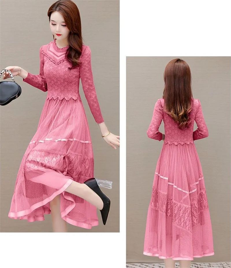 Introducing our latest addition to the 2023 Spring Collection - the Women's Loose Stitching Fake Two-piece Dress. This dress is designed to solve the problem of finding the perfect balance between comfort and style. With its pleated medium length and feminine waist-shrinking silhouette, it flatters all body types and accentuates your curves. The unique stitching creates the illusion of a two-piece, adding a touch of elegance to the dress. Made with premium mesh lace, this dress is perfect for any occasion and is a must-have for any fashion-forward woman. Don't miss out on this limited time exclusive piece that is sure to become a best seller. Upgrade your wardrobe with our Women's Loose Stitching Dress today!