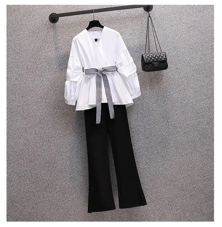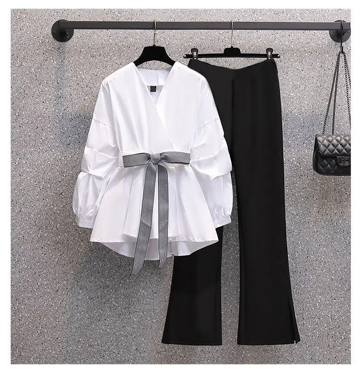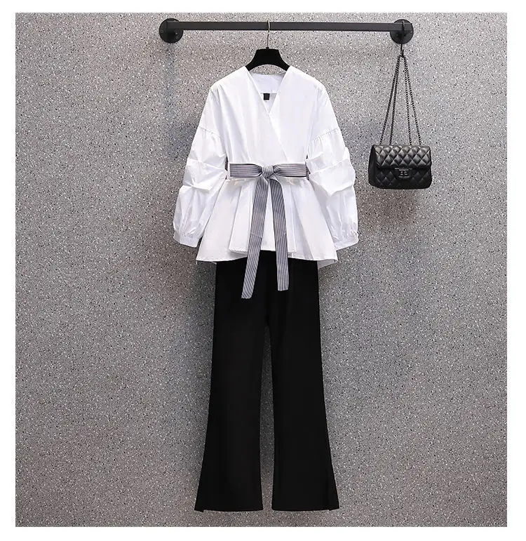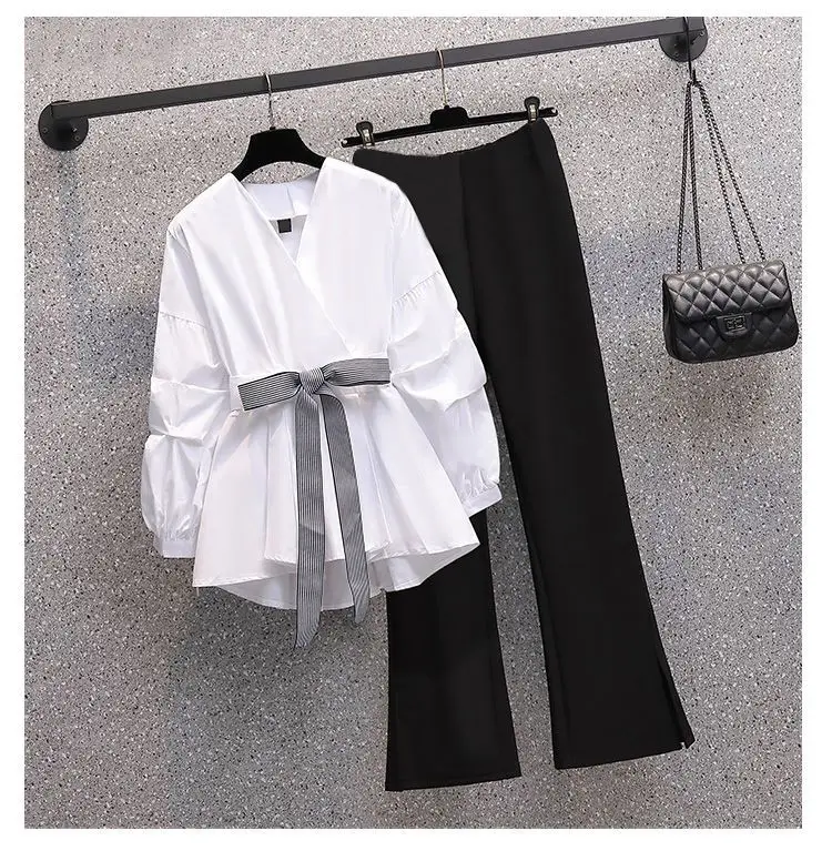 Introducing our new Two-piece Suit for women, perfect for the spring and summer seasons. This set includes a long sleeve V-neck blouse and comfortable pants, both designed with an oversized fit. Made with high-quality materials, our suit offers a perfect fit and solves the problem of finding stylish and comfortable clothing. Customers will gain confidence and style with this premium and exclusive suit, available for a limited time. Don't miss out on our best-selling item, perfect for any occasion. Choose from a variety of sizes to find your perfect fit. Upgrade your wardrobe with our new Two-piece Suit today!