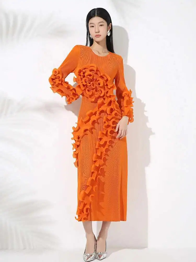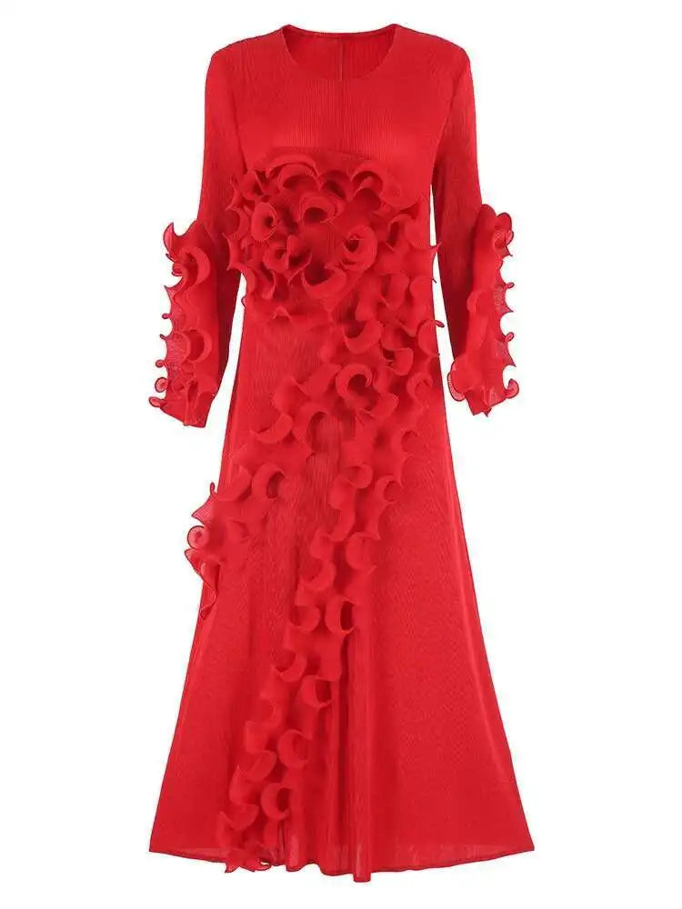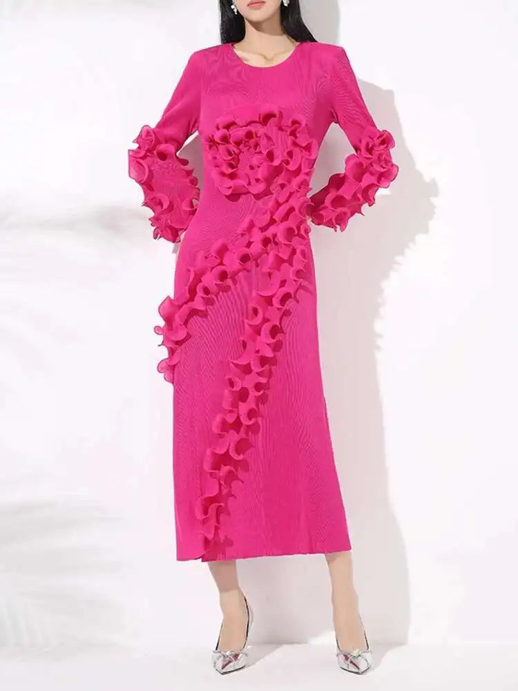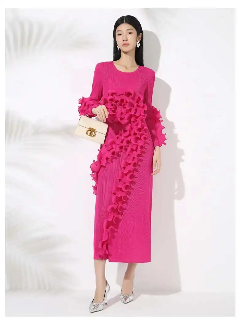 Elevate your spring wardrobe with our Stylish Ruffled Pleated Dress, designed to make you shine at any party.