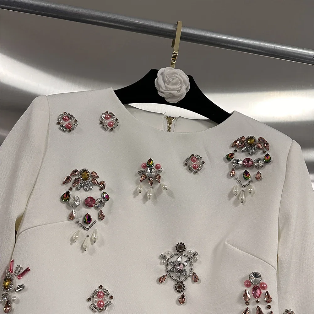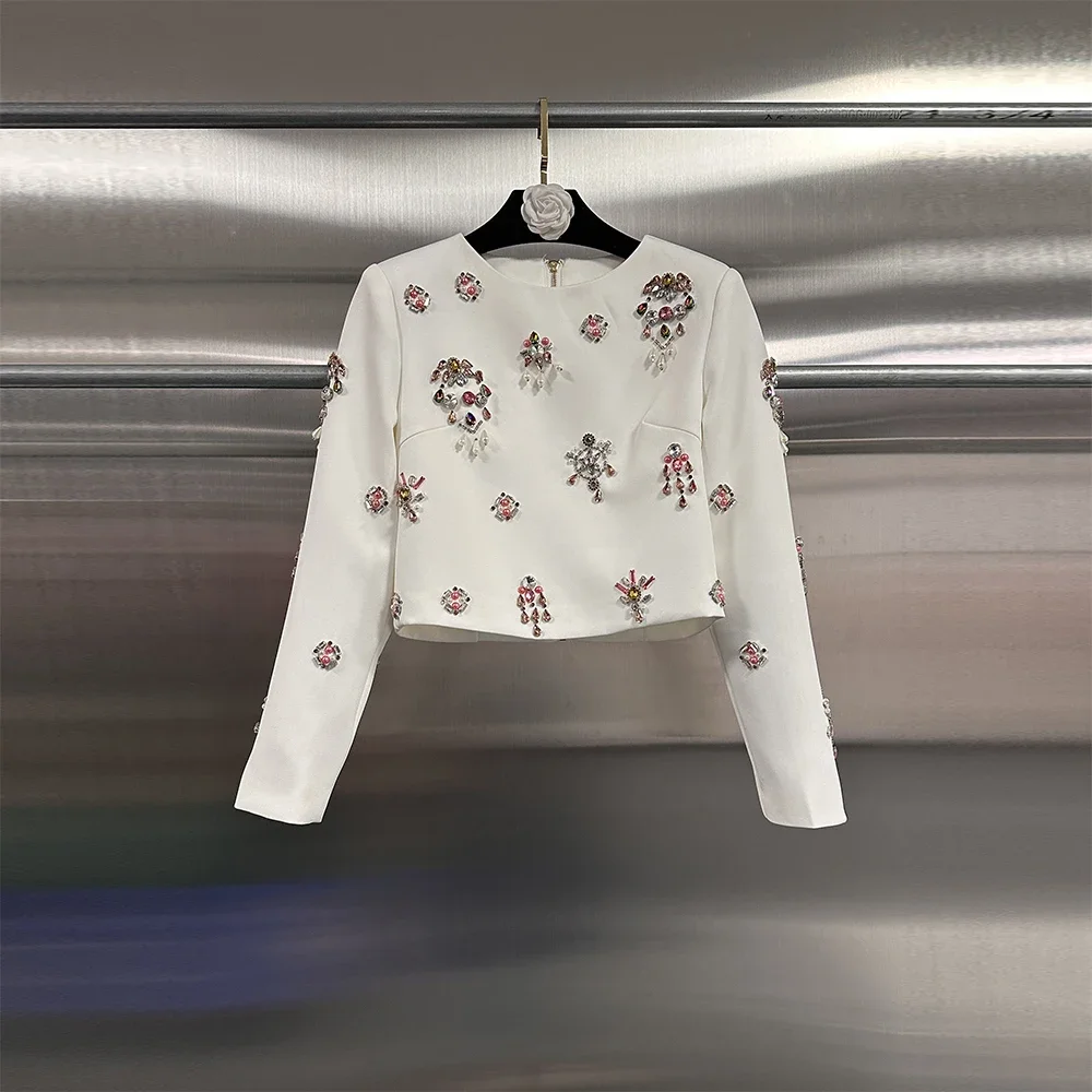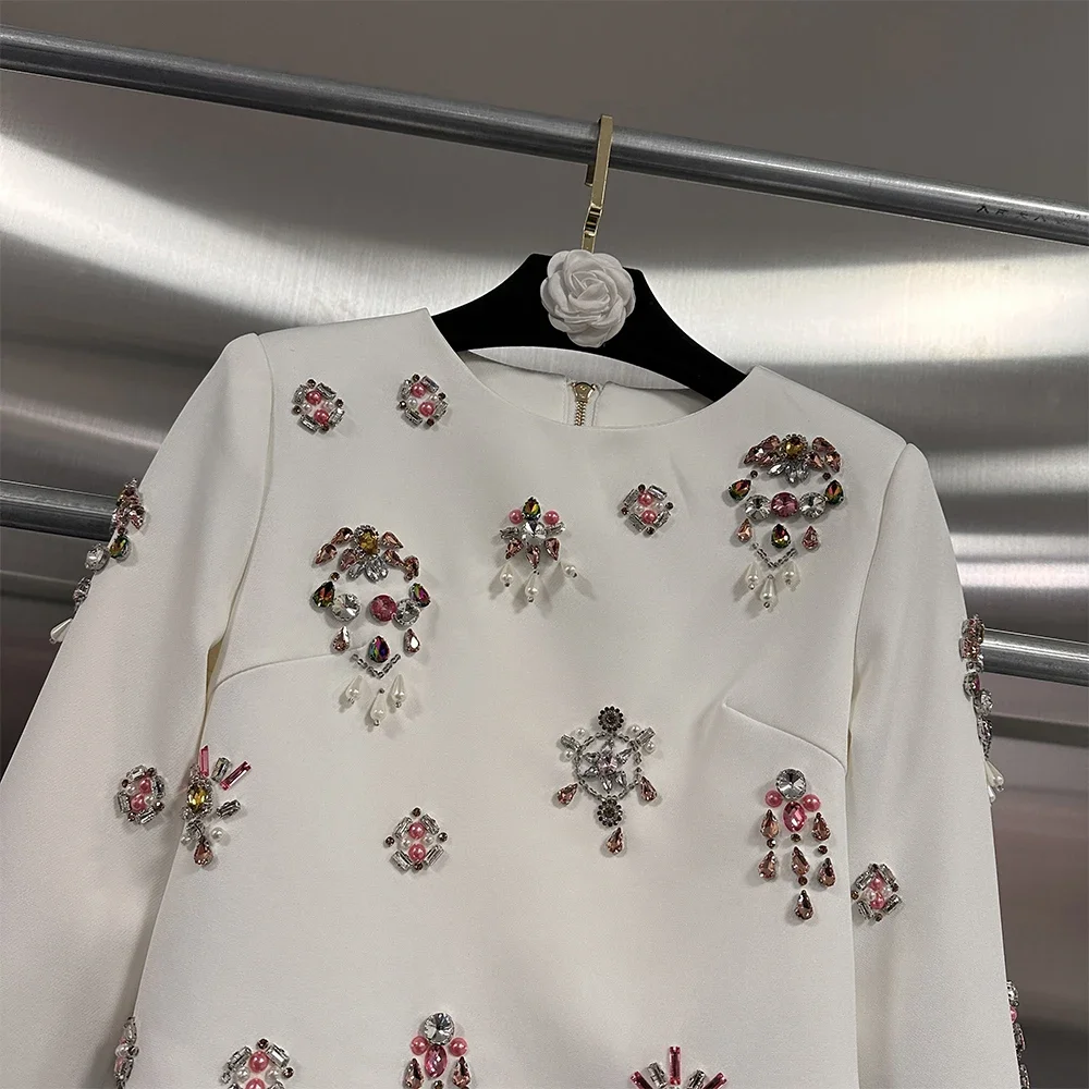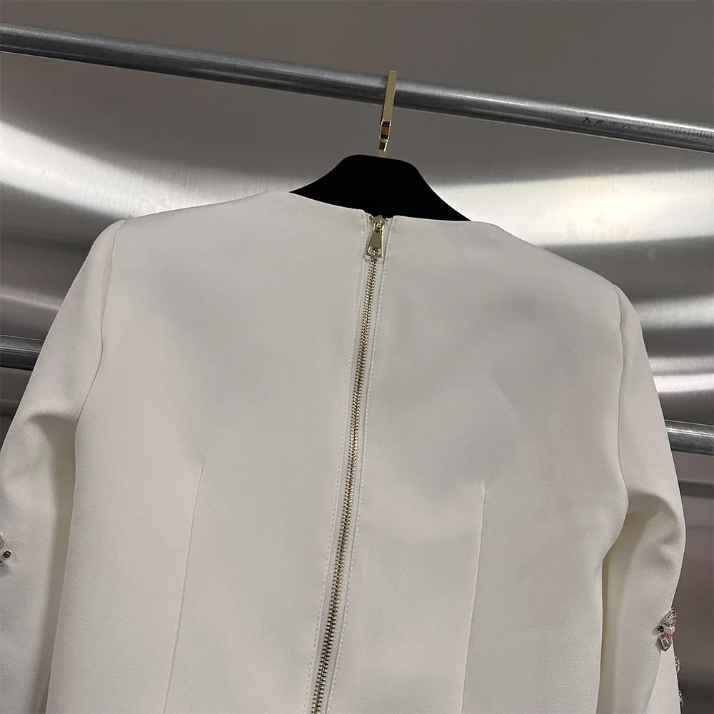 Elevate your style with our TWOTWINSTYLE Solid Slimming Two Piece Sets, featuring a chic round neck and long sleeves with elegant patchwork diamonds. This exclusive set is designed for the modern woman who values comfort and fashion.