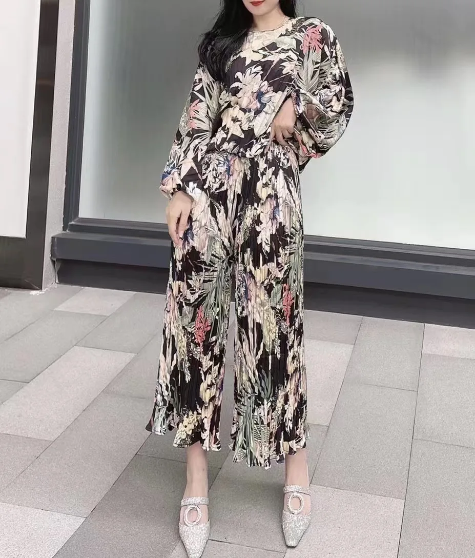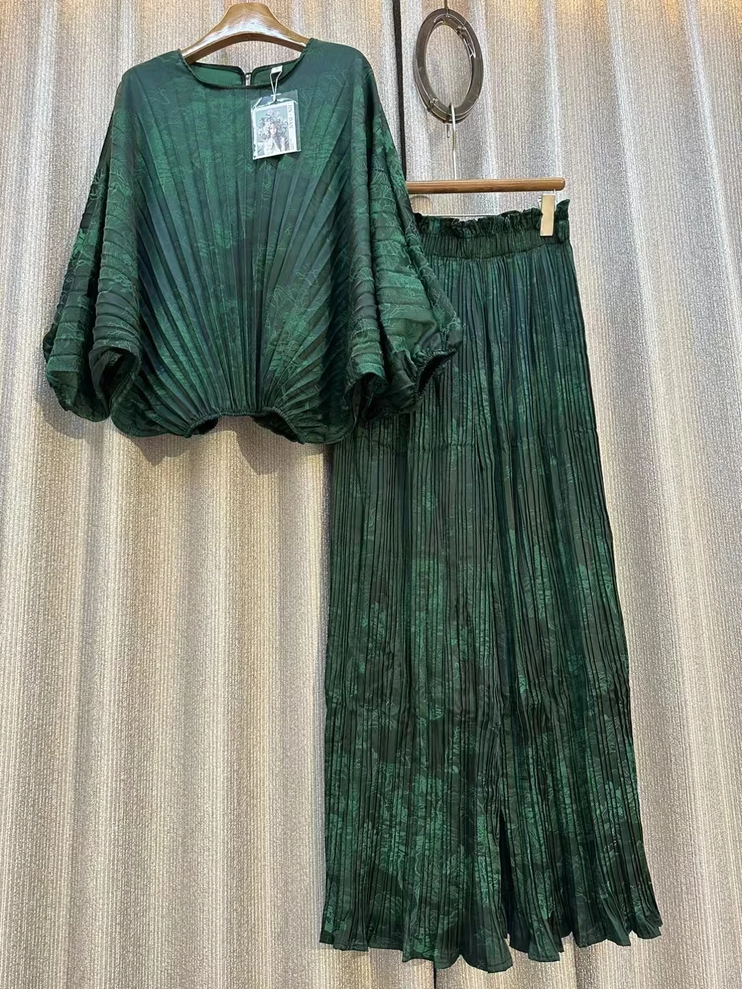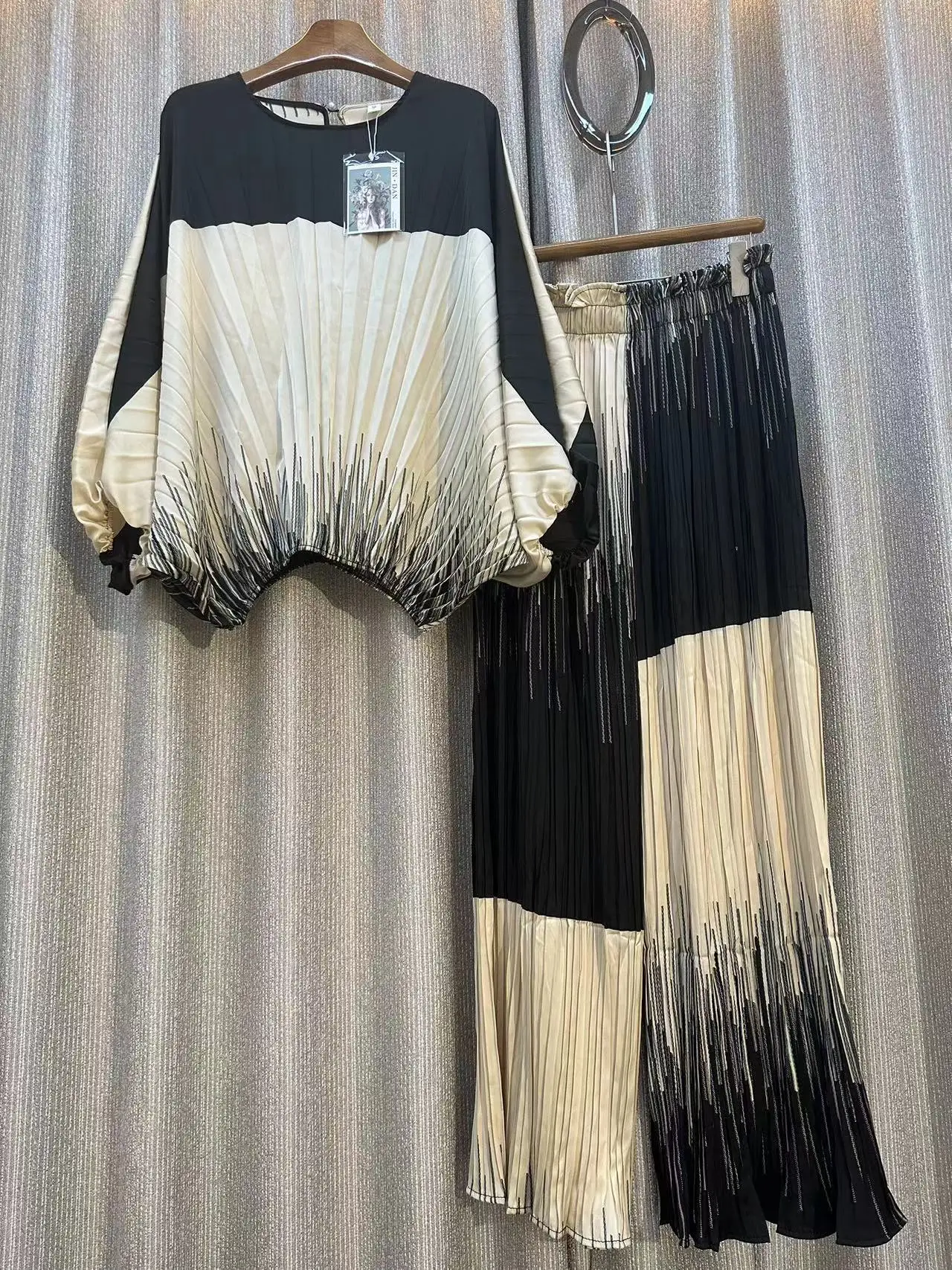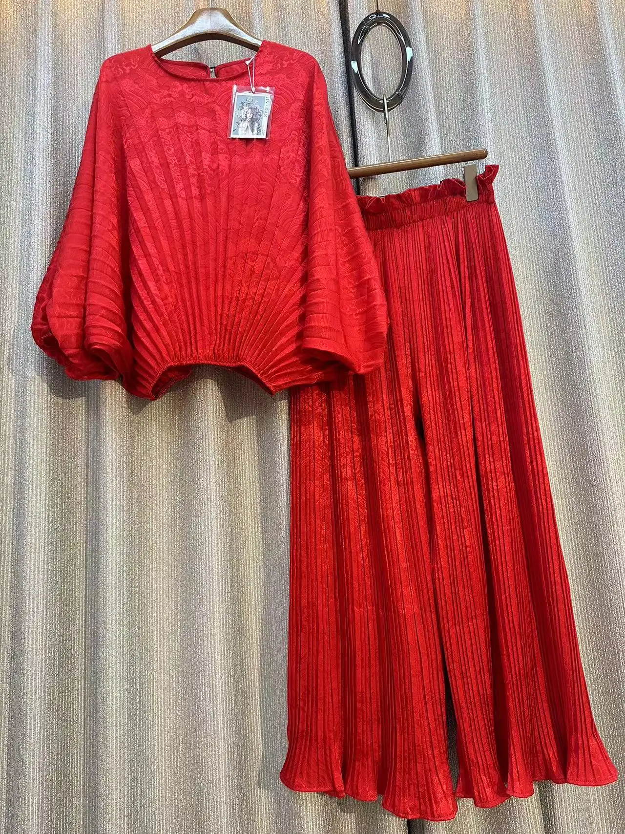 Elevate your autumn wardrobe with our Stylish Women's Batwing Sleeve Shirt and Loose Pleated Wide-leg Pants Two Piece Set. This exclusive outfit combines comfort and elegance for the perfect fit in any casual setting.