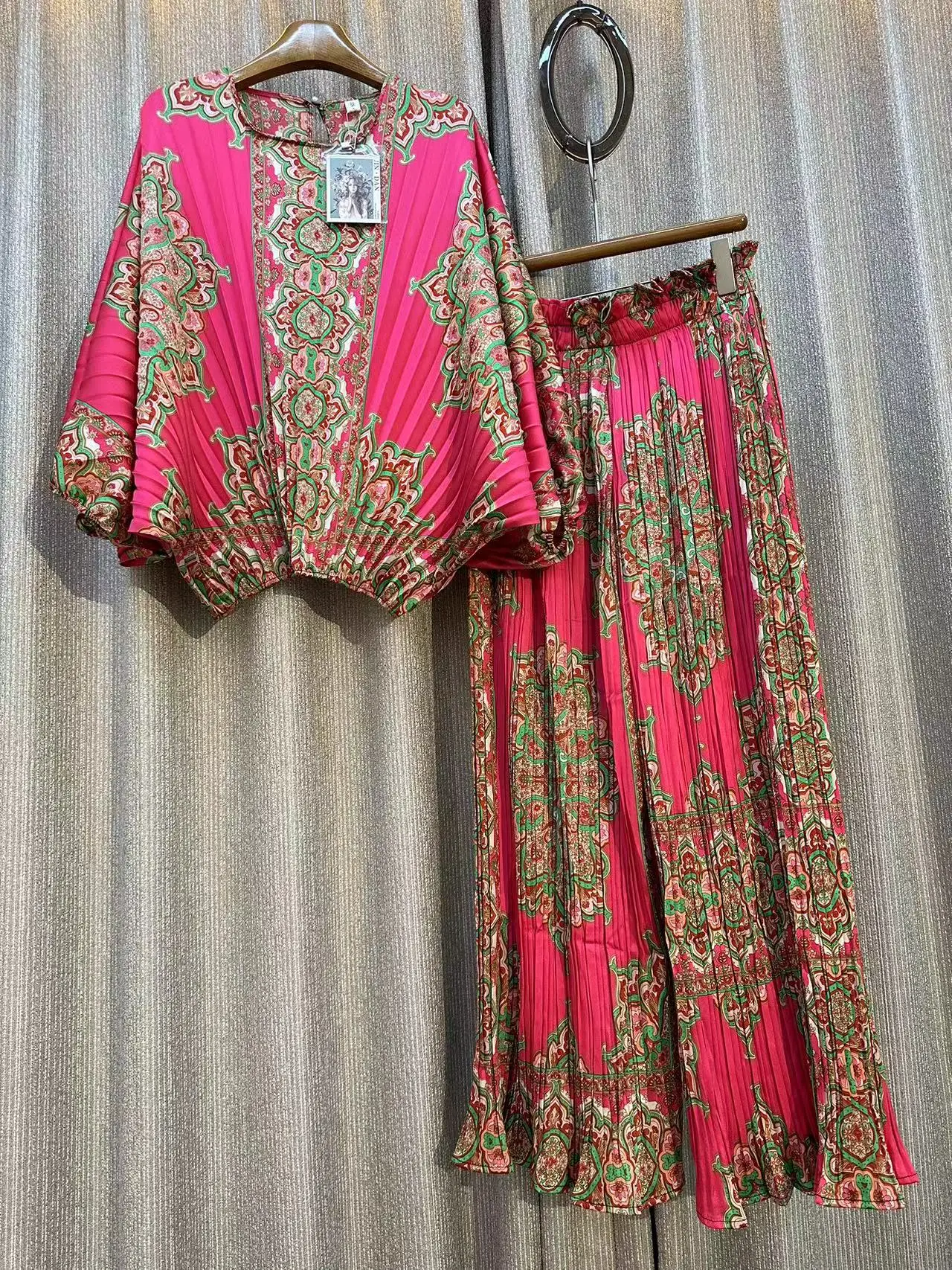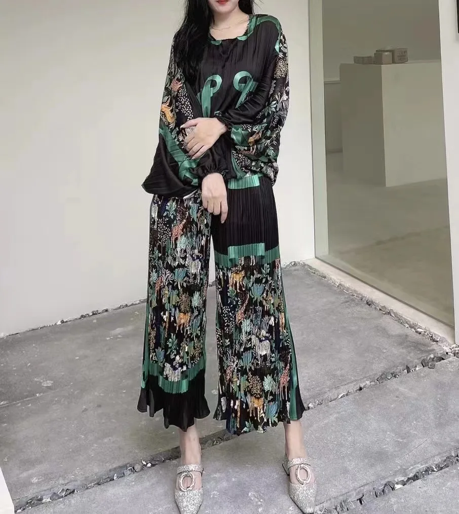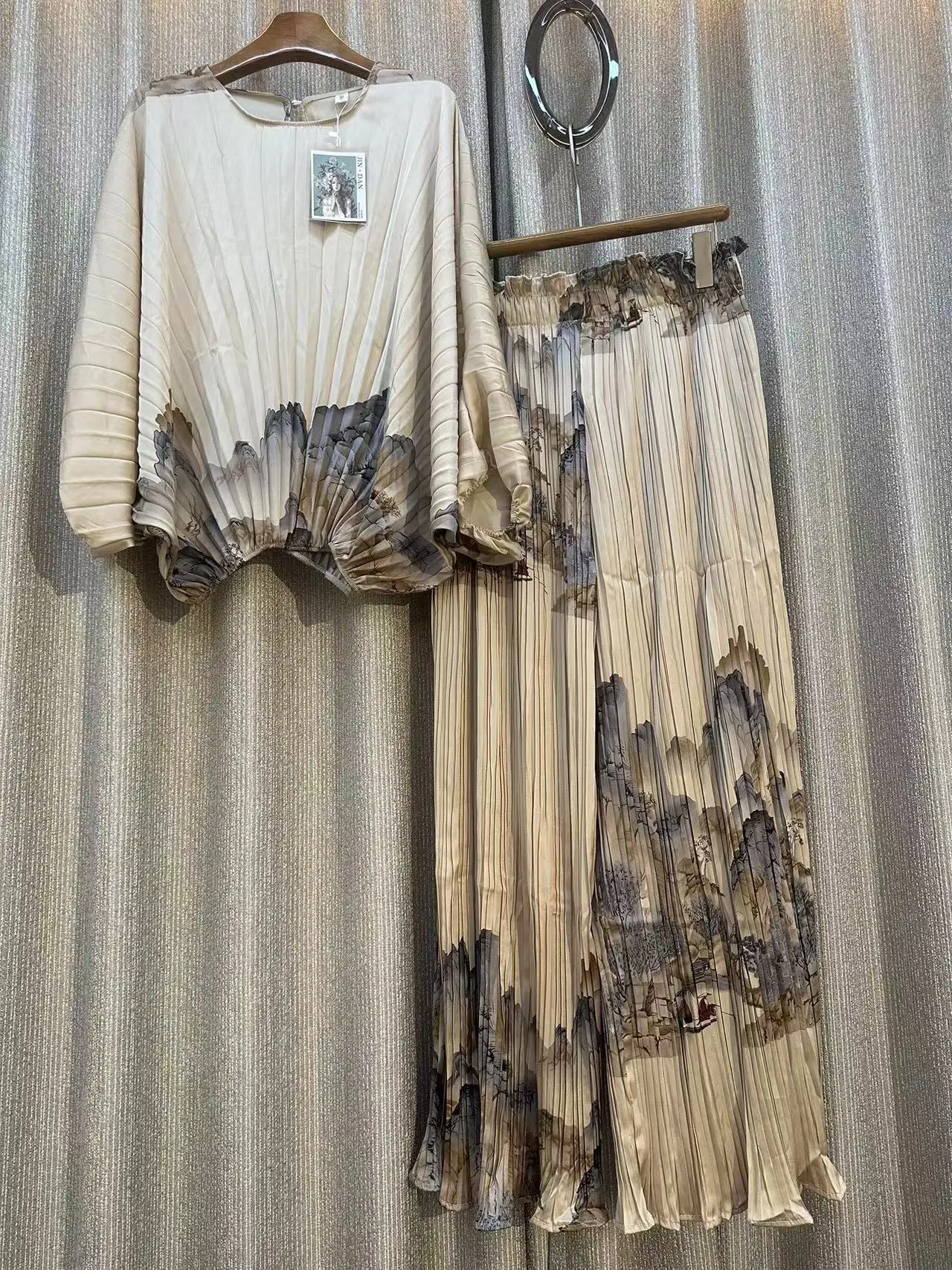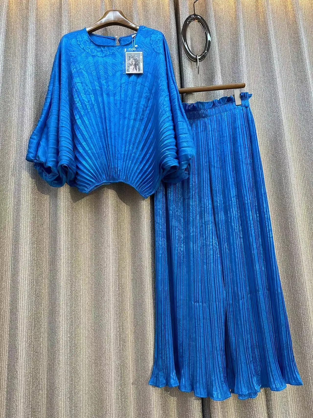 Elevate your autumn wardrobe with our Stylish Women's Batwing Sleeve Shirt and Loose Pleated Wide-leg Pants Two Piece Set. This exclusive outfit combines comfort and elegance for the perfect fit in any casual setting.