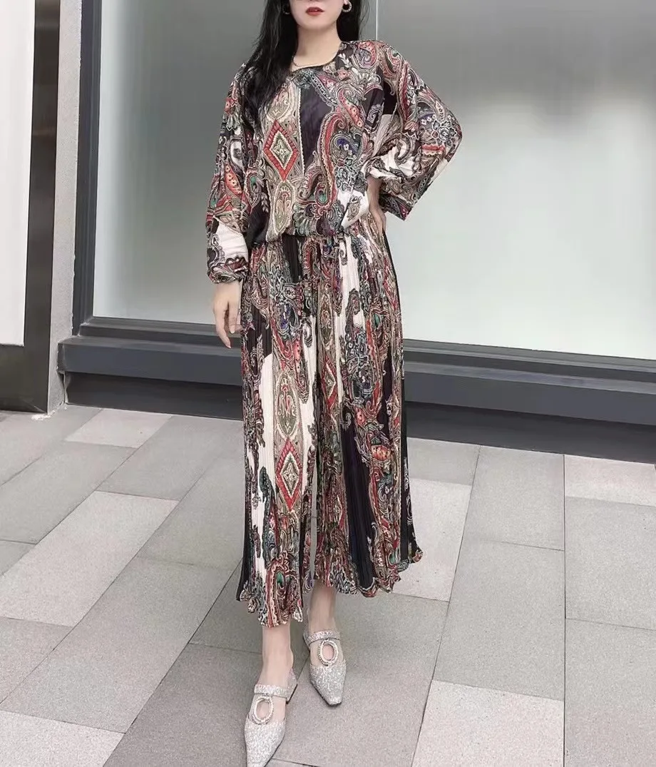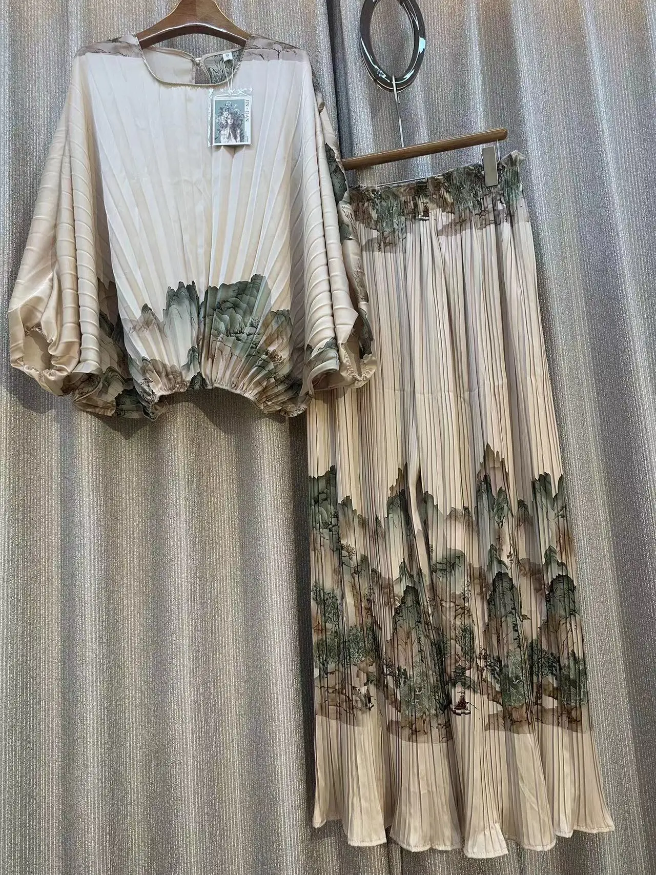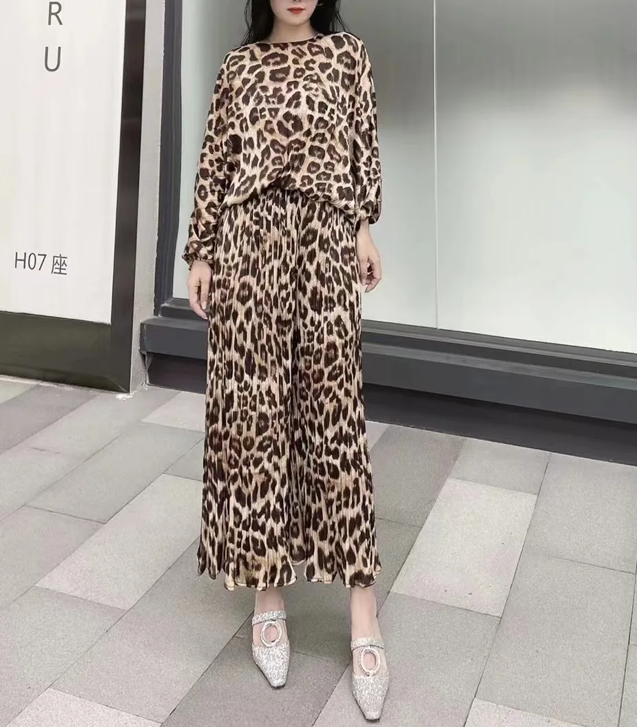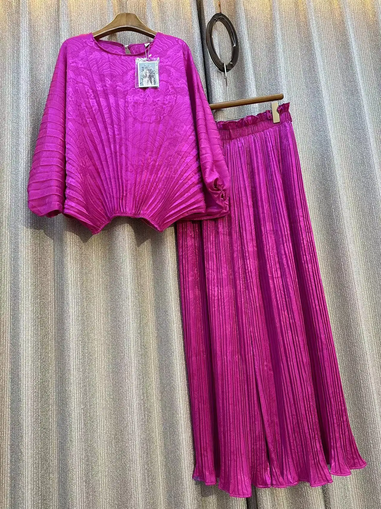 Elevate your autumn wardrobe with our Stylish Women's Batwing Sleeve Shirt and Loose Pleated Wide-leg Pants Two Piece Set. This exclusive outfit combines comfort and elegance for the perfect fit in any casual setting.