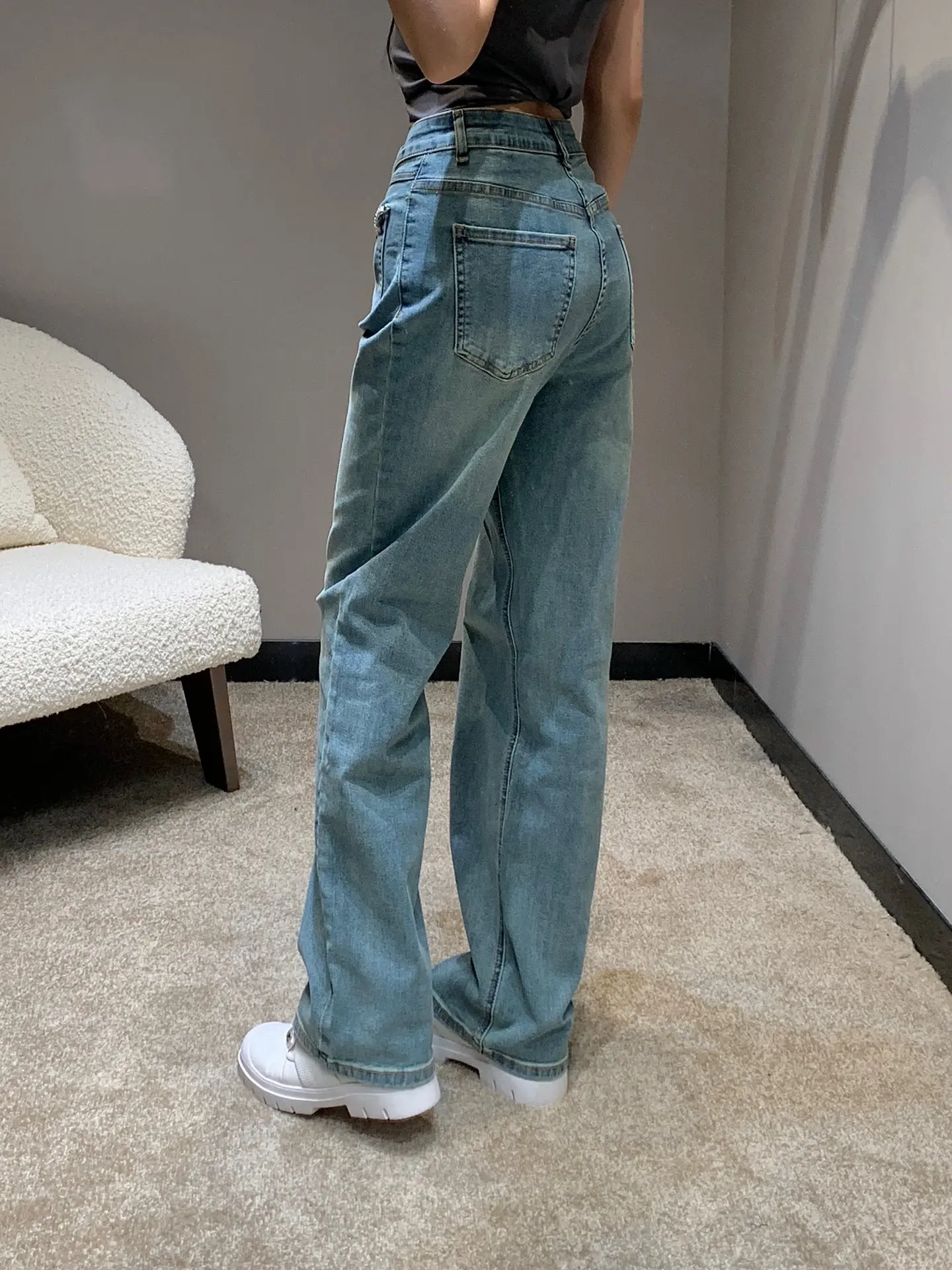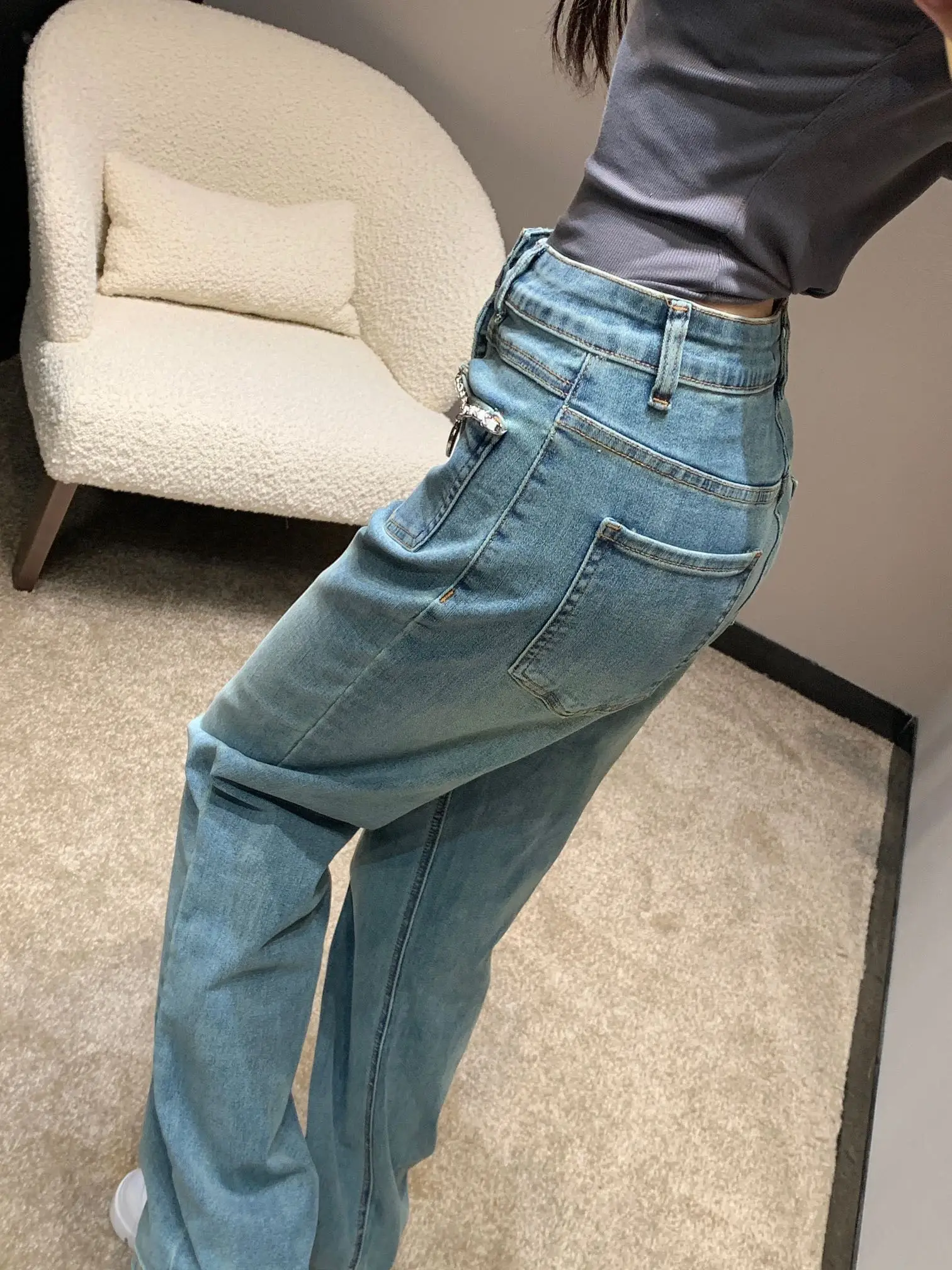 Introducing our latest arrival: the 24 Early Spring New Y2K Hand-Stitched Metal Chain Love Diamond Letters Micro-Stretch Straight Jeans for women. These jeans are the perfect blend of style and comfort, making them a must-have for every fashion-forward woman. Crafted with premium quality materials, these jeans are designed to solve the problem of finding the perfect fit. The hand-stitched metal chain and love diamond letters add an exclusive touch, making these jeans a limited-time best seller. So why settle for ordinary jeans when you can elevate your style with our Y2K jeans? Grab yours now and be on the go in style!