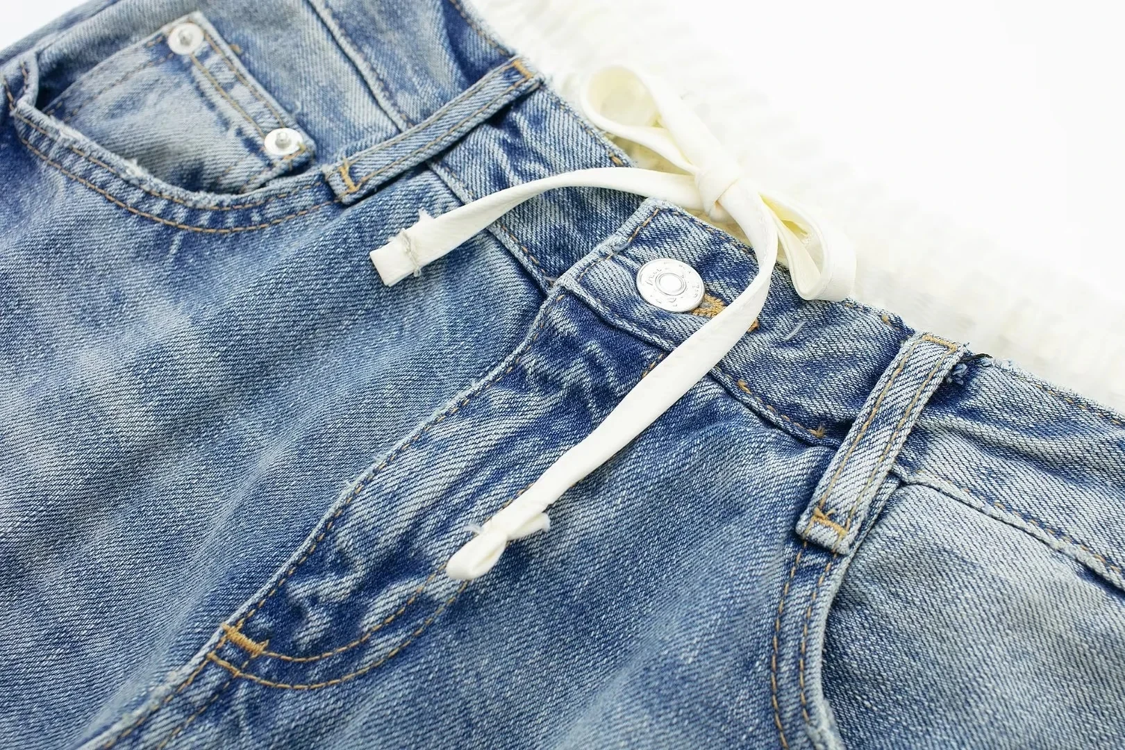 Introducing our premium TRAFZA Women Patchwork Denim Pants - the ultimate solution for all your fashion needs! These chic jeans feature a stylish lace-up design and a convenient zipper fly, making them the perfect fit for any occasion. Crafted with the highest quality materials, these pants are a best seller and a must-have for any fashion-forward woman. Our exclusive 2024 collection is designed to elevate your streetwear game and add a touch of sophistication to your wardrobe. Don't miss out on this limited time offer and grab your pair of TRAFZA pants now!