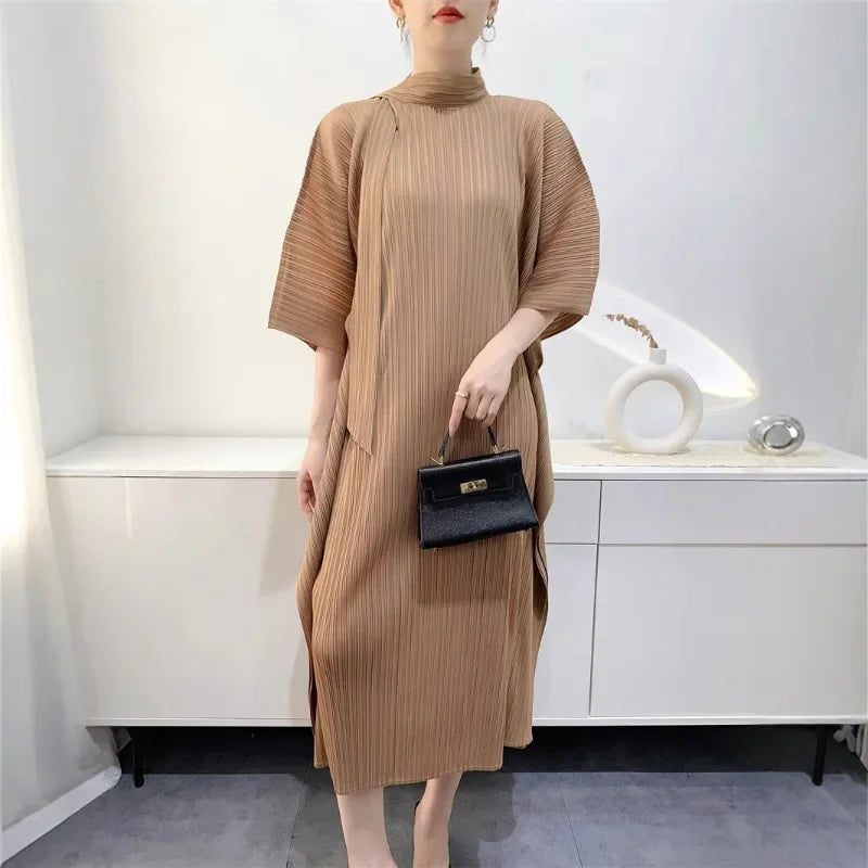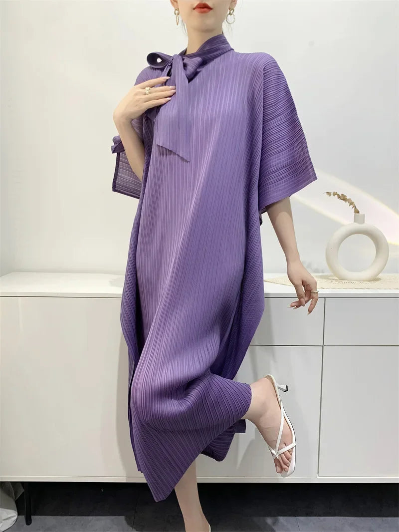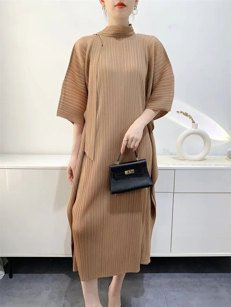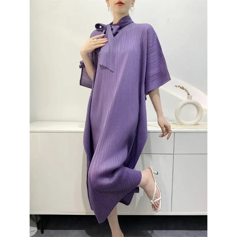 Discover elegance with our Versatile Plus Size Miyake Pleated Scarf Collar Dress designed for the modern woman. This stylish and comfortable dress is perfect for summer outings and special occasions.