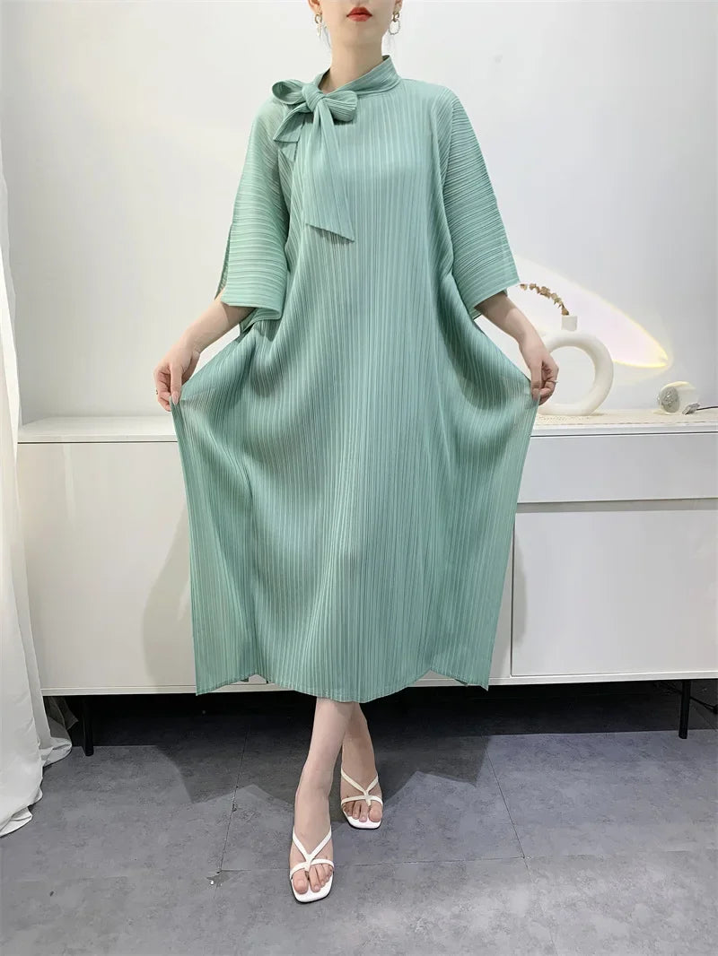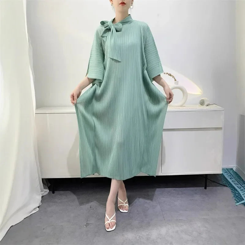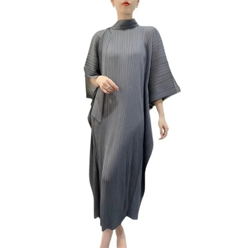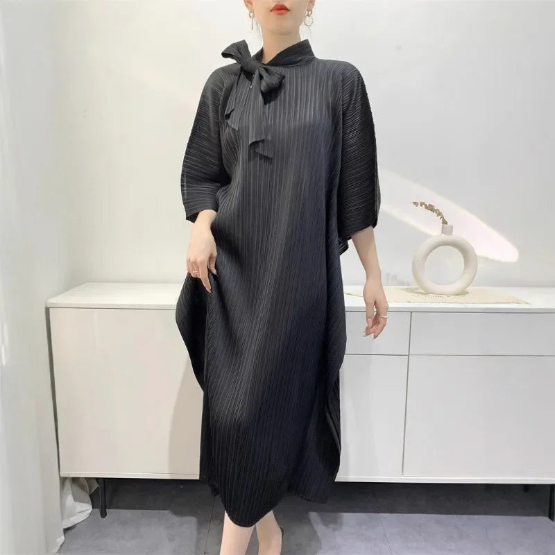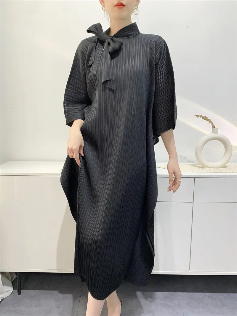 Discover elegance with our Versatile Plus Size Miyake Pleated Scarf Collar Dress designed for the modern woman. This stylish and comfortable dress is perfect for summer outings and special occasions.