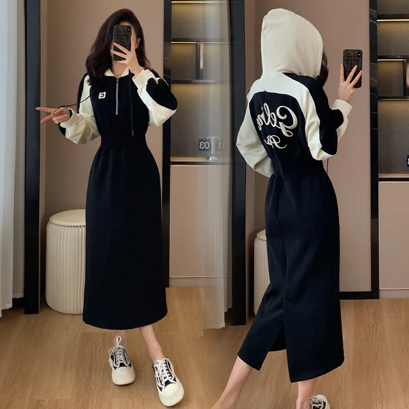 Korean Half-zipper Dress: Fall Waist Thin Leisure" - High Quality, Asian Sizes, Variety of Colors!