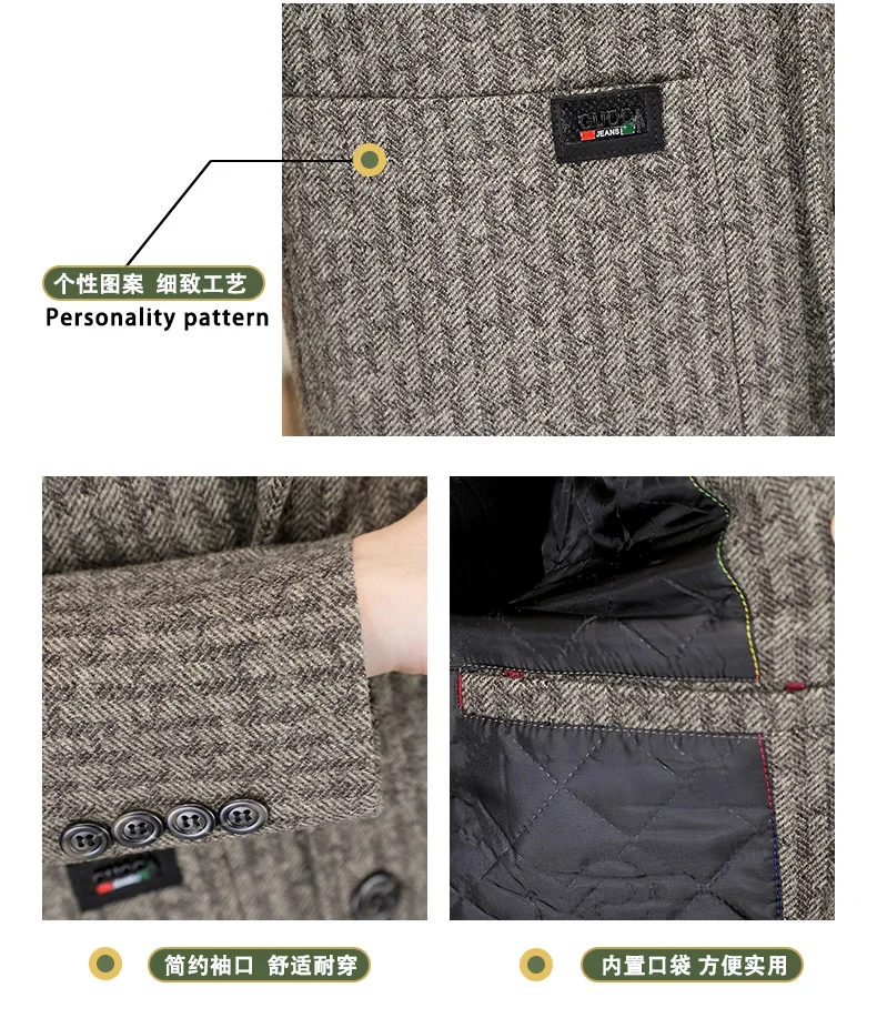Introducing our latest addition to the fashion world - the 2024 New Fashion Wool Coat. Made with high-quality wool and lined with soft cotton, this coat is designed to keep you warm and comfortable during the autumn and winter seasons. Its handsome design and thick woollen material make it perfect for both business and casual occasions. The suit collar adds a touch of sophistication to your outfit, making you stand out in any crowd. With its premium and high-end look, this coat is a must-have for any fashion-forward individual. Don't miss out on this limited time offer and upgrade your wardrobe with our best-selling wool coat today!