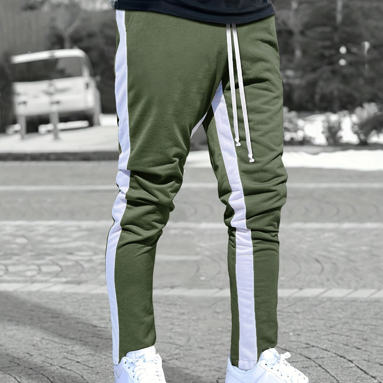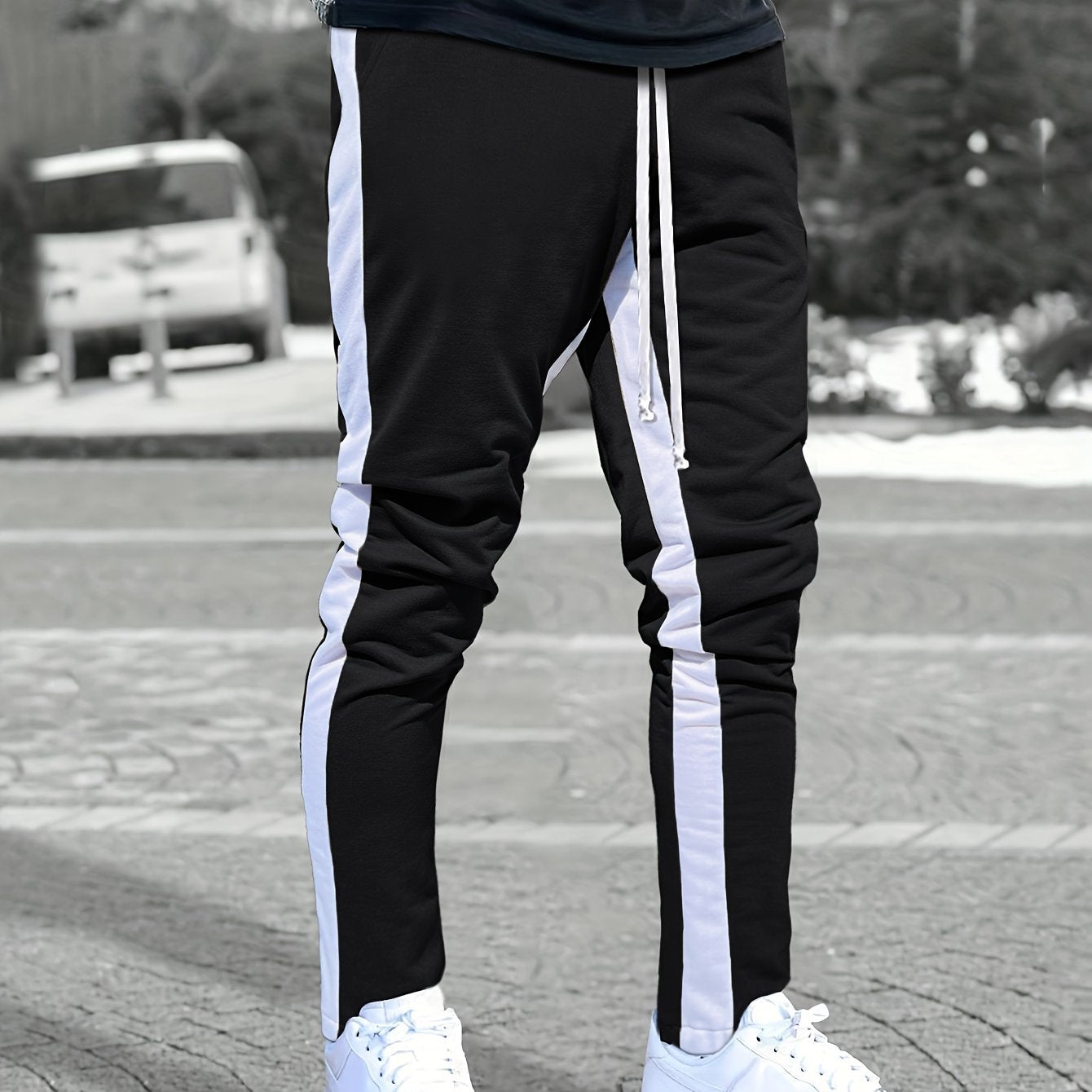 Chic Side-Striped Joggers, Men's Casual Waist Drawstring Sports Pants Sweatpants