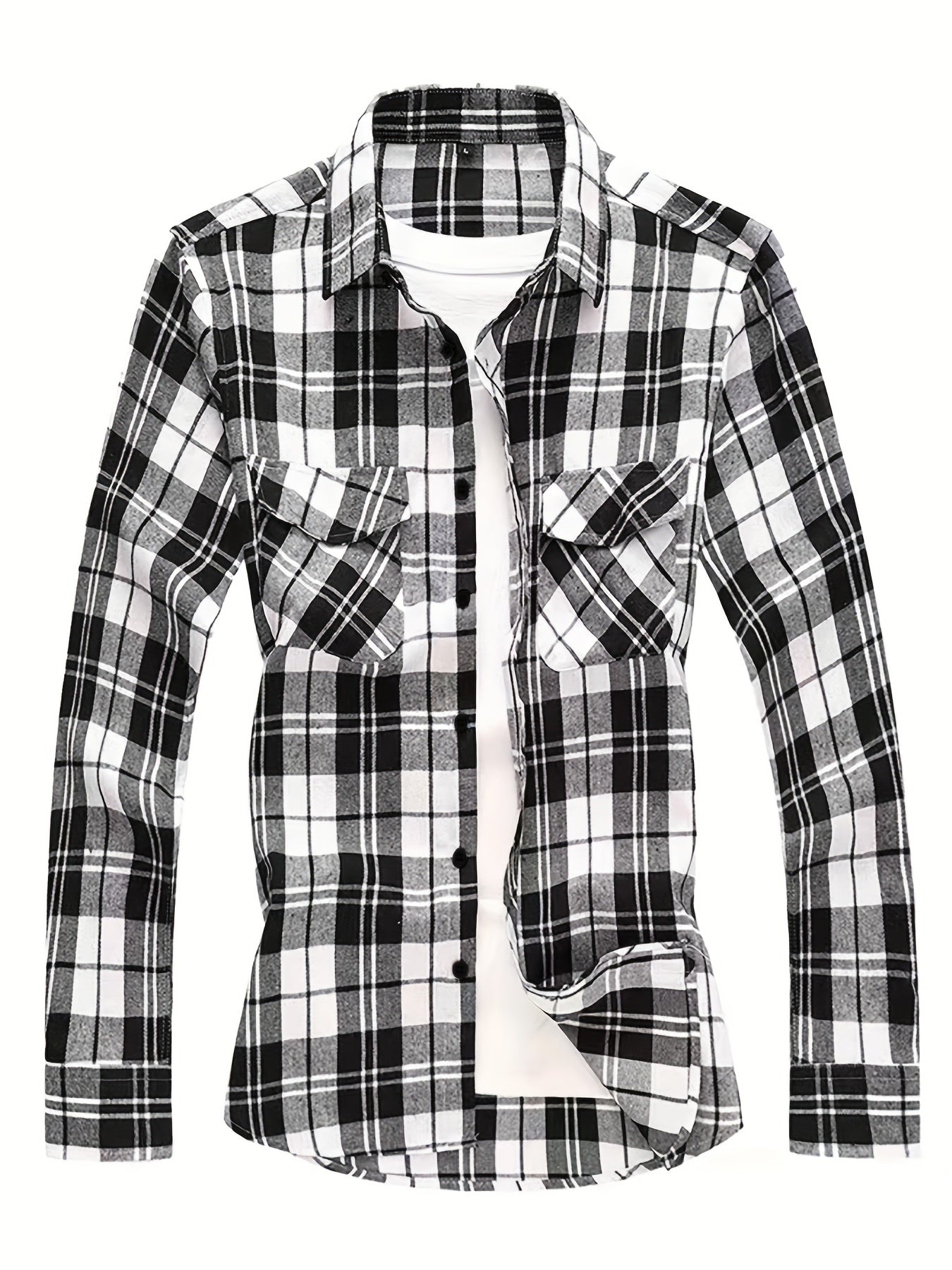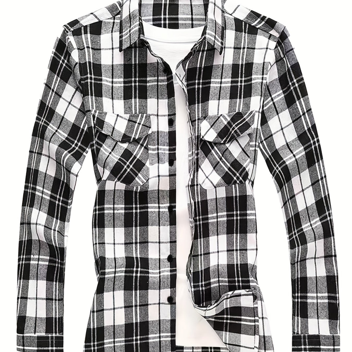 Classic Design Plaid Print Men's Casual Button Up Long Sleeve Shirt, Men's Clothes For Spring Summer Autumn, Tops For Men