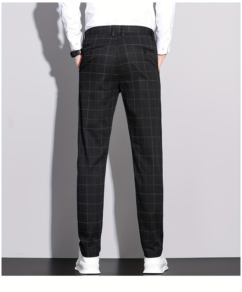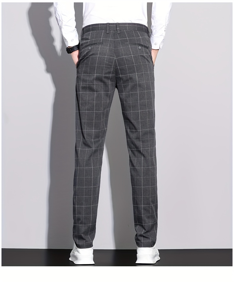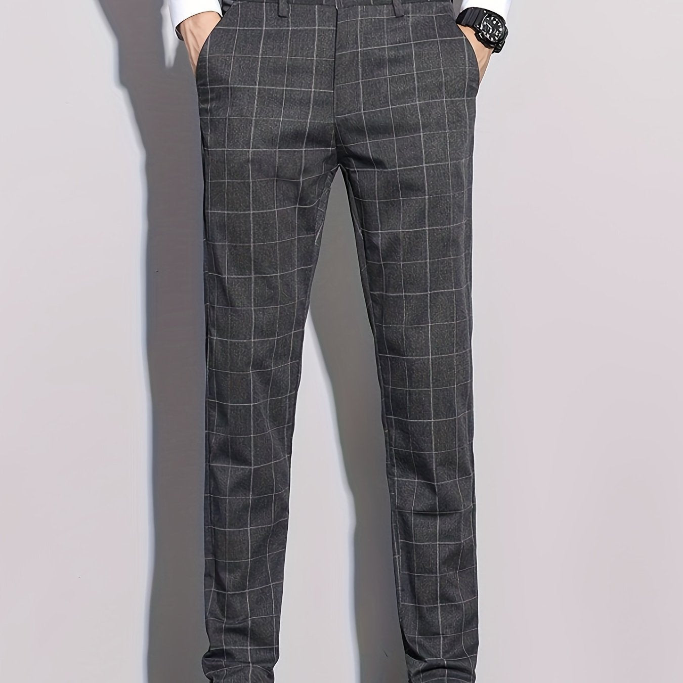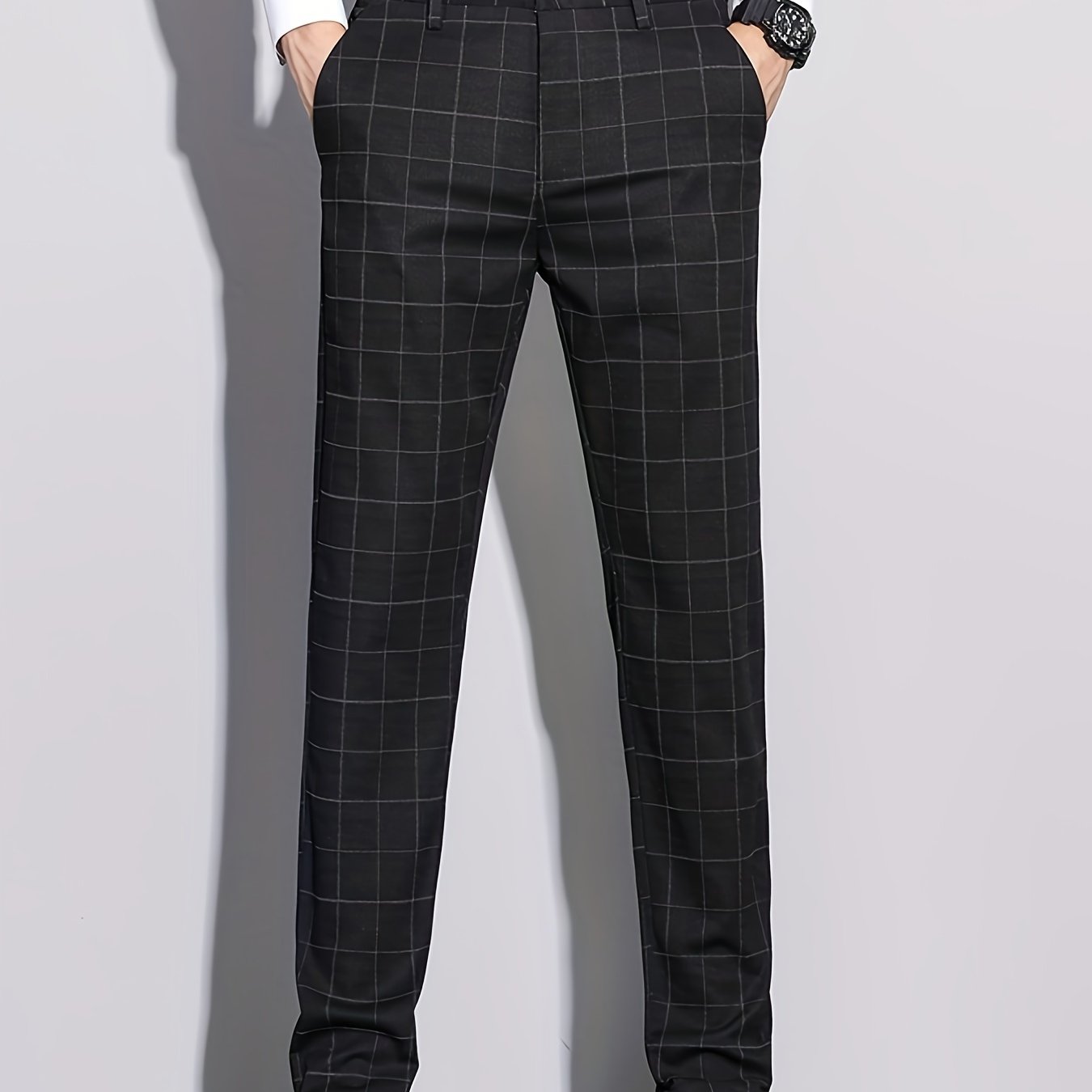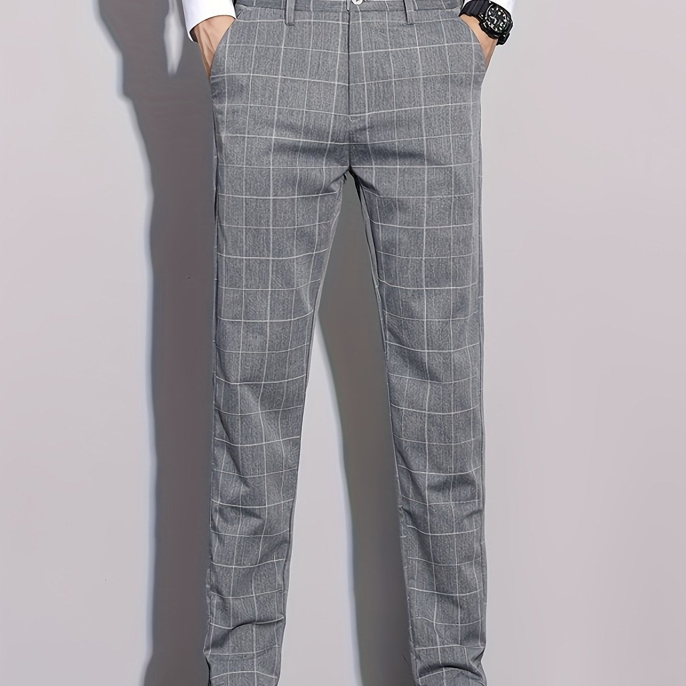 Men's Retro Plaid Slacks, Semi-formal Dress Pants For Business Banquet