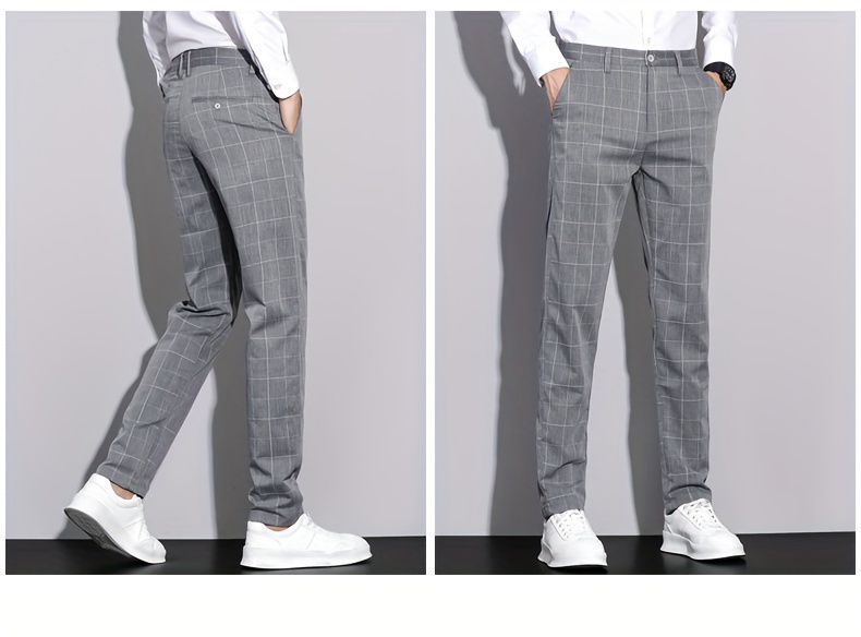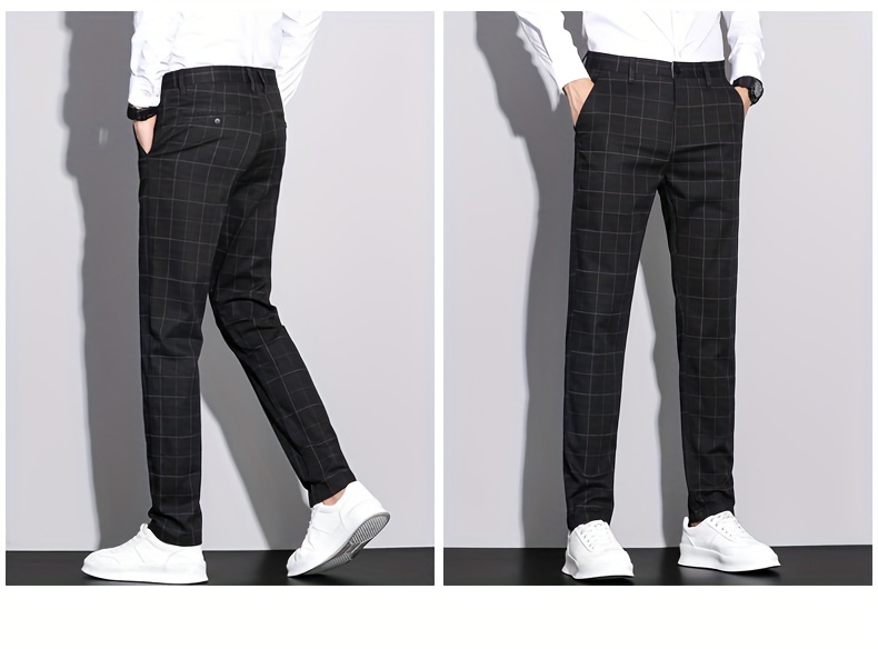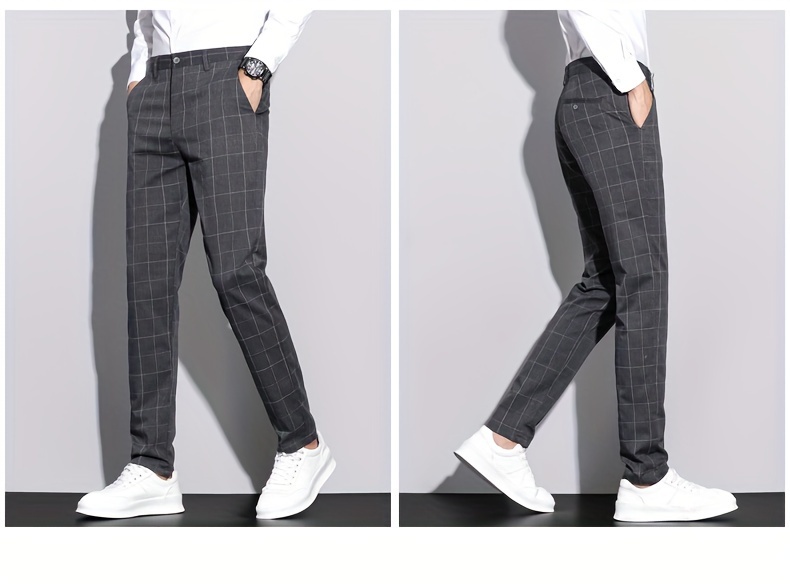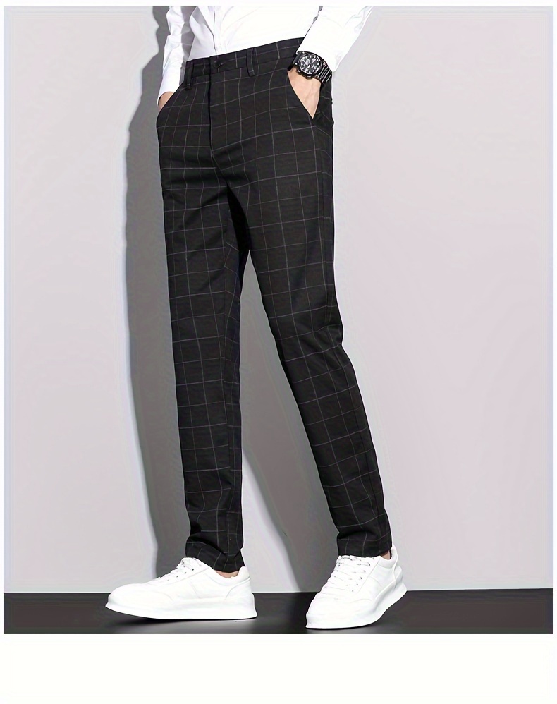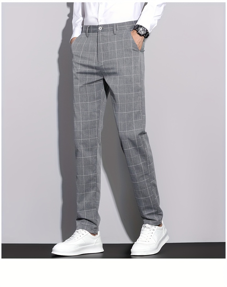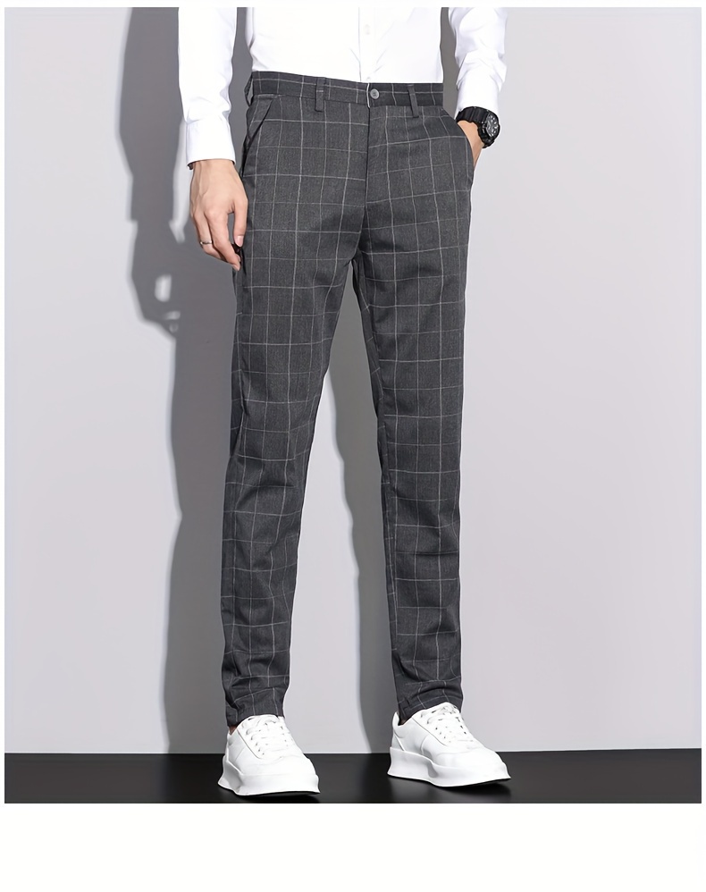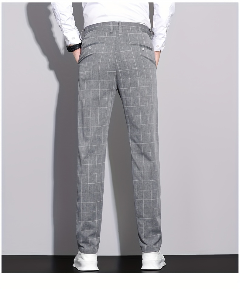 Men's Retro Plaid Slacks, Semi-formal Dress Pants For Business Banquet