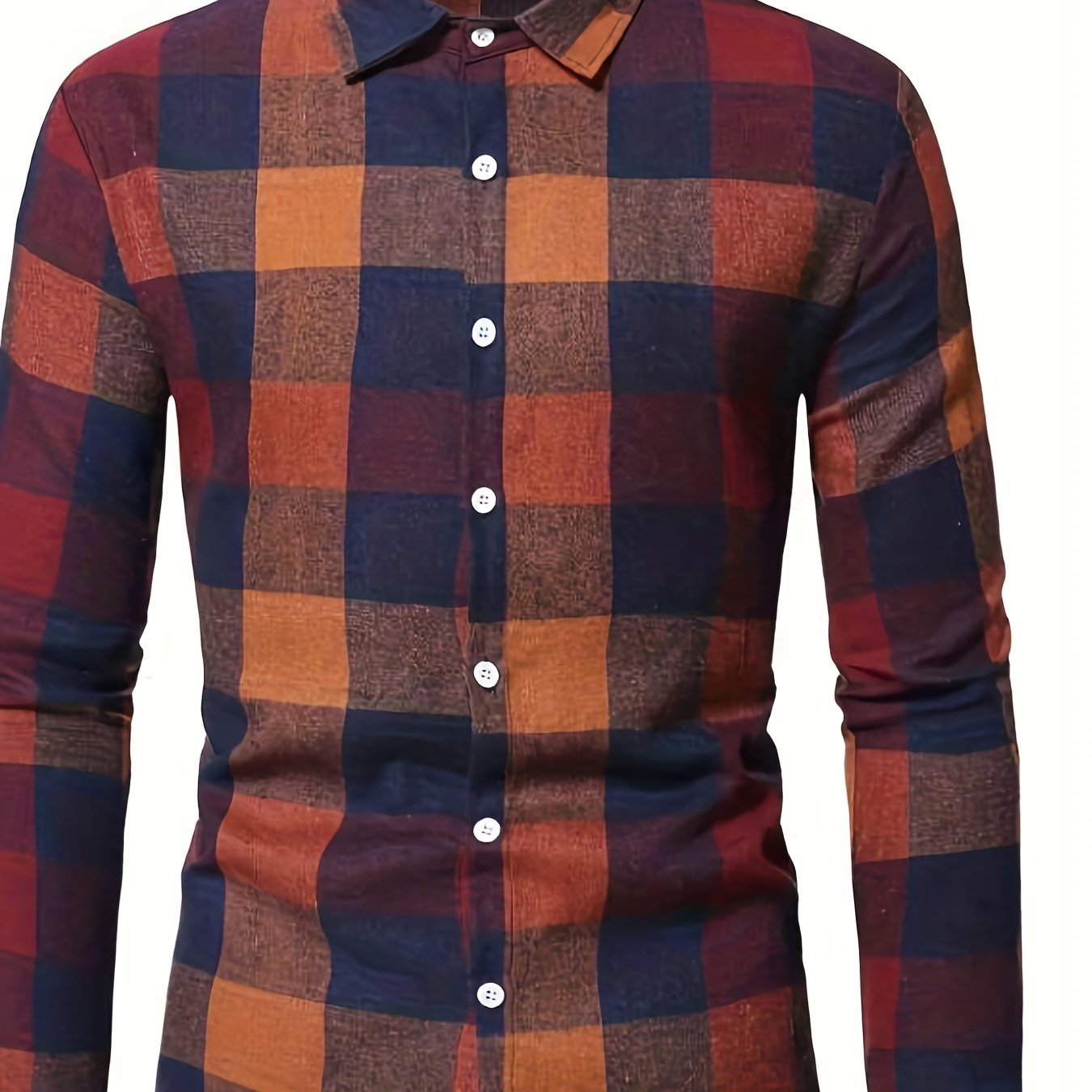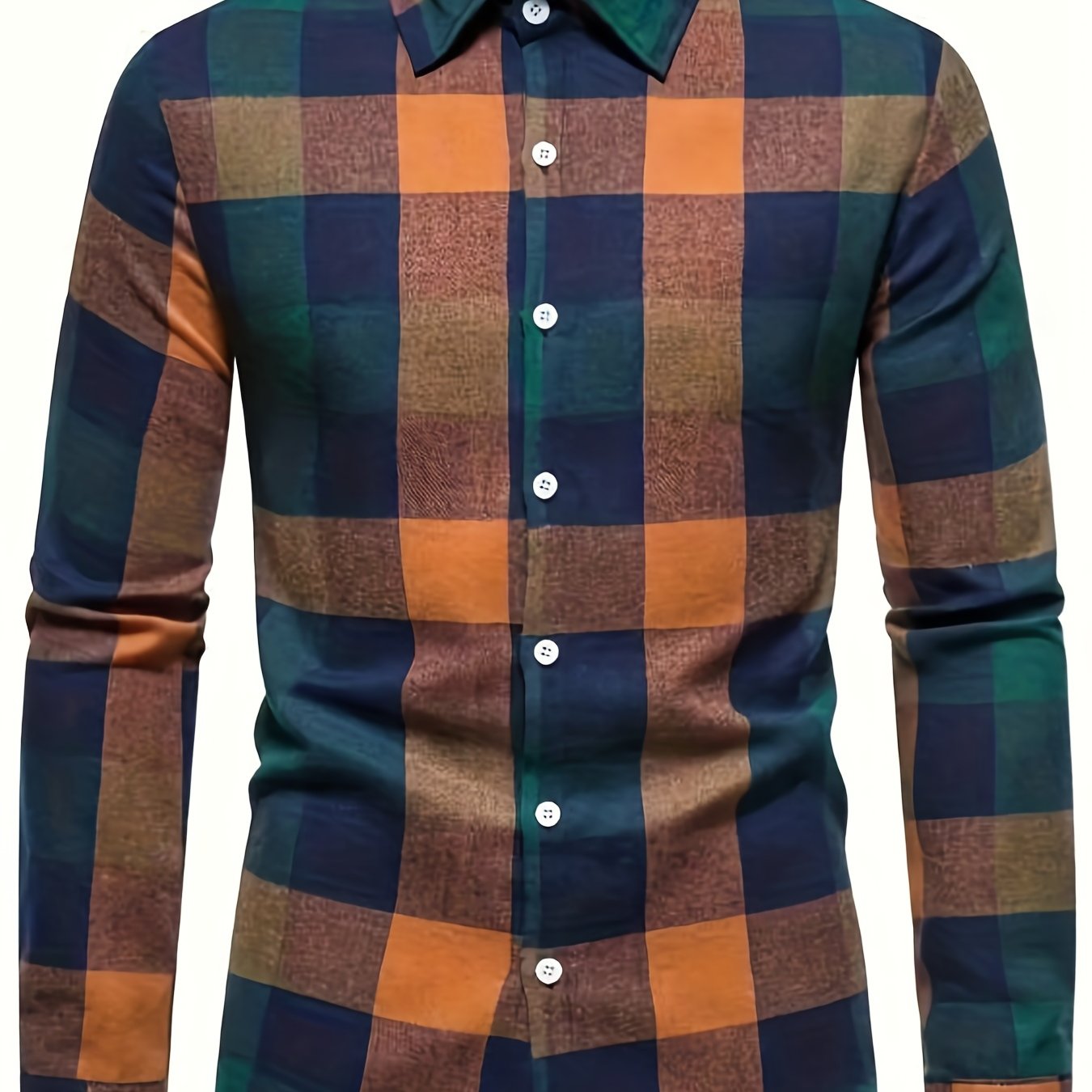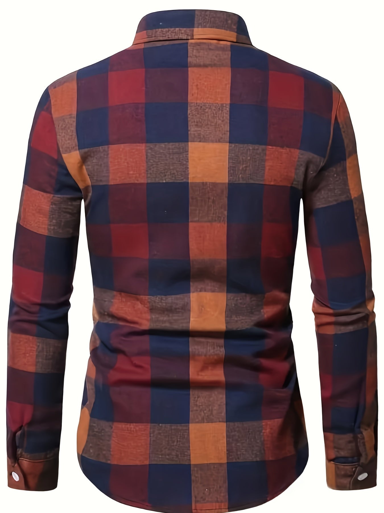 Plaid Pattern Men's Casual Retro Long Sleeve Button Up Shirt For Spring Fall Outdoor